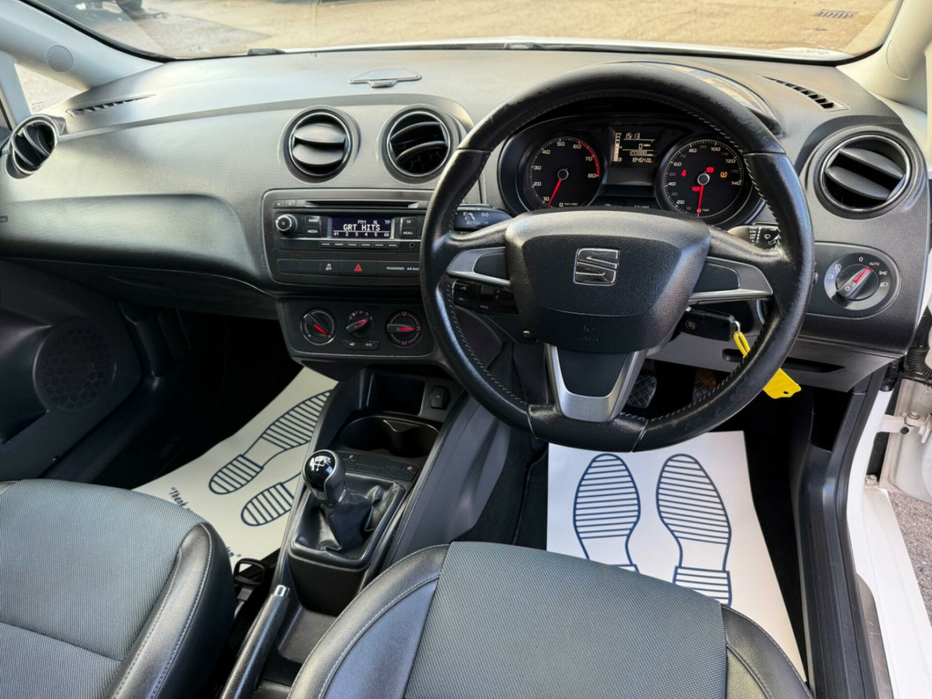 This SEAT Ibiza TSI I TECH from 2014 offers a blend of style and practicality, making it a smart choice for everyday driving. Powered by an efficient 1.2 litre petrol engine, this I TECH trim model comes equipped with essential features designed for your comfort and convenience. Enjoy the ease of Air Conditioning to keep the cabin pleasant in all weather, and stay connected on the go with Bluetooth Audio Streaming and Bluetooth Phone Connection, allowing you to play your favourite music and take calls handsfree.The performance of this Ibiza is also noteworthy, with a brisk 0 to 62 miles per hour acceleration time of just 9.7 seconds. This indicates a responsive driving experience that sets it apart from many other vehicles in its class. The combination of its economical engine, useful technology, and sprightly acceleration makes this SEAT Ibiza a well rounded and appealing option. .7-litre glovebox with light, 12 volt power supply in centre console, 16in alloy wheels - cartago - titanium finish, aux-in port, active front head restraints, air conditioning, airbags - driver, airbags - front passenger, airbags - head and thorax, alarm - volumetric, anti-lock braking system - abs, anti-theft roof antenna, automatic warning lights, bluetooth audio streaming, bluetooth phone connection, body-coloured door handles, body-coloured door mirrors, bumpers - body coloured with integrated mouldings, cornering function, cupholders - x3, daytime running lights, deadlocks, dust and pollen filter, eba - electronic brake assist, eco trainer, electric windows - front with one-touch and anti-squeeze, electrically adjustable and heated door mirrors, electro-mechanical power steering - speed-sensitive, electronic differential lock system - xds, electronic stability control - esc, emergency tyre repair kit, exterior temperature indicator, fm-am radio, front fog lights with cornering function, front passenger airbag de-activation, front side airbags, gearshift indicator, gloss black b and c-pillars, head restraints - height adjustable front, head restraints - simil leather, headlights - electric adjustment, height and reach adjustable steering wheel, height-adjustable drivers seat, hill hold control, i-tech logo embossed into the backrest of each seat, isofix points with top tether on rear seats, illuminated boot, illuminated glovebox, leather gear knob, leather steering wheel, lights left on warning buzzer, locking wheel bolts, low fuel warning light, mp3 compatible cd player, pre-installation for seat portable system, rear wiper, remote central locking, roof light with map-reading lights, sd card slot, seat call, seat logo tailgate release, seat portable system, satellite navigation system, seatbelt reminder - front, seats - pockets on front backrest, seats - split folding rear, six speakers, steering wheel - audio controls, storage - front door, sunvisors with passengers vanity mirror, tinted windows, trip computer - advanced, two height-adjustable rear headrests, tyre pressure monitoring system