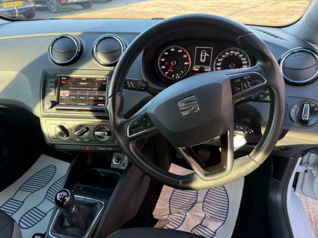 STUNNING CONDITION THROUGHOUT. COMES WITH SERVICE HISTORY. 2 KEYS AND 12 MONTHS MOT. NEED FINANCE? PLEASE GIVE US A CALL OR VISIT OUR WEBSITE DIRECT TO QUOTE OR APPLY ONLINE. HIGHLY COMPETITIVE RATES . VIEWING ESSENTIAL.This SEAT Ibiza TSI SE from 2016 is a great find, having had only two owners since new. This particular model boasts a 1.2 litre petrol engine and meets Euro 6 emissions standards. For your convenience, it comes equipped with Bluetooth audio streaming and phone connectivity, allowing you to enjoy your music and take calls hands free. It also features air conditioning to keep you comfortable on every journey.You'll be pleased to know that this Ibiza is in a low insurance group, which can help keep your running costs down. It achieves an impressive fuel economy of 58 miles per gallon, making it an economical choice for daily driving. Furthermore, its acceleration from 0 to 62 miles per hour in 10.7 seconds demonstrates a capable performance that stands out compared to other vehicles in its class., volt power supply in centre console, 15in alloy wheels - ibia, aux-in port, active front head restraints, air conditioning, airbags - driver, airbags - front passenger, alarm - perimeter and interior monitoring with tow away protection, anti-lock braking system - abs, anti-theft roof antenna, automatic warning lights, bluetooth audio streaming, bluetooth phone connection, body-coloured bumpers, body-coloured door handles, body-coloured door mirrors, cupholders - x3, deadlocks, digital audio broadcasting - dab - digital radio, digital clock, door pockets - front, driver and passengers sunvisors with covered mirrors, dust and pollen filter, eba - emergency brake assist, electric windows - front with one-touch and anti-squeeze, electrically adjustable and heated door mirrors, electro-mechanical power steering - speed-sensitive, electronic engine immobiliser, electronic stability control - esc, emergency tyre repair kit, exterior temperature indicator, fm-am radio, front courtesy light, front fog lights with cornering function, front passenger airbag de-activation, front side airbags, gearshift indicator, glovebox, head restraints - height adjustable front, head restraints - height adjustable rear x3, headlights - electric adjustment, headlights - halogen, height adjustable passenger seat with easy entry, height and reach adjustable steering wheel, height-adjustable drivers seat, isofix points with top tether on rear seats, illuminated boot, illuminated glovebox, instrument lighting with brightness control, led daytime running lights, led taillights, leather gear knob, leather steering wheel, lights left on warning buzzer, locking wheel bolts, low fuel warning light, media system colour, media system touch, multi-collision brake, pre-installation for seat portable system, reading light - front map, rear wiper, remote central locking, remote key - folding x2 with remote window functionality, sd card slot, seat logo tailgate release, seatbelt reminder - front, seats - pockets on front backrest, six speakers, split folding rear seats - 60-40, steering wheel - audio controls, tinted windows, touch screen - colour 5in, trip computer, tyre pressure monitoring system, usb port