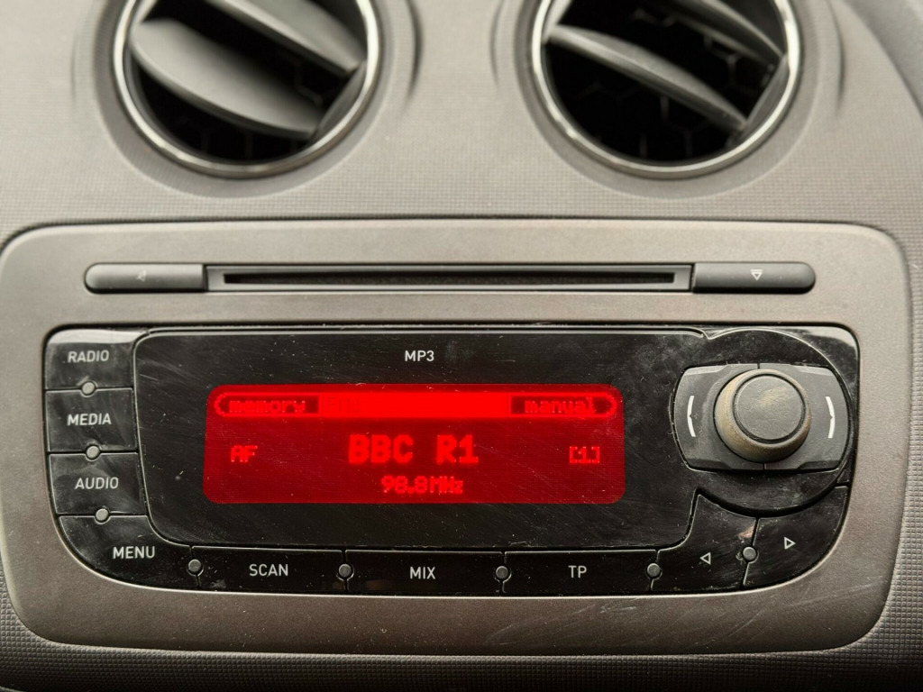 FULL SERVICE HISTORY - HPI CLEAR - 11 MONTHS MOT - FINANCE AVAILABLE - JUST BEEN SERVICED - ALL PART EXCHANGES ARE WELCOME - OVER 200 CARS IN STOCK - CALL FOR MORE INFORMATION Discover this 2013 SEAT Ibiza SE, a car with remarkably low mileage for its age. This particular Ibiza is powered by a reliable 1.4 litre petrol engine and comes with the assurance of a clear vehicle history check. Inside, you'll find comfortable air conditioning, ensuring a pleasant driving experience in all conditions.This SEAT Ibiza stands out with its low insurance group, making it an economical choice for many drivers. The combination of its modest mileage, clear history, and desirable features like air conditioning present a compelling package, suggesting it has been well cared for and offers excellent value compared to other vehicles of its kind. .7-litre glovebox with light, 12 volt power supply in centre console, 15in alloy wheels - marsala, aux-in port, active front head restraints, air conditioning, airbags - driver, airbags - front passenger, airbags - head and thorax, alarm - volumetric with tow away protection (tilt sensor), anti-lock braking system - abs, anti-theft roof antenna, automatic warning lights, black door handles, black door mirrors, body-coloured door handles, bumpers - body coloured with integrated mouldings, child locks on rear doors, cornering function, cupholders - x3, deadlocks, dust and pollen filter, electric windows - front with one-touch and anti-squeeze, electrically adjustable and heated door mirrors, electro-mechanical power steering - speed-sensitive, emergency tyre repair kit, four speakers, front fog lights with cornering function, front passenger airbag de-activation, gearshift indicator, gloss black b and c-pillars, head restraints - height adjustable front, headlights - electric adjustment, height and reach adjustable steering wheel, height-adjustable drivers seat, isofix points with top tether on rear seats, illuminated boot, illuminated glovebox, leather gear knob, leather steering wheel, lights left on warning buzzer, locking wheel bolts, low fuel warning light, mp3 compatible cd player, rear wiper, remote central locking, roof light with map-reading lights, seat logo tailgate release, seatbelt reminder - front, seats - pockets on front backrest, seats - split folding rear, steering wheel - audio controls, storage - front door, sunvisors with passengers vanity mirror, tinted windows, trip computer, two height-adjustable rear headrests