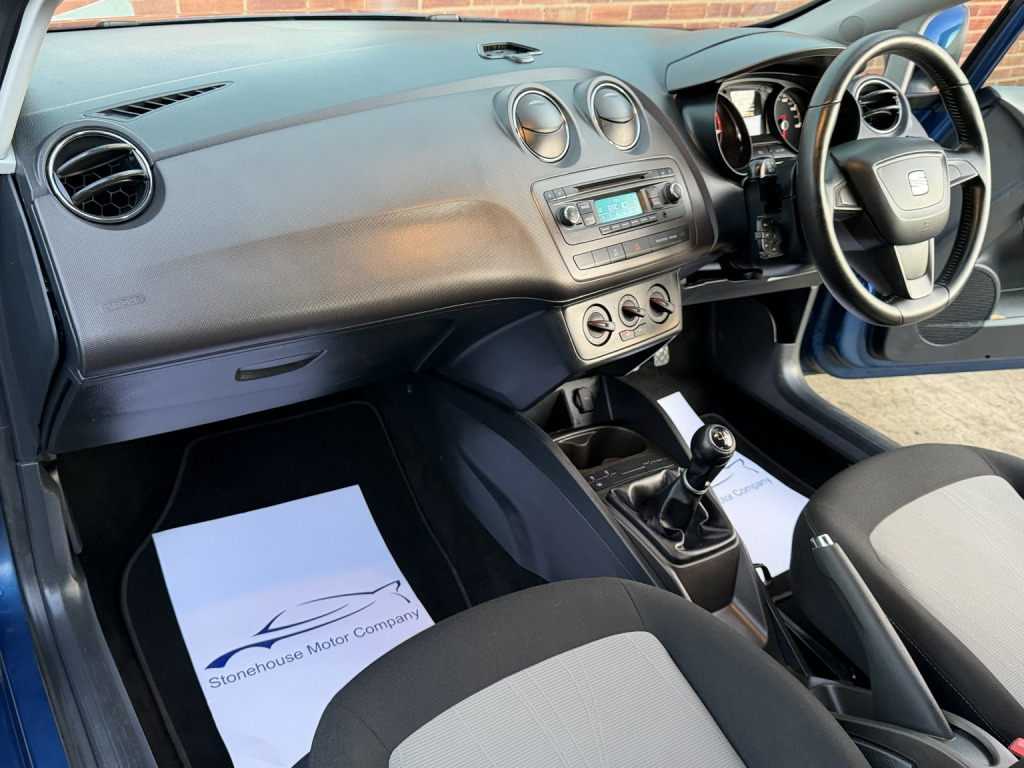 Stonehouse Motor Company are pleased to offer for sale this lovely Seat Ibiza finished in the appealing colour combination of Passion blue with grey cloth upholstery. The economical 1.4 petrol engine produces an impressive 84bhp, making this an affordable first-time car with the ability to deliver over 50 MPG. The well-presented interior of this Seat boasts some useful features to keep you comfortable on the road, including air conditioning, electric windows, electric mirrors, a trip computer, radio and CD player with Aux in. Externally, the well-presented bodywork is complemented by the 15 alloy wheels. Since being registered in 2013, this Ibiza has covered only 84,035 miles. During this time, the previous owners have maintained this vehicle well, whilst keeping part of the service history log up to date. The most recent service being carried out at 83,500 miles in our very own on-site workshop, this included the replacement of the all-important timing belt and water pump. As with all of our retail vehicles, a long MOT is present. Viewing by appointment only, please call ahead to avoid disappointment. Part exchange welcome. Payments via bank transfer, pre-arranged finance or cash-monies only,