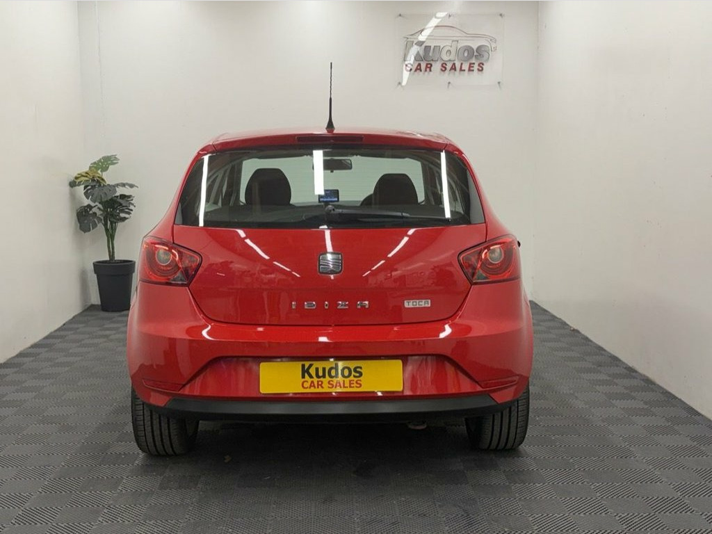 2013 SEAT IBIZA TOCA 1.4 5dr - GREAT CAR FINISHED IN HIGH GLOSS EMOCION RED. NO DEPOSIT FINANCE AVAILABLE FROM ONLY £85 per mth, 6 MONTH WARRANTY INCLUDED. EACH VEHICLE COMES WITH A FREE HPI CLEAR REPORT AND 1 YEAR AA BREAKDOWN COVER. MOT UNTIL 16/10/2026. 4 NEW TYRES. ONLY 76000 MILES. FULL SERVICE HISTORY AND JUST HAD A SERVICE. **GREAT SPEC** TOUCH SCREEN RADIO, SAT NAV, AIRCON, BLUETOOTH, CD PLAYER, ELEC WINDOWS, ELEC MIRRORS, UNMARKED ALLOY WHEELS, TRACTION CONTROL, . FINANCE PACKAGES - With a number of lenders on board i am able to offer Finance to suit individual circumstances, including Sub Prime. All CARS ARE HPI CHECKED AND CLEAR. WARRANTY - At KUDOS CAR SALES every vehicle comes with a FREE 6MTH warranty through Warranty Wise. Any repairs under warranty can be carried out at your local garage - Extended warranty available on request at extra cost. INCLUDES ALL DOCS, AND 2 KEYS. ***ALL PART EXCHANGE'S CONSIDERED*** 10.7-litre Glovebox with Light, 12 Volt Power Supply in Centre Console, 16in Alloy Wheels - Stratos, Active Front Head Restraints, Air Conditioning, Airbags - Driver, Airbags - Front Passenger, Airbags - Head and Thorax, Alarm - Volumetric with Tow Away Protect, Anti-Lock Braking System - ABS, Anti-Theft Roof Antenna, Automatic Warning Lights, AUX-In Port, Bluetooth Phone Connection, Body-Coloured Door Handles, Body-Coloured Door Mirrors, Bumpers - Body Coloured with Integrated , Child Locks on Rear Doors, Cornering Function, Cupholders - x3, Deadlocks, Dust and Pollen Filter, EBA - Electronic Brake Assist, Electric Windows - Front with One-Touch , Electrically Adjustable and Heated Door , E