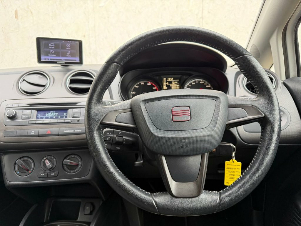 ONLY 2 OWNERS FROM NEW, THIS WELL PRESENTED SEAT IBIZA FINISHED IN WHITE. COMES WITH SERVICE HISTORY, 2 KEYS AND FEATURES INCLUDING, SATELLITE NAVIGATION, BLUETOOTH HANDS-FREE, RADIO/CD PLAYER WITH AUX POINT, LEATHER STEERING WHEEL, COLUMN STALK CONTROLS, ELECTRIC WINDOWS, ELECTRIC MIRRORS, REMOTE CENTRAL LOCKING, DRIVERS HEIGHT ADJUSTOR AND 16" ALLOY WHEELS. 10.7-litre Glovebox with Light, 12 Volt Power Supply in Centre Console, 16in Alloy Wheels - Stratos, AUX-In Port, Active Front Head Restraints, Air Conditioning, Airbags - Driver, Airbags - Front Passenger, Airbags - Head and Thorax, Alarm - Volumetric with Tow Away Protect, Anti-Lock Braking System - ABS, Anti-Theft Roof Antenna, Automatic Warning Lights, Bluetooth Phone Connection, Body-Coloured Door Handles, Body-Coloured Door Mirrors, Bumpers - Body Coloured with Integrated , Child Locks on Rear Doors, Cornering Function, Cupholders - x3, Deadlocks, Dust and Pollen Filter, EBA - Electronic Brake Assist, Electric Windows - Front with One-Touch , Electrically Adjustable and Heated Door , E