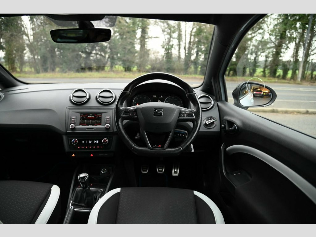 Prestige Car Supermarket in York presents this 2016 SEAT Ibiza 1.8 TSI Cupra Sport Coupe finished in Dynamic Grey and powered by a punchy 1.8 TSI petrol engine producing 192 ps, paired with a slick 6-speed manual gearbox. As the flagship Cupra model, this Ibiza delivers an engaging hot hatch driving experience supported by Cupra sports suspension, XDS electronic differential lock and SEAT Drive Profile for adjustable driving dynamics. The exterior is enhanced by exclusive Cupra front and rear bumpers, gloss black detailing, 17in Barcino alloy wheels, dark tinted windows and a race-honed central exhaust. Inside, the cabin features Cupra front sport seats, a flat-bottomed leather Cupra steering wheel, drilled aluminium sports pedals and leather gear knob, creating a purposeful and driver-focused environment. Standard equipment includes bi-xenon headlights with LED daytime running lights, LED rear lights, climate control, cruise control, DAB digital radio, Media System Colour touchscreen, Bluetooth audio streaming and handsfree, rain-sensing wipers, auto headlights and electrically folding door mirrors. Practicality is covered with split-folding rear seats, illuminated boot, multiple cupholders and a generously sized glovebox. Safety features include ESC with emergency brake assist, multi-collision braking system, hill hold control, tyre pressure monitoring, ISOFIX rear seat points and a full airbag suite, making this a well-rounded performance coupe with everyday usability. Dynamic Grey, 10.7-litre Glovebox with Light, 12 Volt Power Supply in Centre Console, 17in Alloy Wheels - Barcino, Active Front Head Restraints, Alarm - Perimeter and Interior Monitorin, Anti-Lock Braking System - ABS, Anti-Theft Roof Antenna, Auto-Headlights, Automatic Warning Lights, Bi-Xenon Headlights, Bluetooth Audio Streaming with Handsfree, Body-Coloured Door Handles, Bumpers - Body Coloured with Integrated , Bumpers - Exclusive Cupra Front and Rear, CUPRA Front Sport Seats, Centre Height Adjustable Rear Headrest, Climate Control, Coming Home - Leaving Home Headlight Fun, Convenience Pack, Cruise Control, Cupholders - x3, Dark Tinted Windows, Digital Audio Broadcasting - DAB - Digit,