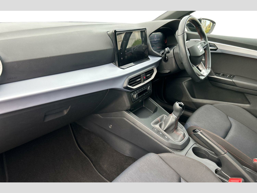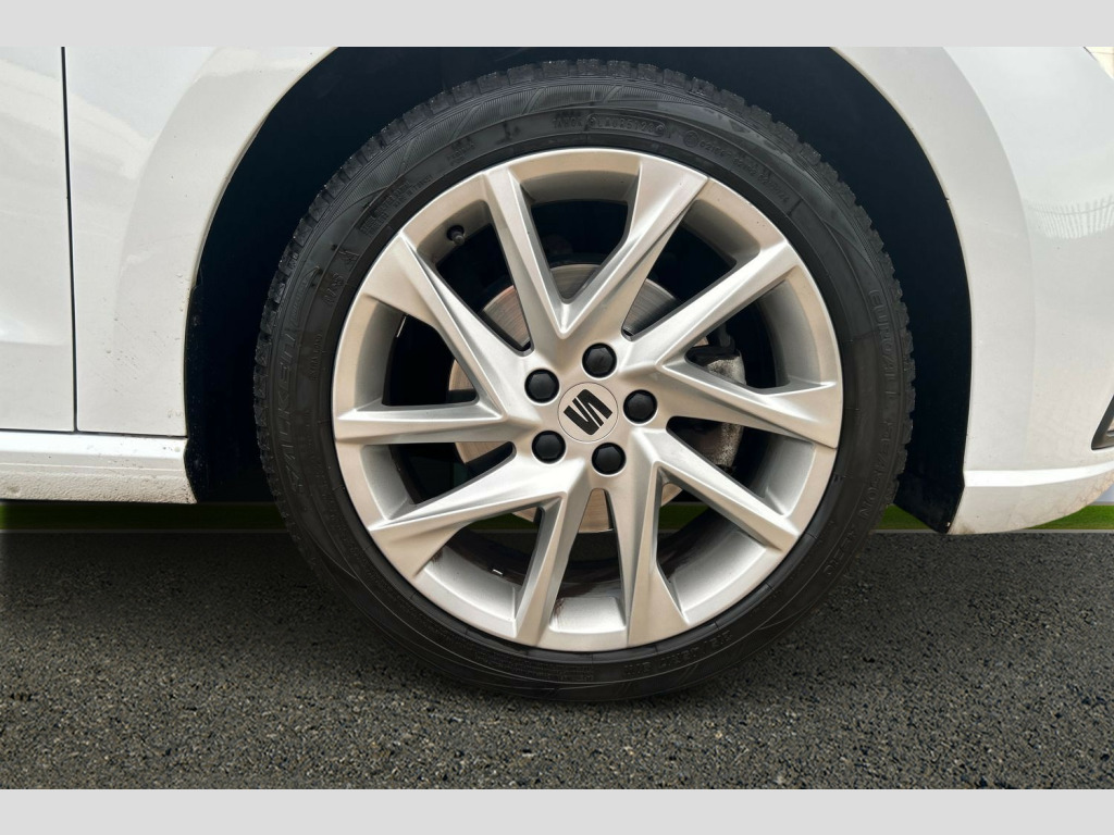 'Lights On' Reminder warning buzzer, 8" Digital cockpit, 9.2" touchscreen navigation system with type C USB socket, Voice control and DAB/AM/FM radio, Auto start and stop system, Bluetooth audio streaming with handsfree system, Digital clock, E-call, Full link smartphone integration with mirror link, wireless apple carplay, Google android auto + USB Type C cable for apple and android devices, Lane assist, Low fuel warning light, Outside temperature gauge, Power Steering, Seat connect with safety, service, remote and online, SEAT drive profiles and ECO function, SEAT logo boot release, Speed limiter, Trip computer, Sports suspension, Auxiliary input socket, Radio/MP3 player, SD card slot, Steering wheel mounted controls, Anti theft roof antenna, Auto dimming rear view mirror, Automatic rain sensing wipers, Black door mirrors, Body colour bumpers, Body colour door handles, Brilliant black window surrounds, Dark tinted rear windows, Electric adjustable/heated/folding door mirrors, Electric front windows, Electric headlight adjustment, Electric rear windows, Front/rear fog lights, FULL LED automatic headlights with dynamic headlight range control, coming and leaving home, LED daytime running lights, LED tail lights, Rear roof spoiler with FR twin exhausts, Rear side wing doors, Rear wiper, Third brake light, 3 seat bench in 2nd row, 60/40 split folding rear seat, Ambient interior lighting, Chrome detailing and black headlining, Cloth upholstery, Dual zone climate control with combination filter, Front courtesy lights, Front cupholders x 2, Front reading lights, Gear shift indicator, Glovebox, Height adjustable front and rear headrests (five), Height adjustable front seats, Height/reach adjust steering wheel, Illuminated air vent surrounds, Illuminated boot, Instrument lighting with brightness control, Isofix, Leather multifunction flat bottomed sports steering wheel, Passenger sunvisor, Single front passenger seat, Sports seats, Sunvisors with mirror and driver side card holder, 3 point seatbelts on all 3 rear seats, ABS, Active front headrests, Child locks on rear doors, Electronic stability control, Energy recovery system, Front assist forward collision warning and autonomous emergency braking, Front driver and passenger side airbags with curtain airbag and front passenger airbag deactivation, Hill hold control, Multi-Collision braking, Seat belt reminder for front and rear seats, Tiredness recognition system, Tyre pressure monitoring system, Electronic engine immobiliser, Locking wheel bolts, Perimeter alarm and interior monitoring with backup horn and tow away protection, Remote central locking + deadlocks, 17" Alloy wheels in Brilliant silver