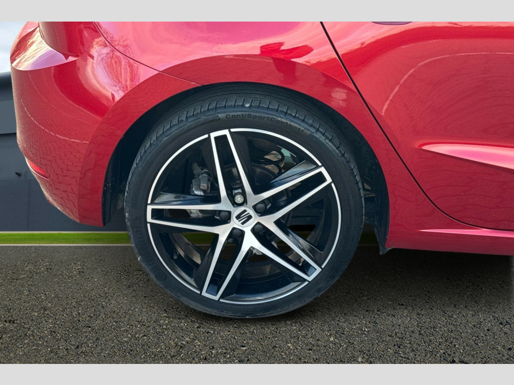 'Lights On' Reminder warning buzzer, 8.25" touchscreen display with type C USB socket and DAB/AM/FM radio, Analogue cockpit with physical dials, Auto start and stop system, Bluetooth audio streaming with handsfree system, E-call, Full link smartphone integration with mirror link, wireless apple carplay, Google android auto + USB Type C cable for apple and android devices, Lane assist, Low fuel warning light, Outside temperature gauge, Power Steering, Rear parking sensor, Seat connect with safety, service and remote, SEAT drive profiles and ECO function, SEAT logo boot release, Speed limiter, Trip computer, Wireless phone charger, Sports suspension, Auxiliary input socket, Radio/MP3 player, SD card slot, Steering wheel mounted controls, Anti theft roof antenna, Black door mirrors, Body colour bumpers, Body colour door handles, Brilliant black window surrounds, Dark tinted rear windows, Dimming interior rear view mirror, Electric front windows, Electric headlight adjustment, Electric rear windows, Electrically adjustable and heated door mirrors, Front/rear fog lights, FULL LED automatic headlights with dynamic headlight range control, coming and leaving home, LED daytime running lights, LED tail lights, Rear roof spoiler with FR twin exhausts, Rear side wing doors, Rear wiper, Third brake light, 3 seat bench in 2nd row, 60/40 split folding rear seat, Ambient interior lighting, Chrome detailing and black headlining, Cloth upholstery, Dual zone climate control with combination filter, Front courtesy lights, Front cupholders x 2, Front reading lights, Gear shift indicator, Glovebox, Height adjustable front and rear headrests (five), Height adjustable front seats, Height/reach adjust steering wheel, Illuminated air vent surrounds, Illuminated boot, Instrument lighting with brightness control, Isofix, Leather multifunction flat bottomed sports steering wheel, Passenger sunvisor, Single front passenger seat, Sports seats, Sunvisors with mirror and driver side card holder, 3 point seatbelts on all 3 rear seats, ABS, Active front headrests, Child locks on rear doors, Electronic stability control, Energy recovery system, Front assist forward collision warning and autonomous emergency braking, Front driver and passenger side airbags with curtain airbag and front passenger airbag deactivation, Hill hold control, Multi-Collision braking, Seat belt reminder for front and rear seats, Tiredness recognition system, Tyre pressure monitoring system, Electronic engine immobiliser, KESSY Keyless entry and go, Locking wheel bolts, Perimeter alarm and interior monitoring with backup horn and tow away protection, Remote central locking + deadlocks, 18" Performance machined alloy wheels in black and grey