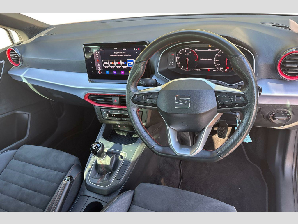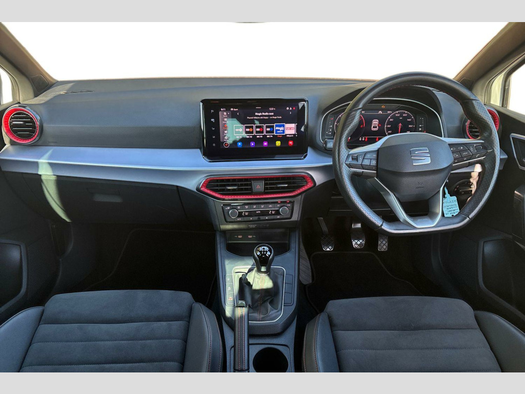 'Lights On' Reminder warning buzzer, 10" Digital cockpit, 9.2" touchscreen navigation system with type C USB socket, Voice control and DAB/AM/FM radio, Auto start and stop system, Bluetooth audio streaming with handsfree system, Digital clock, E-call, Full link smartphone integration with mirror link, wireless apple carplay, Google android auto + USB Type C cable for apple and android devices, Lane assist, Low fuel warning light, Outside temperature gauge, Power Steering, Seat connect with safety, service, remote and online, SEAT drive profiles and ECO function, SEAT logo boot release, Speed limiter, Trip computer, Sports suspension, Auxiliary input socket, Radio/MP3 player, SD card slot, Steering wheel mounted controls, Anti theft roof antenna, Auto dimming rear view mirror, Automatic rain sensing wipers, Black door mirrors, Body colour bumpers, Body colour door handles, Brilliant black window surrounds, Dark tinted rear windows, Electric adjustable/heated/folding door mirrors, Electric front windows, Electric headlight adjustment, Electric rear windows, Front/rear fog lights, FULL LED automatic headlights with dynamic headlight range control, coming and leaving home, LED daytime running lights, LED tail lights, Rear roof spoiler with FR twin exhausts, Rear side wing doors, Rear wiper, Third brake light, 3 seat bench in 2nd row, 60/40 split folding rear seat, Ambient interior lighting, Chrome detailing and black headlining, Comfort seats, Dual zone climate control with combination filter, Front courtesy lights, Front cupholders x 2, Front reading lights, Gear shift indicator, Glovebox, Height adjustable front and rear headrests (five), Height adjustable front seats, Height/reach adjust steering wheel, Illuminated air vent surrounds, Illuminated boot, Instrument lighting with brightness control, Isofix, Leather multifunction flat bottomed sports steering wheel, Microsuede cloth upholstery, Passenger sunvisor, Single front passenger seat, Storage pockets on back of front seats, Sunvisors with mirror and driver side card holder, 3 point seatbelts on all 3 rear seats, ABS, Active front headrests, Child locks on rear doors, Electronic stability control, Energy recovery system, Front assist forward collision warning and autonomous emergency braking, Front driver and passenger side airbags with curtain airbag and front passenger airbag deactivation, Hill hold control, Multi-Collision braking, Seat belt reminder for front and rear seats, Tiredness recognition system, Tyre pressure monitoring system, Electronic engine immobiliser, Locking wheel bolts, Perimeter alarm and interior monitoring with backup horn and tow away protection, Remote central locking + deadlocks, 18" Performance machined alloy wheels in black and grey