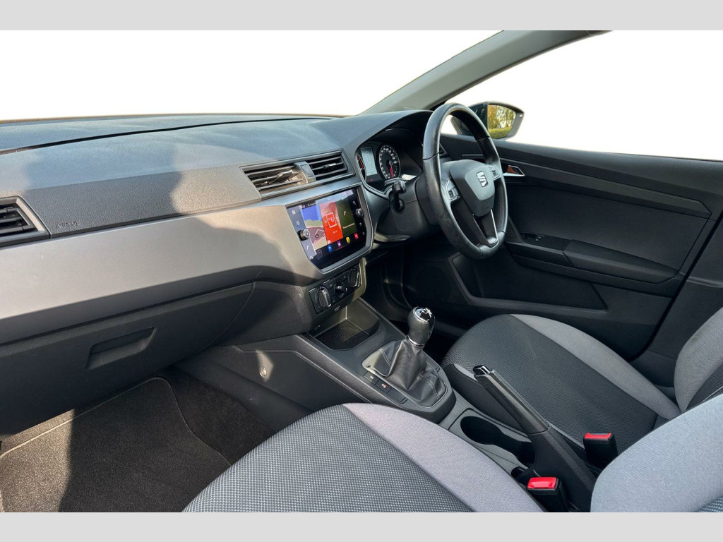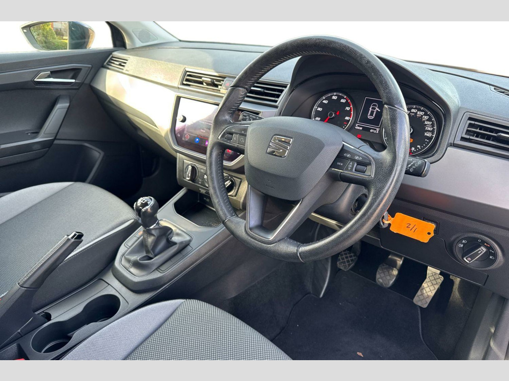 'Lights On' Reminder warning buzzer, Bluetooth audio streaming with handsfree system, Digital clock, Full Link Smartphone Integration with Mirror Link, Apple Car Play, Google Android Auto, Low fuel warning light, Navigation system with 8" touch screen + proximity sensor, voice control and USB type C sockets, Outside temperature gauge, Power Steering, Seat connect with safety, service, remote and online, SEAT logo boot release, Speed limiter, Trip computer, Comfort suspension, 6 speakers, Auxiliary input socket, CD player, Digital Audio Broadcast (DAB) Tuner, Radio/MP3 player, SD card slot, Steering wheel mounted controls, USB (type C) cable for Apple and Android compatibility, Anti theft roof antenna, Automatic headlights, Body colour bumpers, Body colour door handles, Body colour door mirrors, Electric front windows, Electric headlight adjustment, Electrically adjustable door mirrors, Front and rear fog lights with cornering function at front, Halogen tailights, Manual dimming interior rear view mirror, Twin halogen headlights with separate daytime running lights, 60/40 split folding rear seat, Air conditioning, Chrome interior detailing and grey headlining, Cloth upholstery, Comfort seats, Driver's sunvisor with ticket holder/vanity mirror, Dust/pollen filter, Front courtesy lights, Front cupholders x 2, Front reading lights, Gear shift indicator, Glovebox, Height adjustable driver's seat, Height adjustable passenger seat, Height/reach adjust steering wheel, Illuminated boot, Instrument lighting with brightness control, Leather multifunction steering wheel, gear knob and handbrake, Passenger sunvisor, Rear top tether child seat ISOFIX attachment, Two height adjustable front and rear headrests (three in rear), 3 point seatbelts on all 3 rear seats, ABS, Active front headrests, Child locks on rear doors, Curtain airbags, Driver/Front Passenger airbags, ESP+EBA, Front assist (AEB), Front passenger airbag deactivation, Front side airbags, Hill hold control, Multi-Collision braking, Seat belt reminder for front and rear seats, Tyre pressure monitoring system, Anti theft wheel bolts, Electronic engine immobiliser, Remote central locking + deadlocks, Black dash trim, 16" Design alloy wheels