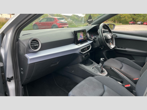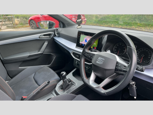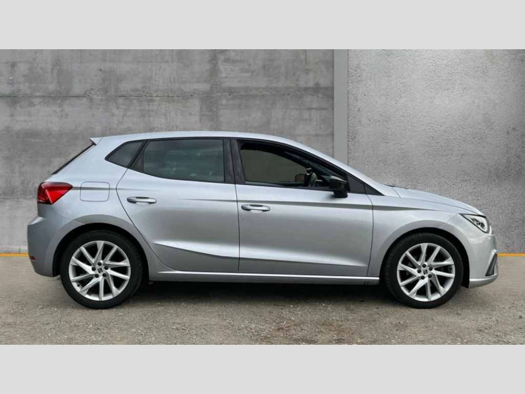 Seat Ibiza 1.0 TSI 110 FR 5dr 'Lights On' Reminder warning buzzer, 8" Digital cockpit, 9.2" touchscreen navigation system with type C USB socket, Voice control and DAB/AM/FM radio, Auto start and stop system, Bluetooth audio streaming with handsfree system, Digital clock, E-call, Full link smartphone integration with mirror link, wireless apple carplay, Google android auto + USB Type C cable for apple and android devices, Lane assist, Low fuel warning light, Outside temperature gauge, Power Steering, Seat connect with safety, service, remote and online, SEAT drive profiles and ECO function, SEAT logo boot release, Speed limiter, Trip computer, Sports suspension, Auxiliary input socket, Radio/MP3 player, SD card slot, Steering wheel mounted controls, Anti theft roof antenna, Auto dimming rear view mirror, Automatic rain sensing wipers, Black door mirrors, Body colour bumpers, Body colour door handles, Brilliant black window surrounds, Dark tinted rear windows, Electric adjustable/heated/folding door mirrors, Electric front windows, Electric headlight adjustment, Electric rear windows, Front/rear fog lights, FULL LED automatic headlights with dynamic headlight range control, coming and leaving home, LED daytime running lights, LED tail lights, Rear roof spoiler with FR twin exhausts, Rear side wing doors, Rear wiper, Third brake light, 3 seat bench in 2nd row, 60/40 split folding rear seat, Ambient interior lighting, Chrome detailing and black headlining, Cloth upholstery, Dual zone climate control with combination filter, Front courtesy lights, Front cupholders x 2, Front reading lights, Gear shift indicator, Glovebox, Height adjustable front and rear headrests (five), Height adjustable front seats, Height/reach adjust steering wheel, Illuminated air vent surrounds, Illuminated boot, Instrument lighting with brightness control, Isofix, Leather multifunction flat bottomed sports steering wheel, Passenger sunvisor, Single front passenger seat, Sports seats, Sunvisors with mirror and driver side card holder, 3 point seatbelts on all 3 rear seats, ABS, Active front headrests, Child locks on rear doors, Electronic stability control, Energy recovery system, Front assist forward collision warning and autonomous emergency braking, Front driver and passenger side airbags with curtain airbag and front passenger airbag deactivation, Hill hold control, Multi-Collision braking, Seat belt reminder for front and rear seats, Tiredness recognition system, Tyre pressure monitoring system, Electronic engine immobiliser, Locking wheel bolts, Perimeter alarm and interior monitoring with backup horn and tow away protection, Remote central locking + deadlocks, 17" Alloy wheels in Brilliant silver