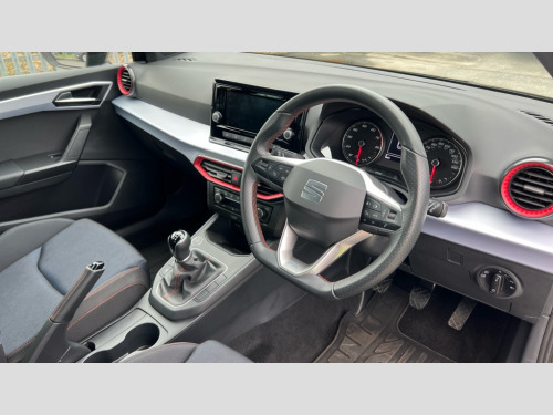 Seat Ibiza 1.0 TSI 110 FR Edition 5dr 'Lights On' Reminder warning buzzer, 8.25" touchscreen display with type C USB socket and DAB/AM/FM radio, Analogue cockpit with physical dials, Auto start and stop system, Bluetooth audio streaming with handsfree system, E-call, Full link smartphone integration with mirror link, wireless apple carplay, Google android auto + USB Type C cable for apple and android devices, Lane assist, Low fuel warning light, Outside temperature gauge, Power Steering, Rear parking sensor, Seat connect with safety, service and remote, SEAT drive profiles and ECO function, SEAT logo boot release, Speed limiter, Trip computer, Wireless phone charger, Sports suspension, Auxiliary input socket, Radio/MP3 player, SD card slot, Steering wheel mounted controls, Anti theft roof antenna, Black door mirrors, Body colour bumpers, Body colour door handles, Brilliant black window surrounds, Dark tinted rear windows, Dimming interior rear view mirror, Electric front windows, Electric headlight adjustment, Electric rear windows, Electrically adjustable and heated door mirrors, Front/rear fog lights, FULL LED automatic headlights with dynamic headlight range control, coming and leaving home, LED daytime running lights, LED tail lights, Rear roof spoiler with FR twin exhausts, Rear side wing doors, Rear wiper, Third brake light, 3 seat bench in 2nd row, 60/40 split folding rear seat, Ambient interior lighting, Chrome detailing and black headlining, Cloth upholstery, Dual zone climate control with combination filter, Front courtesy lights, Front cupholders x 2, Front reading lights, Gear shift indicator, Glovebox, Height adjustable front and rear headrests (five), Height adjustable front seats, Height/reach adjust steering wheel, Illuminated air vent surrounds, Illuminated boot, Instrument lighting with brightness control, Isofix, Leather multifunction flat bottomed sports steering wheel, Passenger sunvisor, Single front passenger seat, Sports seats, Sunvisors with mirror and driver side card holder, 3 point seatbelts on all 3 rear seats, ABS, Active front headrests, Child locks on rear doors, Electronic stability control, Energy recovery system, Front assist forward collision warning and autonomous emergency braking, Front driver and passenger side airbags with curtain airbag and front passenger airbag deactivation, Hill hold control, Multi-Collision braking, Seat belt reminder for front and rear seats, Tiredness recognition system, Tyre pressure monitoring system, Electronic engine immobiliser, KESSY Keyless entry and go, Locking wheel bolts, Perimeter alarm and interior monitoring with backup horn and tow away protection, Remote central locking + deadlocks, 18" Performance machined alloy wheels in black and grey