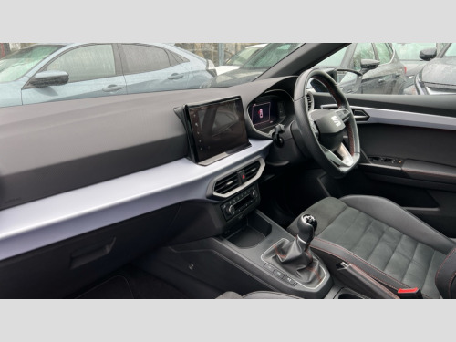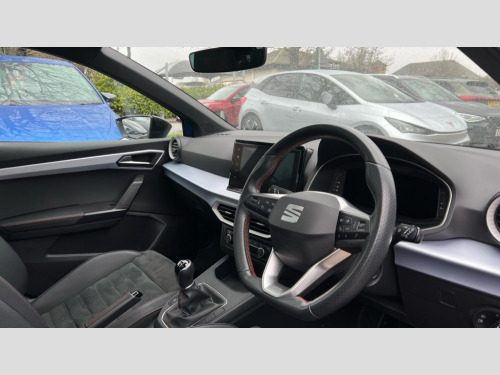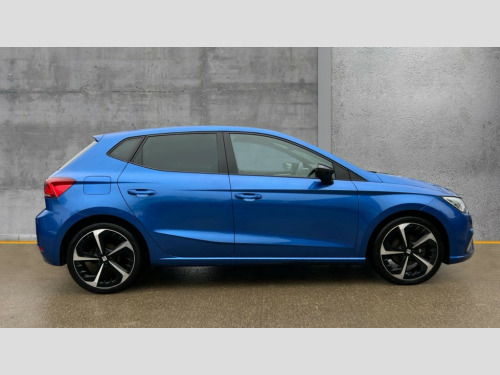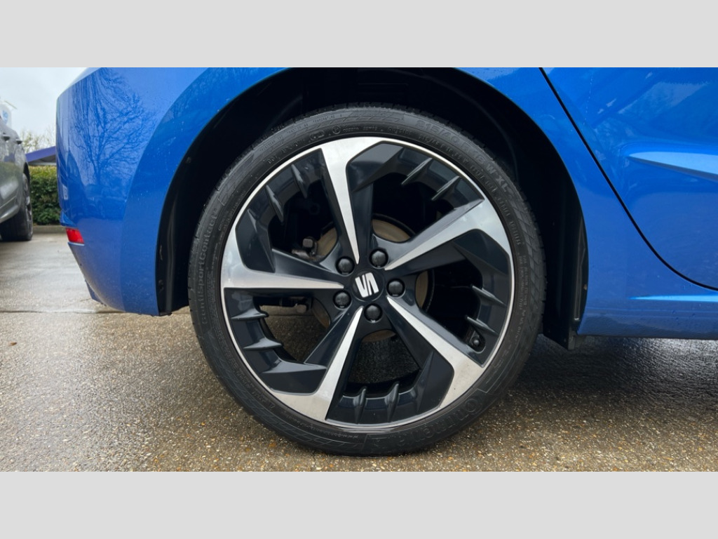 Seat Ibiza 1.0 TSI 110 FR Sport 5dr 'Lights On' Reminder warning buzzer, 9.2" touchscreen navigation system with type C USB socket, Voice control and DAB/AM/FM radio, Auto start and stop system, Bluetooth audio streaming with handsfree system, Digital clock, Digital cockpit, E-call, Full link smartphone integration with mirror link, wireless apple carplay, Google android auto + USB Type C cable for apple and android devices, Lane assist, Low fuel warning light, Outside temperature gauge, Power Steering, Seat connect with safety, service, remote and online, SEAT drive profiles and ECO function, SEAT logo boot release, Speed limiter, Trip computer, Sports suspension, Auxiliary input socket, Radio/MP3 player, SD card slot, Steering wheel mounted controls, Anti theft roof antenna, Auto dimming rear view mirror, Automatic rain sensing wipers, Black door mirrors, Body colour bumpers, Body colour door handles, Brilliant black window surrounds, Dark tinted rear windows, Electric adjustable/heated/folding door mirrors, Electric front windows, Electric headlight adjustment, Electric rear windows, Front/rear fog lights, FULL LED automatic headlights with dynamic headlight range control, coming and leaving home, LED daytime running lights, LED tail lights, Rear roof spoiler with FR twin exhausts, Rear side wing doors, Rear wiper, Third brake light, 3 seat bench in 2nd row, 60/40 split folding rear seat, Ambient interior lighting, Chrome detailing and black headlining, Comfort seats, Dual zone climate control with combination filter, Front courtesy lights, Front cupholders x 2, Front reading lights, Gear shift indicator, Glovebox, Height adjustable front and rear headrests (five), Height adjustable front seats, Height/reach adjust steering wheel, Illuminated air vent surrounds, Illuminated boot, Instrument lighting with brightness control, Isofix, Leather multifunction flat bottomed sports steering wheel, Microsuede cloth upholstery, Passenger sunvisor, Single front passenger seat, Storage pockets on back of front seats, Sunvisors with mirror and driver side card holder, 3 point seatbelts on all 3 rear seats, ABS, Active front headrests, Child locks on rear doors, Electronic stability control, Energy recovery system, Front assist forward collision warning and autonomous emergency braking, Front driver and passenger side airbags with curtain airbag and front passenger airbag deactivation, Hill hold control, Multi-Collision braking, Seat belt reminder for front and rear seats, Tiredness recognition system, Tyre pressure monitoring system, Electronic engine immobiliser, Locking wheel bolts, Perimeter alarm and interior monitoring with backup horn and tow away protection, Remote central locking + deadlocks, 18" Performance machined alloy wheels in black and grey