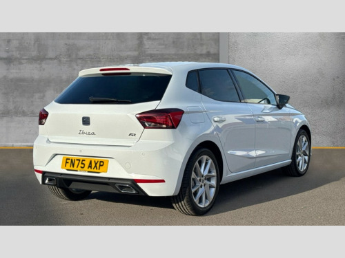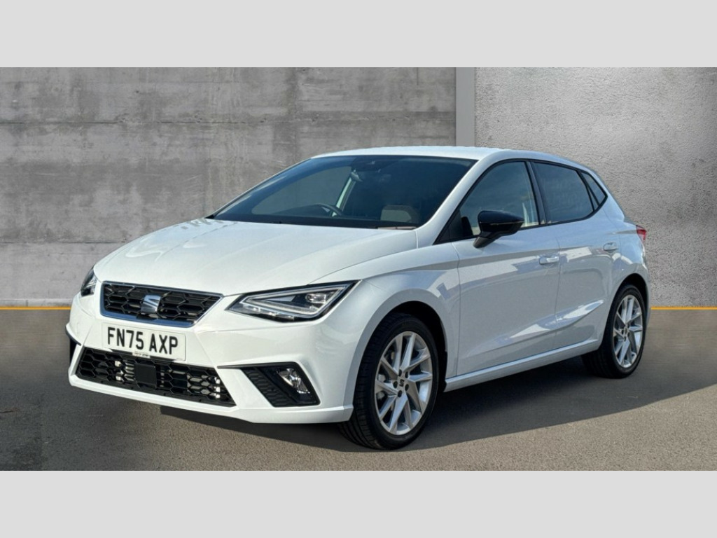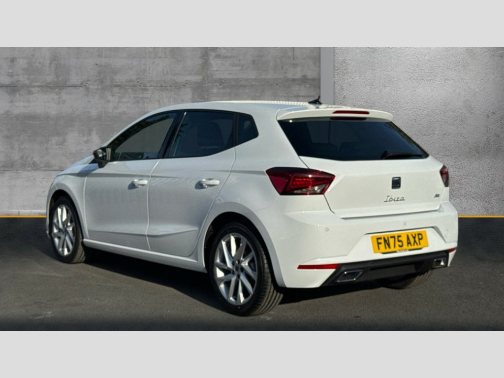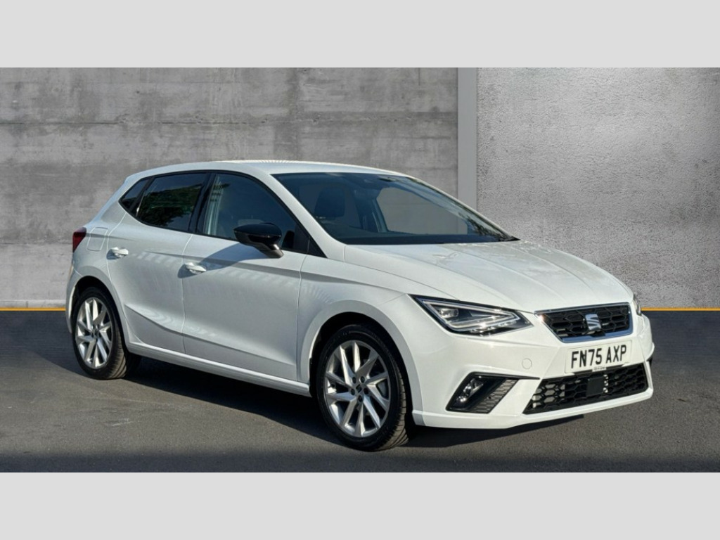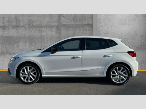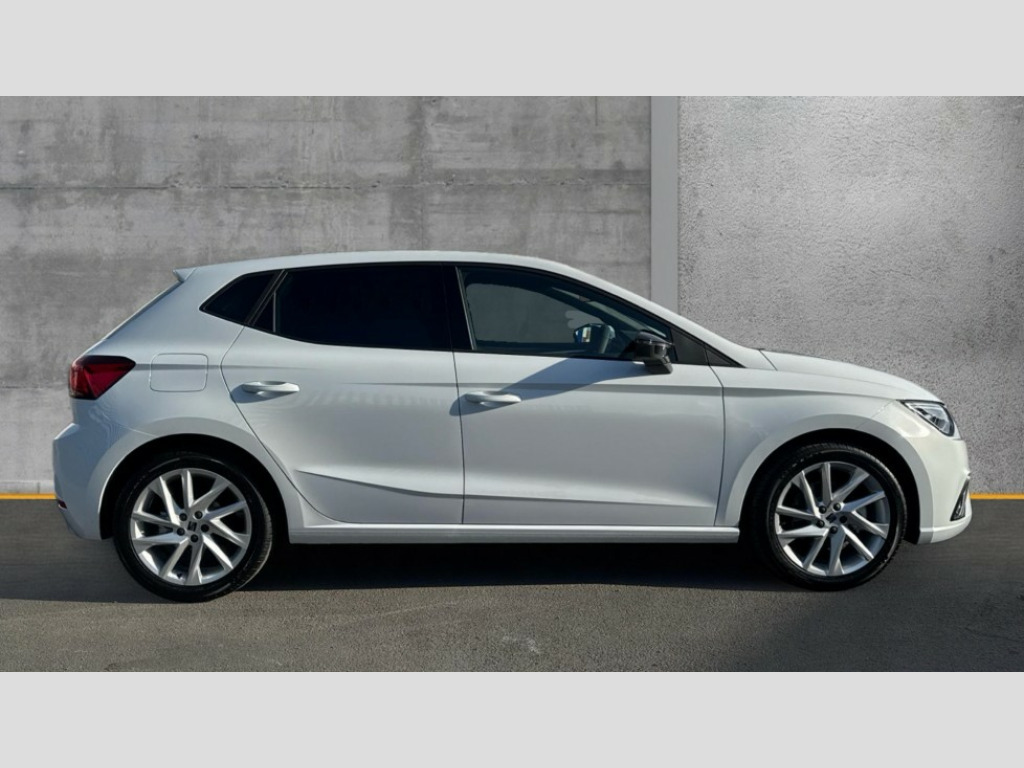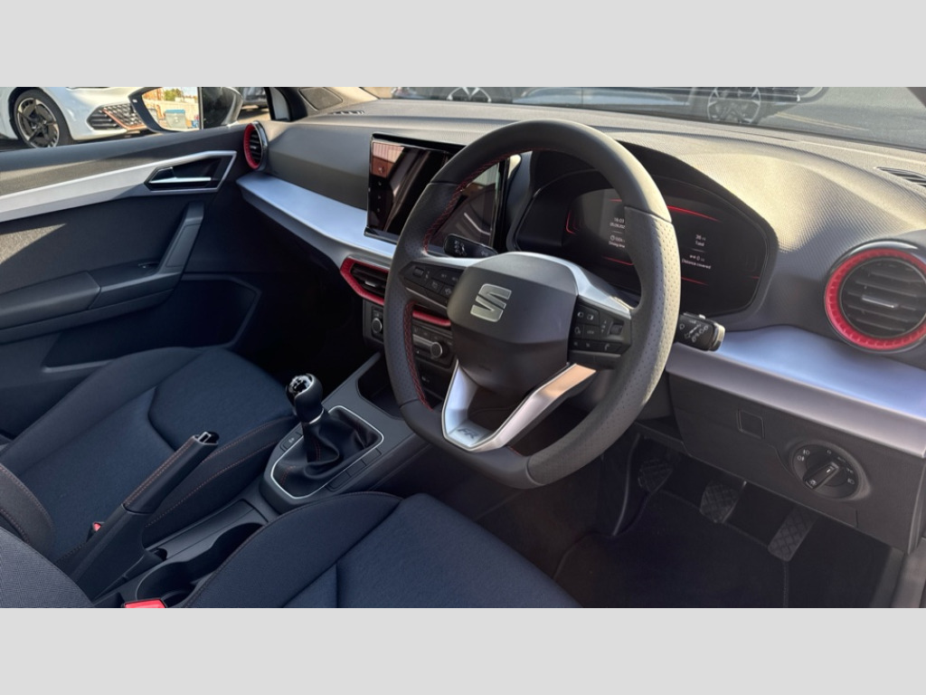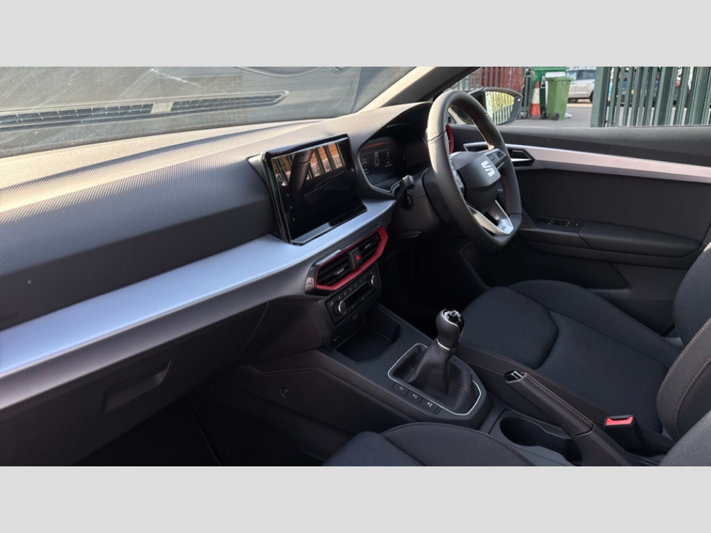 Seat Ibiza 1.0 TSI 115 FR 5dr 'Lights On' Reminder warning buzzer, 8" Digital cockpit, 9.2" touchscreen navigation system with type C USB socket, Voice control and DAB/AM/FM radio, Auto start and stop system, Bluetooth audio streaming with handsfree system, Digital clock, E-call, Full link smartphone integration with mirror link, wireless apple carplay, Google android auto + USB Type C cable for apple and android devices, Lane assist, Low fuel warning light, Outside temperature gauge, Power Steering, Rear parking sensor, Seat connect plus with safety, service, remote and online, SEAT drive profiles and ECO function, SEAT logo boot release, Speed limiter, Traffic sign recognition, Trip computer, Sports suspension, Auxiliary input socket, Radio/MP3 player, SD card slot, Steering wheel mounted controls, Anti theft roof antenna, Auto dimming rear view mirror, Automatic rain sensing wipers, Black door mirror caps, Body colour bumpers, Body colour door handles, Brilliant black window surrounds, Dark tinted rear windows, Electric adjustable/heated/folding door mirrors, Electric front windows, Electric headlight adjustment, Electric rear windows, Front/rear fog lights, FULL LED automatic headlights with dynamic headlight range control, coming and leaving home, LED daytime running lights, LED 3rd brake light, LED tail lights, Rear roof spoiler with FR twin exhausts, Rear side wing doors, Rear wiper, 3 seat bench in 2nd row, 60/40 split folding rear seat, Ambient interior lighting, Chrome detailing and black headlining, Cloth upholstery, Dual zone climate control with combination filter, Front courtesy lights, Front cupholders x 2, Front reading lights, Gear shift indicator, Glovebox, Height adjustable front and rear headrests (five), Height adjustable front seats, Height/reach adjust steering wheel, Illuminated air vent surrounds, Illuminated boot, Instrument lighting with brightness control, Isofix, Leather multifunction flat bottomed sports steering wheel, Passenger sunvisor, Single front passenger seat, Sports seats, Sunvisors with mirror and driver side card holder, Safety and driving pack (S) - Ibiza, 3 point seatbelts on all 3 rear seats, ABS, Active front headrests, Child locks on rear doors, Electronic stability control, Energy recovery system, Front driver and passenger side airbags with curtain airbag and front passenger airbag deactivation, Hill hold control, Multi-Collision braking, Seat belt reminder for front and rear seats, Tiredness recognition system, Tyre pressure monitoring system, Locking wheel bolts, Perimeter alarm and interior monitoring with backup horn and tow away protection, Remote central locking + deadlocks, 17" Alloy wheels in Brilliant silver