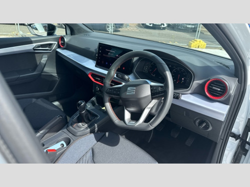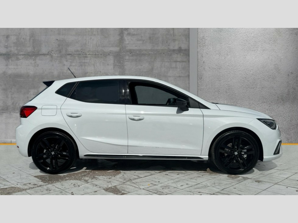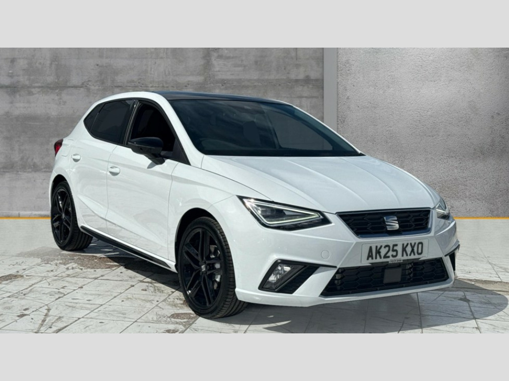 Seat Ibiza 1.0 TSI 115 FR Black Edition 5dr 'Lights On' Reminder warning buzzer, 10" Digital cockpit, 9.2" touchscreen navigation system with type C USB socket, Voice control and DAB/AM/FM radio, Auto start and stop system, Bluetooth audio streaming with handsfree system, Digital clock, E-call, Full link smartphone integration with mirror link, wireless apple carplay, Google android auto + USB Type C cable for apple and android devices, Lane assist, Low fuel warning light, Outside temperature gauge, Power Steering, Rear parking sensor, Seat connect plus with safety, service, remote and online, SEAT drive profiles and ECO function, SEAT logo boot release, Speed limiter, Traffic sign recognition, Trip computer, Sports suspension, 6 speakers, Auxiliary input socket, Radio/MP3 player, SD card slot, Steering wheel mounted controls, Anti theft roof antenna, Auto dimming rear view mirror, Automatic rain sensing wipers, Black door mirror caps, Black roof spoiler, Black side skirts, Body colour bumpers, Body colour door handles, Brilliant black window surrounds, Dark tinted rear windows, Electric adjustable/heated/folding door mirrors, Electric front windows, Electric headlight adjustment, Electric panoramic sunroof, Electric rear windows, Front/rear fog lights, FULL LED automatic headlights with dynamic headlight range control, coming and leaving home, LED daytime running lights, LED 3rd brake light, LED tail lights, Rear roof spoiler with FR twin exhausts, Rear side wing doors, Rear wiper, 3 seat bench in 2nd row, 60/40 split folding rear seat, Ambient interior lighting, Chrome detailing and black headlining, Dual zone climate control with combination filter, Front courtesy lights, Front cupholders x 2, Front reading lights, Front sport bucket seats, Gear shift indicator, Glovebox, Heated front seats, Height adjustable front and rear headrests (five), Height adjustable front seats, Height/reach adjust steering wheel, Illuminated air vent surrounds, Illuminated boot, Instrument lighting with brightness control, Isofix, Leather multifunction flat bottomed sports steering wheel, Microsuede cloth upholstery, Passenger sunvisor, Single front passenger seat, Storage pockets on back of front seats, Sunvisors with mirror and driver side card holder, Safety and driving pack (S) - Ibiza, ABS, Active front headrests, Child locks on rear doors, Electronic stability control, Energy recovery system, Front driver and passenger side airbags with curtain airbag and front passenger airbag deactivation, Hill hold control, Multi-Collision braking, Seat belt reminder for front and rear seats, Tiredness recognition system, Tyre pressure monitoring system, KESSY Keyless entry and go, Locking wheel bolts, Perimeter alarm and interior monitoring with backup horn and tow away protection, Remote central locking + deadlocks, 18" Performance alloy wheels in glossy black
