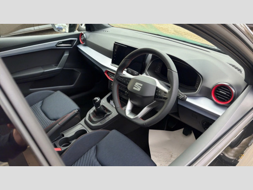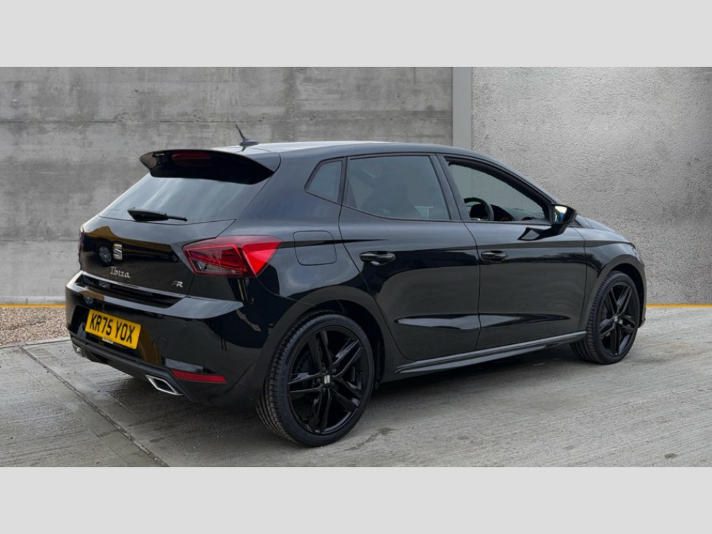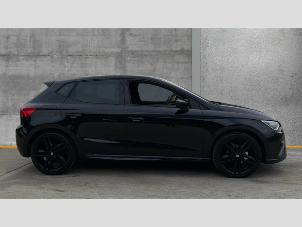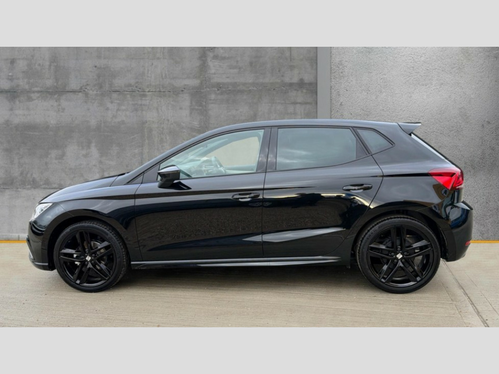 Seat Ibiza 1.0 TSI 95 FR Black Edition 5dr 'Lights On' Reminder warning buzzer, 10" Digital cockpit, 9.2" touchscreen navigation system with type C USB socket, Voice control and DAB/AM/FM radio, Auto start and stop system, Bluetooth audio streaming with handsfree system, Digital clock, E-call, Full link smartphone integration with mirror link, wireless apple carplay, Google android auto + USB Type C cable for apple and android devices, Lane assist, Low fuel warning light, Outside temperature gauge, Power Steering, Rear parking sensor, Seat connect plus with safety, service, remote and online, SEAT logo boot release, Speed limiter, Traffic sign recognition, Trip computer, Sports suspension, Auxiliary input socket, Radio/MP3 player, SD card slot, Steering wheel mounted controls, Anti theft roof antenna, Auto dimming rear view mirror, Automatic rain sensing wipers, Black door mirror caps, Black roof spoiler, Black side skirts, Body colour bumpers, Body colour door handles, Brilliant black window surrounds, Dark tinted rear windows, Electric adjustable/heated/folding door mirrors, Electric front windows, Electric headlight adjustment, Electric panoramic sunroof, Electric rear windows, Front/rear fog lights, FULL LED automatic headlights with dynamic headlight range control, coming and leaving home, LED daytime running lights, LED 3rd brake light, LED tail lights, Rear roof spoiler with FR twin exhausts, Rear side wing doors, Rear wiper, 3 seat bench in 2nd row, 60/40 split folding rear seat, Ambient interior lighting, Chrome detailing and black headlining, Dual zone climate control with combination filter, Front courtesy lights, Front cupholders x 2, Front reading lights, Front sport bucket seats, Gear shift indicator, Glovebox, Heated front seats, Height adjustable front and rear headrests (five), Height adjustable front seats, Height/reach adjust steering wheel, Illuminated air vent surrounds, Illuminated boot, Instrument lighting with brightness control, Isofix, Leather multifunction flat bottomed sports steering wheel, Microsuede cloth upholstery, Passenger sunvisor, Single front passenger seat, Storage pockets on back of front seats, Sunvisors with mirror and driver side card holder, Safety and driving pack (S) - Ibiza, 3 point seatbelts on all 3 rear seats, ABS, Active front headrests, Child locks on rear doors, Electronic stability control, Energy recovery system, Front driver and passenger side airbags with curtain airbag and front passenger airbag deactivation, Hill hold control, Multi-Collision braking, Seat belt reminder for front and rear seats, Tiredness recognition system, Tyre pressure monitoring system, KESSY Keyless entry and go, Locking wheel bolts, Perimeter alarm and interior monitoring with backup horn and tow away protection, Remote central locking + deadlocks, 18" Performance alloy wheels in glossy black