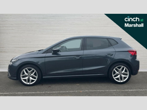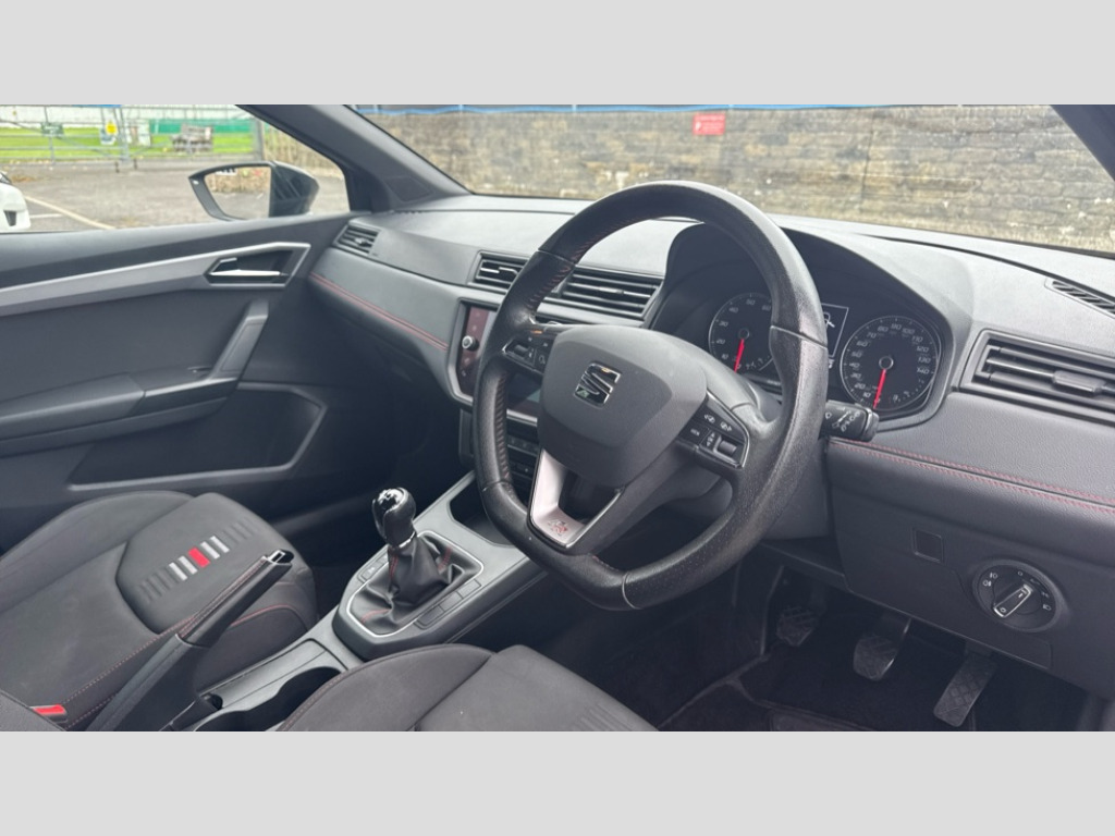 Seat Ibiza 1.0 TSI 95 FR [EZ] 5dr 'Lights On' Reminder warning buzzer, Bluetooth audio streaming with handsfree system, Cruise control, Digital clock, Full Link Smartphone Integration with Mirror Link, Apple Car Play, Google Android Auto, Low fuel warning light, Navigation system with 8" touch screen + proximity sensor, voice control and USB type C sockets, Outside temperature gauge, Power Steering, Seat connect with safety, service, remote and online, SEAT Drive profile, SEAT logo boot release, Speed limiter, Trip computer, Sports suspension, 6 speakers, Auxiliary input socket, CD player, Digital Audio Broadcast (DAB) Tuner, Radio/MP3 player, SD card slot, Steering wheel mounted controls, USB (type C) cable for Apple and Android compatibility, Anti theft roof antenna, Auto dimming rear view mirror, Automatic headlights, Automatic rain sensing wipers, Body colour bumpers, Body colour door handles, Brilliant black door mirrors, Brilliant black window surrounds, Chrome front grille frame, Coming/leaving home lighting function, Dark tinted rear windows, Electric folding door mirrors, Electric front windows, Electric headlight adjustment, Electric rear windows, Electrically adjustable and heated door mirrors, Exclusive FR rear bumper, Front/rear fog lights, LED daytime running lights, LED headlights with dynamic headlight range control, LED tail lights, Rear spoiler with twin exhausts, 60/40 split folding rear seat, Ambient interior lighting, Chrome detailing, pearl grey headlining and leather effect door trim panels, Driver's sunvisor with ticket holder/vanity mirror, Dual zone climate control with combination filter, Front courtesy lights, Front cupholders x 2, Front reading lights, Gear shift indicator, Glovebox, Height adjustable driver's seat, Height adjustable passenger seat, Height/reach adjust steering wheel, Illuminated boot, Instrument lighting with brightness control, Leather multifunction flat bottomed steering wheel with FR logo, leather gear knob and handbrake, Nora cloth upholstery, Passenger sunvisor, Rear top tether child seat ISOFIX attachment, Sports seats, Two height adjustable front and rear headrests (three in rear), 3 point seatbelts on all 3 rear seats, ABS, Active front headrests, Child locks on rear doors, Curtain airbags, Driver/Front Passenger airbags, ESP+EBA, Front assist (AEB), Front passenger airbag deactivation, Front side airbags, Hill hold control, Multi-Collision braking, Seat belt reminder for front and rear seats, Tiredness recognition system, Tyre pressure monitoring system, Anti theft wheel bolts, Electronic engine immobiliser, Perimeter alarm and interior monitoring with backup horn and tow away protection, Remote central locking + deadlocks, Leather dashboard, 17" Dynamic alloy wheels