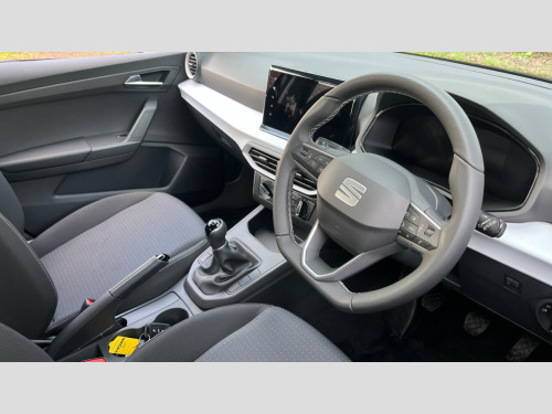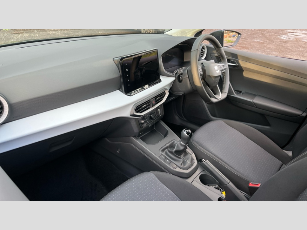 Seat Ibiza 1.0 TSI 95 SE Technology 5dr 'Lights On' Reminder warning buzzer, 8" Digital cockpit, 9.2" touchscreen navigation system with type C USB socket, Voice control and DAB/AM/FM radio, Auto start and stop system, Bluetooth audio streaming with handsfree system, Cruise control, Digital clock, E-call, Full link smartphone integration with mirror link, wireless apple carplay, Google android auto + USB Type C cable for apple and android devices, Lane assist, Low fuel warning light, Outside temperature gauge, Power Steering, Rear parking sensor, Seat connect plus with safety, service, remote and online, SEAT logo boot release, Speed limiter, Traffic sign recognition, Trip computer, Comfort suspension, Auxiliary input socket, Radio/MP3 player, SD card slot, Steering wheel mounted controls, Anti theft roof antenna, Body colour bumpers, Body colour door handles, Body colour door mirror caps, Dimming interior rear view mirror, ECO LED automatic headlights and LED daytime running lights, Electric front windows, Electric headlight adjustment, Electrically adjustable door mirrors, Front/rear fog lights, LED tail lights, Rain sensor, Rear side wing doors, Rear wiper, Third brake light, 3 seat bench in 2nd row, 60/40 split folding rear seat, Air conditioning with dust and pollen filter, Chrome interior detailing and grey headlining, Cloth upholstery, Comfort seats, Front courtesy lights, Front cupholders x 2, Front reading lights, Gear shift indicator, Glovebox, Grey interior air vents, Height adjustable front and rear headrests (five), Height adjustable front seats, Height/reach adjust steering wheel, Illuminated boot, Instrument lighting with brightness control, Isofix, Leather multifunction flat bottomed sports steering wheel, Passenger sunvisor, Single front passenger seat, Sunvisors with mirror and driver side card holder, Safety and driving pack (S) - Ibiza, 3 point seatbelts on all 3 rear seats, ABS, Active front headrests, Child locks on rear doors, Electronic stability control, Energy recovery system, Front assist forward collision warning and autonomous emergency braking, Front driver and passenger side airbags with curtain airbag and front passenger airbag deactivation, Hill hold control, Multi-Collision braking, Seat belt reminder for front and rear seats, Tiredness recognition system, Tyre pressure monitoring system, Electronic engine immobiliser, Locking wheel bolts, Remote central locking + deadlocks, 16" Design machined alloy wheels in Nuclear grey