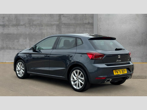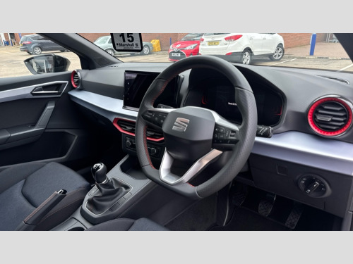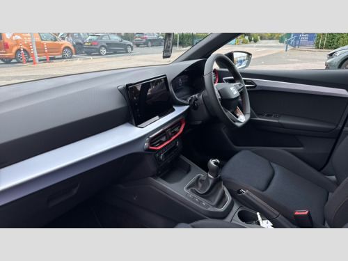 Seat Ibiza 1.0 TSI 115 FR 5dr 'Lights On' Reminder warning buzzer, 8" Digital cockpit, 9.2" touchscreen navigation system with type C USB socket, Voice control and DAB/AM/FM radio, Auto start and stop system, Bluetooth audio streaming with handsfree system, Digital clock, E-call, Full link smartphone integration with mirror link, wireless apple carplay, Google android auto + USB Type C cable for apple and android devices, Lane assist, Low fuel warning light, Outside temperature gauge, Power Steering, Rear parking sensor, Seat connect plus with safety, service, remote and online, SEAT drive profiles and ECO function, SEAT logo boot release, Speed limiter, Traffic sign recognition, Trip computer, Sports suspension, Auxiliary input socket, Radio/MP3 player, SD card slot, Steering wheel mounted controls, Anti theft roof antenna, Auto dimming rear view mirror, Automatic rain sensing wipers, Black door mirror caps, Body colour bumpers, Body colour door handles, Brilliant black window surrounds, Dark tinted rear windows, Electric adjustable/heated/folding door mirrors, Electric front windows, Electric headlight adjustment, Electric rear windows, Front/rear fog lights, FULL LED automatic headlights with dynamic headlight range control, coming and leaving home, LED daytime running lights, LED 3rd brake light, LED tail lights, Rear roof spoiler with FR twin exhausts, Rear side wing doors, Rear wiper, 3 seat bench in 2nd row, 60/40 split folding rear seat, Ambient interior lighting, Chrome detailing and black headlining, Cloth upholstery, Dual zone climate control with combination filter, Front courtesy lights, Front cupholders x 2, Front reading lights, Gear shift indicator, Glovebox, Height adjustable front and rear headrests (five), Height adjustable front seats, Height/reach adjust steering wheel, Illuminated air vent surrounds, Illuminated boot, Instrument lighting with brightness control, Isofix, Leather multifunction flat bottomed sports steering wheel, Passenger sunvisor, Single front passenger seat, Sports seats, Sunvisors with mirror and driver side card holder, Safety and driving pack (S) - Ibiza, 3 point seatbelts on all 3 rear seats, ABS, Active front headrests, Child locks on rear doors, Electronic stability control, Energy recovery system, Front driver and passenger side airbags with curtain airbag and front passenger airbag deactivation, Hill hold control, Multi-Collision braking, Seat belt reminder for front and rear seats, Tiredness recognition system, Tyre pressure monitoring system, Locking wheel bolts, Perimeter alarm and interior monitoring with backup horn and tow away protection, Remote central locking + deadlocks, 17" Alloy wheels in Brilliant silver