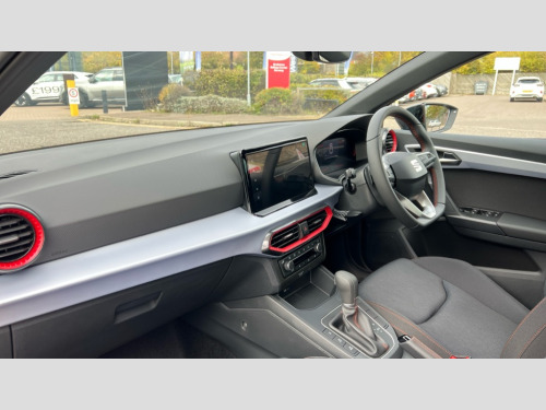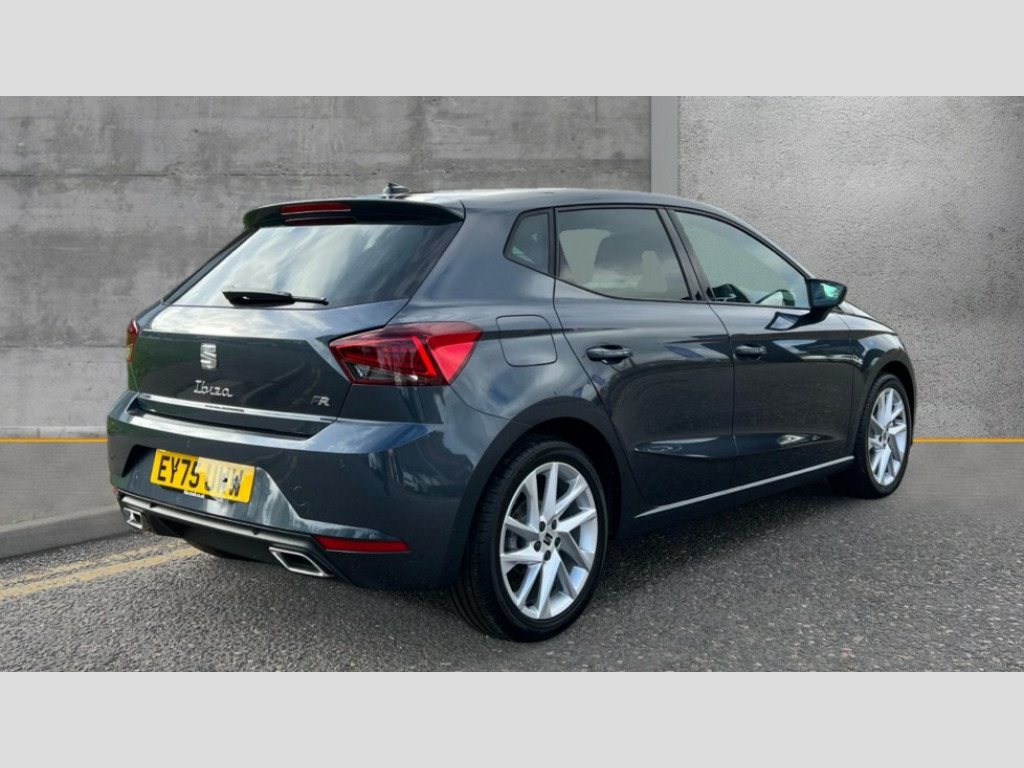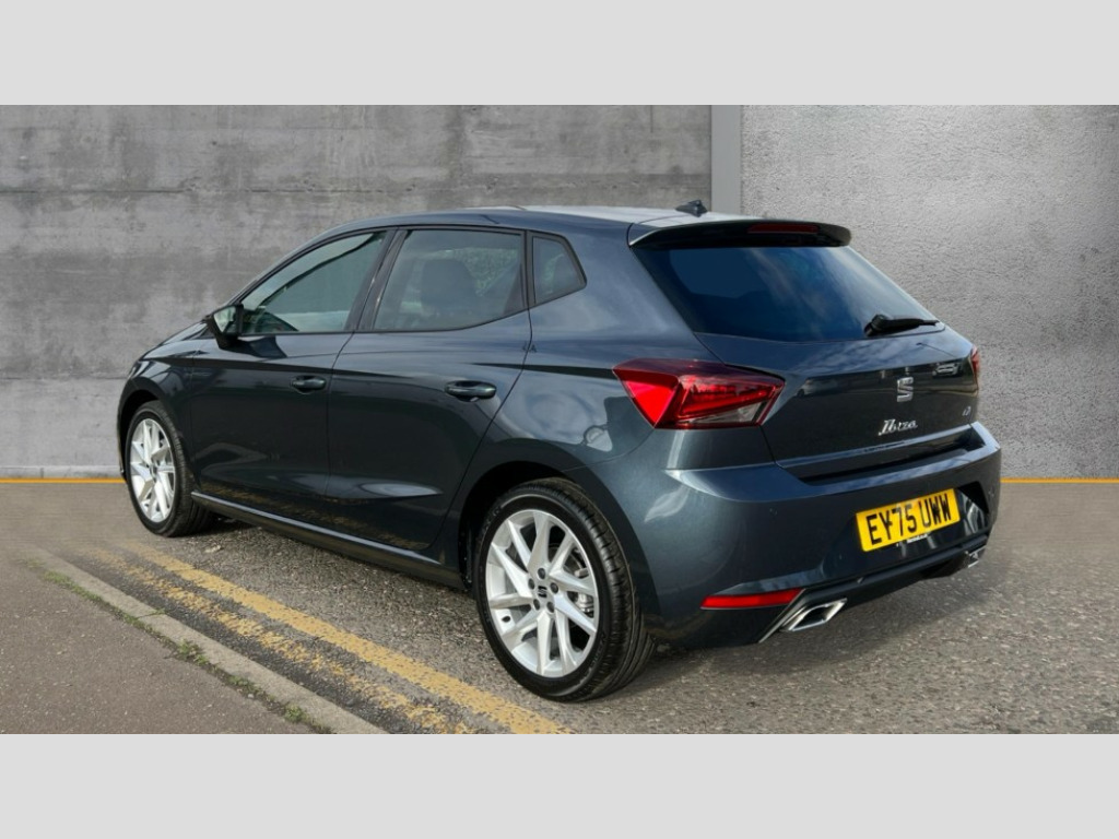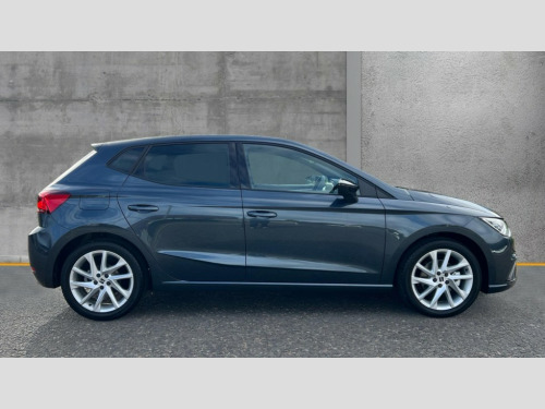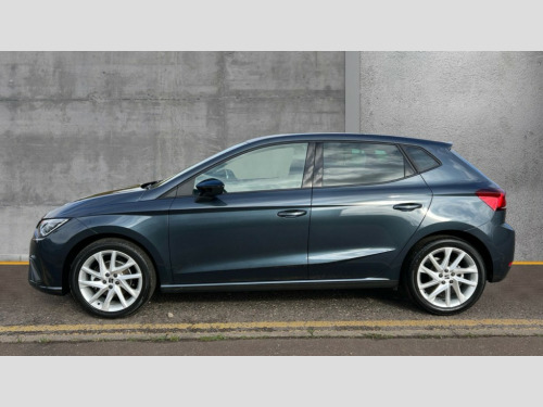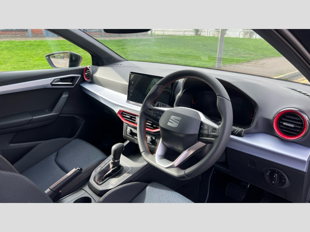 Seat Ibiza 1.0 TSI 115 FR 5dr DSG 'Lights On' Reminder warning buzzer, 8" Digital cockpit, 9.2" touchscreen navigation system with type C USB socket, Voice control and DAB/AM/FM radio, Auto start and stop system, Bluetooth audio streaming with handsfree system, Digital clock, E-call, Full link smartphone integration with mirror link, wireless apple carplay, Google android auto + USB Type C cable for apple and android devices, Lane assist, Low fuel warning light, Outside temperature gauge, Power Steering, Rear parking sensor, Seat connect plus with safety, service, remote and online, SEAT drive profiles and ECO function, SEAT logo boot release, Speed limiter, Traffic sign recognition, Trip computer, Sports suspension, Auxiliary input socket, Radio/MP3 player, SD card slot, Steering wheel mounted controls, Anti theft roof antenna, Auto dimming rear view mirror, Automatic rain sensing wipers, Black door mirror caps, Body colour bumpers, Body colour door handles, Brilliant black window surrounds, Dark tinted rear windows, Electric adjustable/heated/folding door mirrors, Electric front windows, Electric headlight adjustment, Electric rear windows, Front/rear fog lights, FULL LED automatic headlights with dynamic headlight range control, coming and leaving home, LED daytime running lights, LED 3rd brake light, LED tail lights, Rear roof spoiler with FR twin exhausts, Rear side wing doors, Rear wiper, 3 seat bench in 2nd row, 60/40 split folding rear seat, Ambient interior lighting, Chrome detailing and black headlining, Cloth upholstery, Dual zone climate control with combination filter, Front courtesy lights, Front cupholders x 2, Front reading lights, Gear shift indicator, Glovebox, Height adjustable front and rear headrests (five), Height adjustable front seats, Height/reach adjust steering wheel, Illuminated air vent surrounds, Illuminated boot, Instrument lighting with brightness control, Isofix, Leather multifunction flat bottomed sports steering wheel with gearshift paddles, Passenger sunvisor, Single front passenger seat, Sports seats, Sunvisors with mirror and driver side card holder, Safety and driving pack (S) - Ibiza, 3 point seatbelts on all 3 rear seats, ABS, Active front headrests, Child locks on rear doors, Electronic stability control, Energy recovery system, Front driver and passenger side airbags with curtain airbag and front passenger airbag deactivation, Hill hold control, Multi-Collision braking, Seat belt reminder for front and rear seats, Tiredness recognition system, Tyre pressure monitoring system, Locking wheel bolts, Perimeter alarm and interior monitoring with backup horn and tow away protection, Remote central locking + deadlocks, 17" Alloy wheels in Brilliant silver