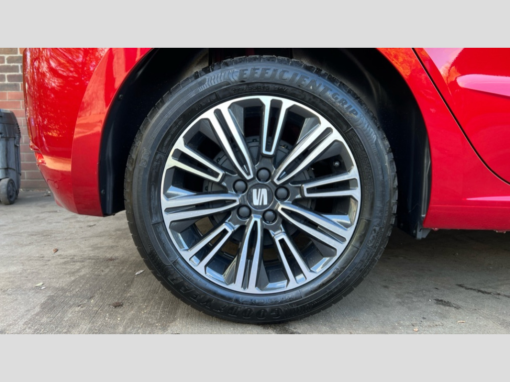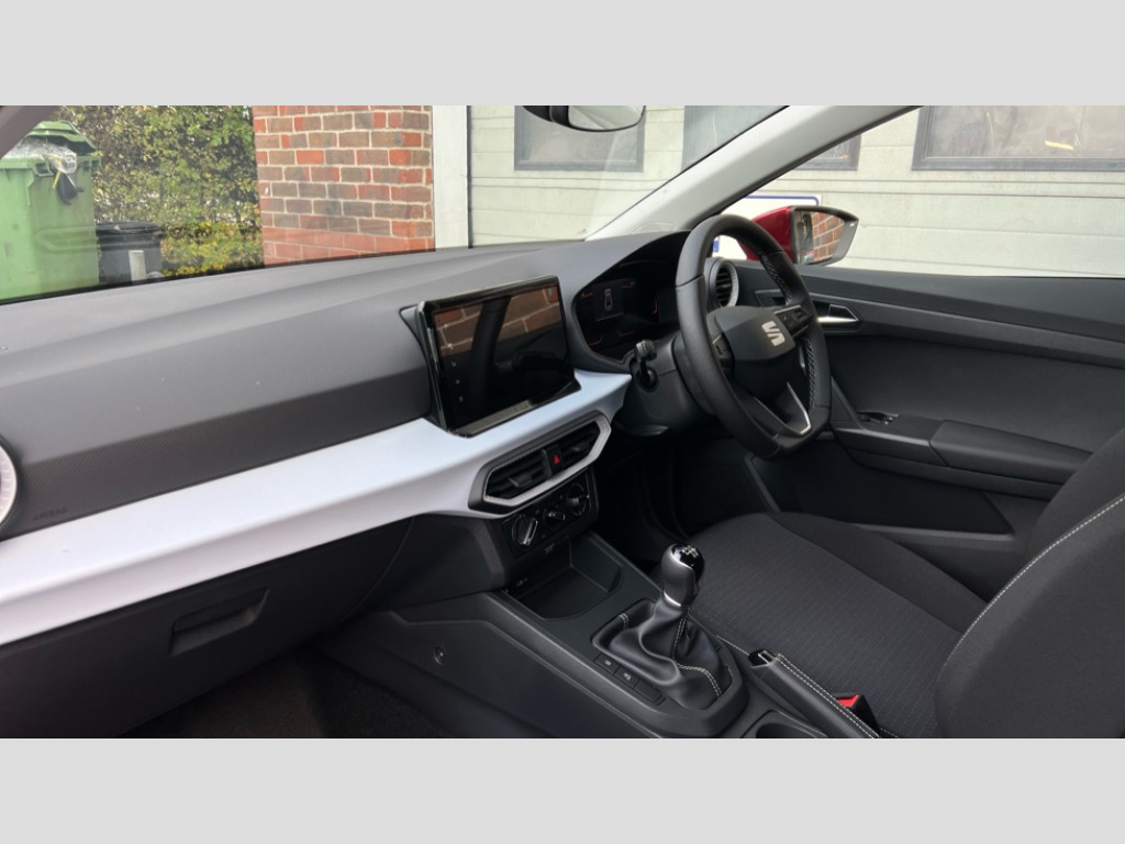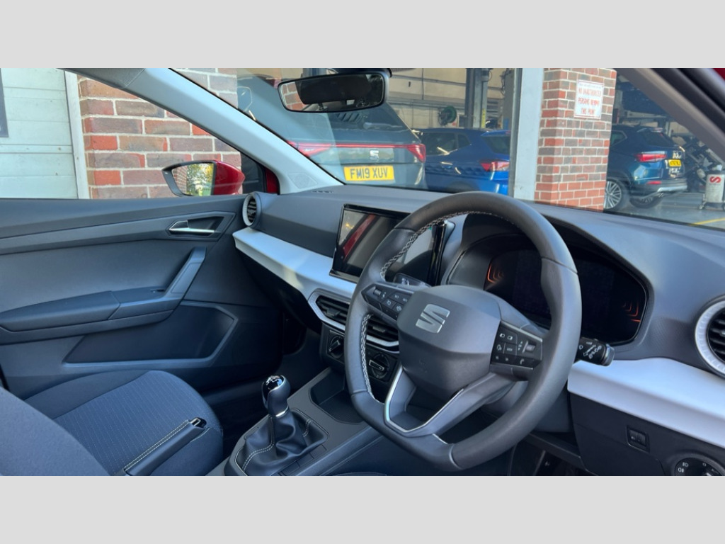 Seat Ibiza 1.0 TSI 95 SE Technology 5dr 'Lights On' Reminder warning buzzer, 8" Digital cockpit, 9.2" touchscreen navigation system with type C USB socket, Voice control and DAB/AM/FM radio, Auto start and stop system, Bluetooth audio streaming with handsfree system, Cruise control, Digital clock, E-call, Full link smartphone integration with mirror link, wireless apple carplay, Google android auto + USB Type C cable for apple and android devices, Lane assist, Low fuel warning light, Outside temperature gauge, Power Steering, Rear parking sensor, Seat connect plus with safety, service, remote and online, SEAT logo boot release, Speed limiter, Traffic sign recognition, Trip computer, Comfort suspension, Auxiliary input socket, Radio/MP3 player, SD card slot, Steering wheel mounted controls, Anti theft roof antenna, Body colour bumpers, Body colour door handles, Body colour door mirror caps, Dimming interior rear view mirror, ECO LED automatic headlights and LED daytime running lights, Electric front windows, Electric headlight adjustment, Electrically adjustable door mirrors, Front/rear fog lights, LED tail lights, Rain sensor, Rear side wing doors, Rear wiper, Third brake light, 3 seat bench in 2nd row, 60/40 split folding rear seat, Air conditioning with dust and pollen filter, Chrome interior detailing and grey headlining, Cloth upholstery, Comfort seats, Front courtesy lights, Front cupholders x 2, Front reading lights, Gear shift indicator, Glovebox, Grey interior air vents, Height adjustable front and rear headrests (five), Height adjustable front seats, Height/reach adjust steering wheel, Illuminated boot, Instrument lighting with brightness control, Isofix, Leather multifunction flat bottomed sports steering wheel, Passenger sunvisor, Single front passenger seat, Sunvisors with mirror and driver side card holder, Safety and driving pack (S) - Ibiza, 3 point seatbelts on all 3 rear seats, ABS, Active front headrests, Child locks on rear doors, Electronic stability control, Energy recovery system, Front assist forward collision warning and autonomous emergency braking, Front driver and passenger side airbags with curtain airbag and front passenger airbag deactivation, Hill hold control, Multi-Collision braking, Seat belt reminder for front and rear seats, Tiredness recognition system, Tyre pressure monitoring system, Electronic engine immobiliser, Locking wheel bolts, Remote central locking + deadlocks, 16" Design machined alloy wheels in Nuclear grey