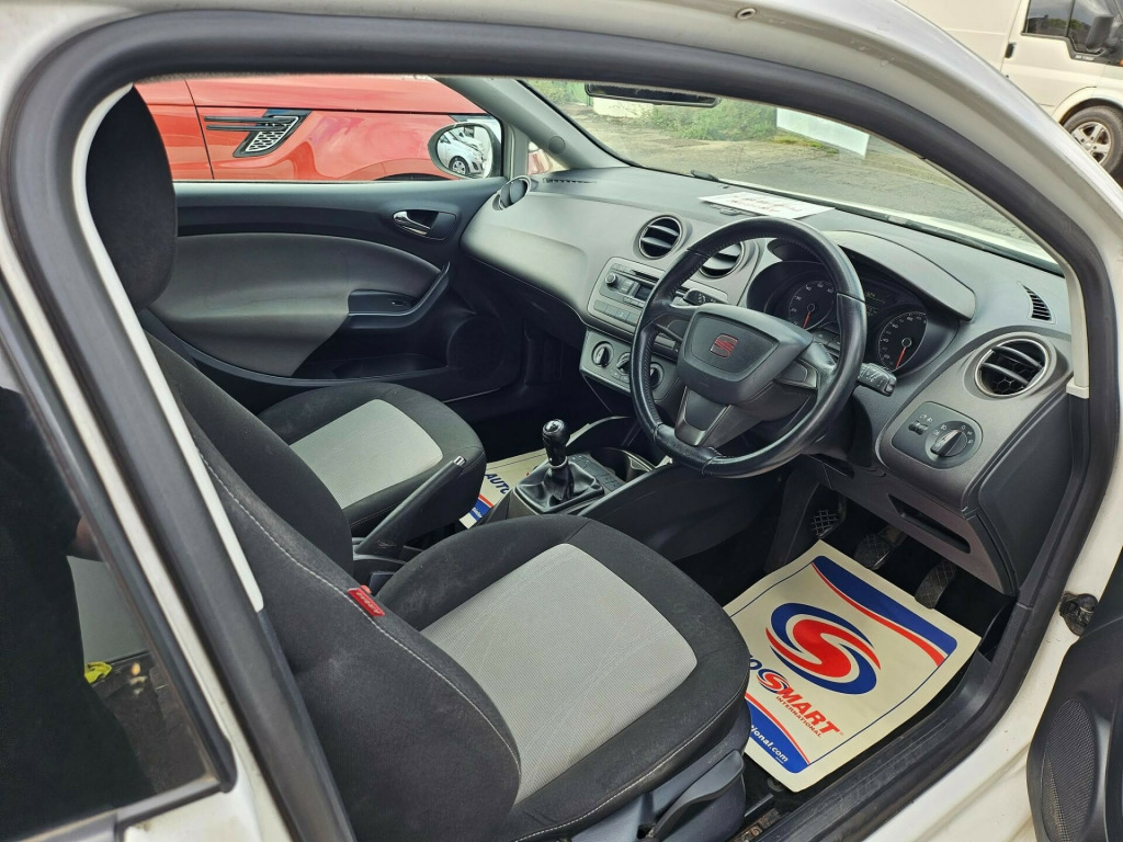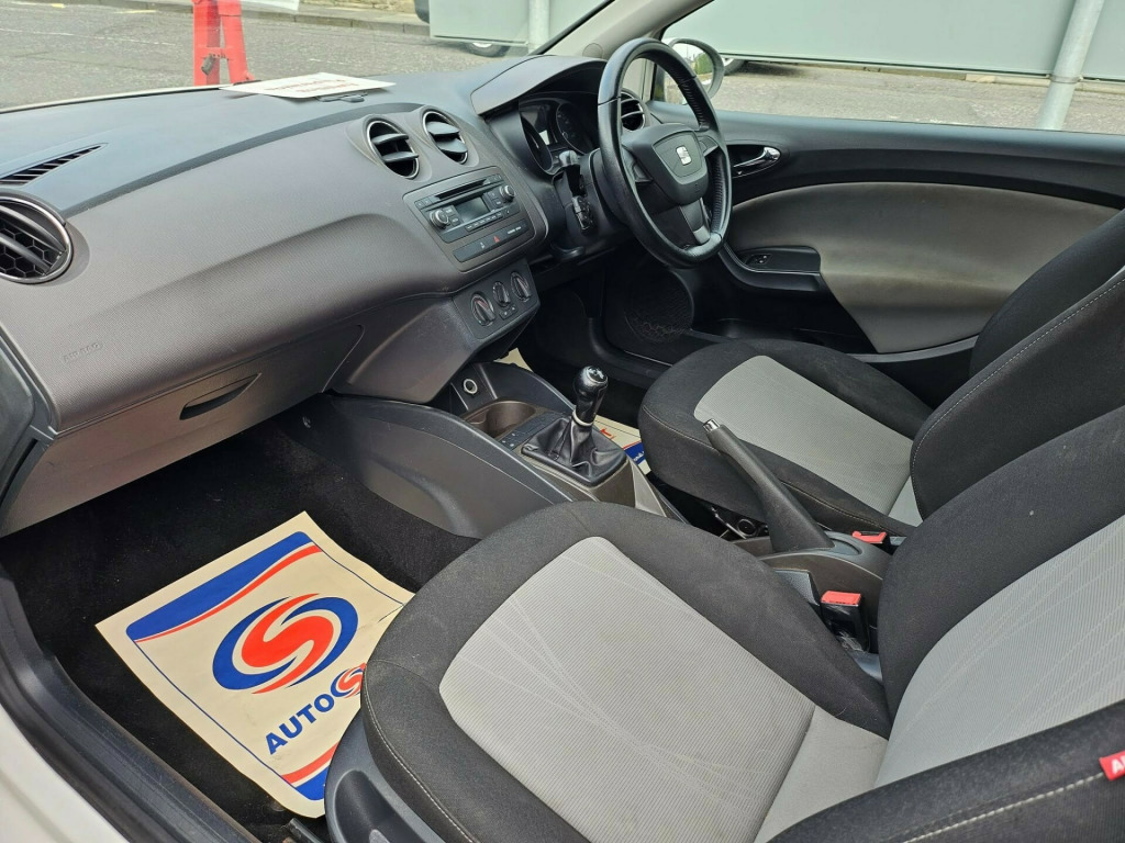 PRE VALET PICTURES This 2013 SEAT Ibiza TOCA 3-Door is a stunning hatchback in White with just 77785 miles on the clock, making it a great choice for anyone seeking a reliable, low-mileage vehicle. Powered by a petrol engine, this car is both economical and efficient, ensuring a smooth and enjoyable driving experience. With 5 seats and 3 doors, this Ibiza offers plenty of space for passengers while maintaining a compact and stylish design. As an added bonus, this car is ULEZ compliant, making it an environmentally friendly choice for city driving. Previously owned by 2 registered keepers, this vehicle has been well-maintained and is ready for many more miles of dependable performance. Whether you're commuting to work or embarking on a weekend adventure, the SEAT Ibiza TOCA 3-Door is a fantastic option for any driver. r conditioning, door mirrors electrically foldable, adjustable steering column, power steering, stability control, steering wheel reach adjustment, trip computer, abs, air bag, isofix child seat anchor points, multiple airbags, passenger airbag, alarm, anti-theft system, central locking, immobiliser, electric windows, radio/cd, height adjustable drivers seat, rear headrests, alloy wheels, body coloured bumpers, front fog lights, rear wash/wipe, 2 remote keys