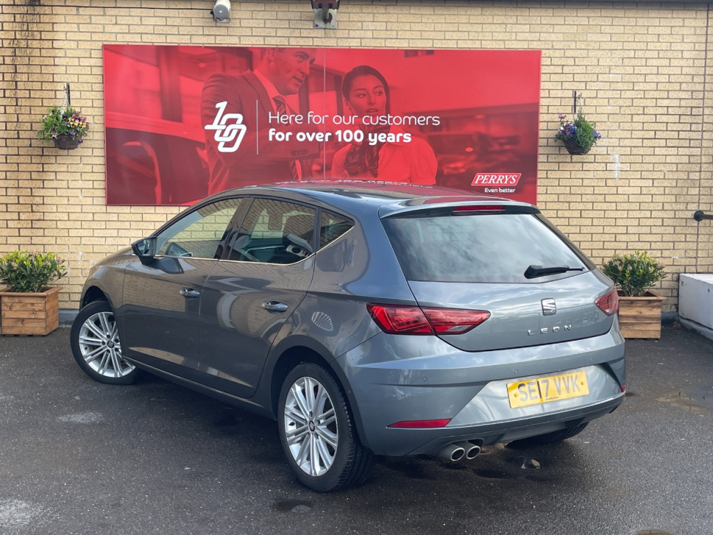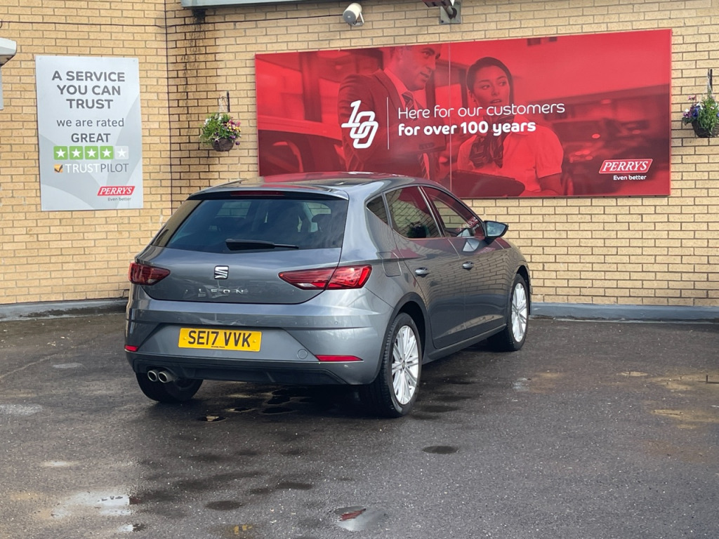 We are absolutely delighted to showcase this Seat Leon, finished off in Grey paint, features a smooth and economical 2.0, manual, diesel engine. This great example, features 17 inch alloys and includes, Sat Nav, Cruise Control, Automatic Headlights, Automatic Windscreen Wipers, Front Parking Sensors, Rear Parking Sensors, Apple Car Play, DAB, Climate Control and Heated Front Seats. The current owner has owned it for some time and maintained the vehicle to a high standard with a service history the includes regular servicing carried out at 14283, 25945, 43196 and 50859 miles. This Seat Leon also boasts a number of practical features such as large boot 60/40 split folding rear seats ISOFIX rear seats and is finished off beautifully inside with black leather seats. Having covered only 52938 miles with only 1 previous owner, the preparation standards will include a full and comprehensive health check, no servicing requirements for at least 6 months and a quality check by a fully accredited technician. A wide range of warranty options are available and we will ensure that the vehicle comes with a minimum of 90 days comprehensive warranty provided by Perrys free of charge. We believe that as a family owned business, all of our used cars should be a fine example based on the age & mileage and that it has been thoroughly inspected by one of our accredited technicians. We really take time and care through our preparation stage to ensure that not only does the vehicle meet our company standards, also the standards of what our customers expect. Need the car delivering to you? Not a problem, we have various delivery options that we can discuss with you. We are now fully open for business and observing social distancing protocols including clearly defined entrances/exits, clearly defined walkways, safe consultation areas. sanitation stations, PPE protection for customers if requested including face masks and gloves. Test drives are also available in line with social distancing rules. We are a customer centric business, we’re proud to have over 450 reviews with an average rating of 4.5 out of 5 stars. If you would like to arrange a live video viewing of this vehicle, please do get in touch with a member of the team.