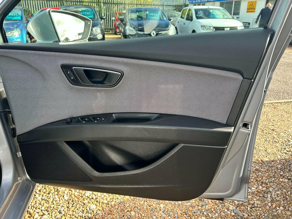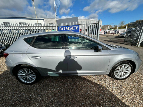Romsey Car Centre are delighted to offer this Lovely Seat Leon in Silver, with complementing cloth seats. This Quality Seat Leon comes with a service history done at 20,438 miles, 62,604 miles, and 66483 miles up to date with a long Mot. Only £195 road Tax. Features include Apple Car Play, sATNAV rear parking sensors, Air conditioning, Bluetooth, Auto lights, USB 6 speed manual gear-box, Electric mirrors, 17 Alloy wheels.
