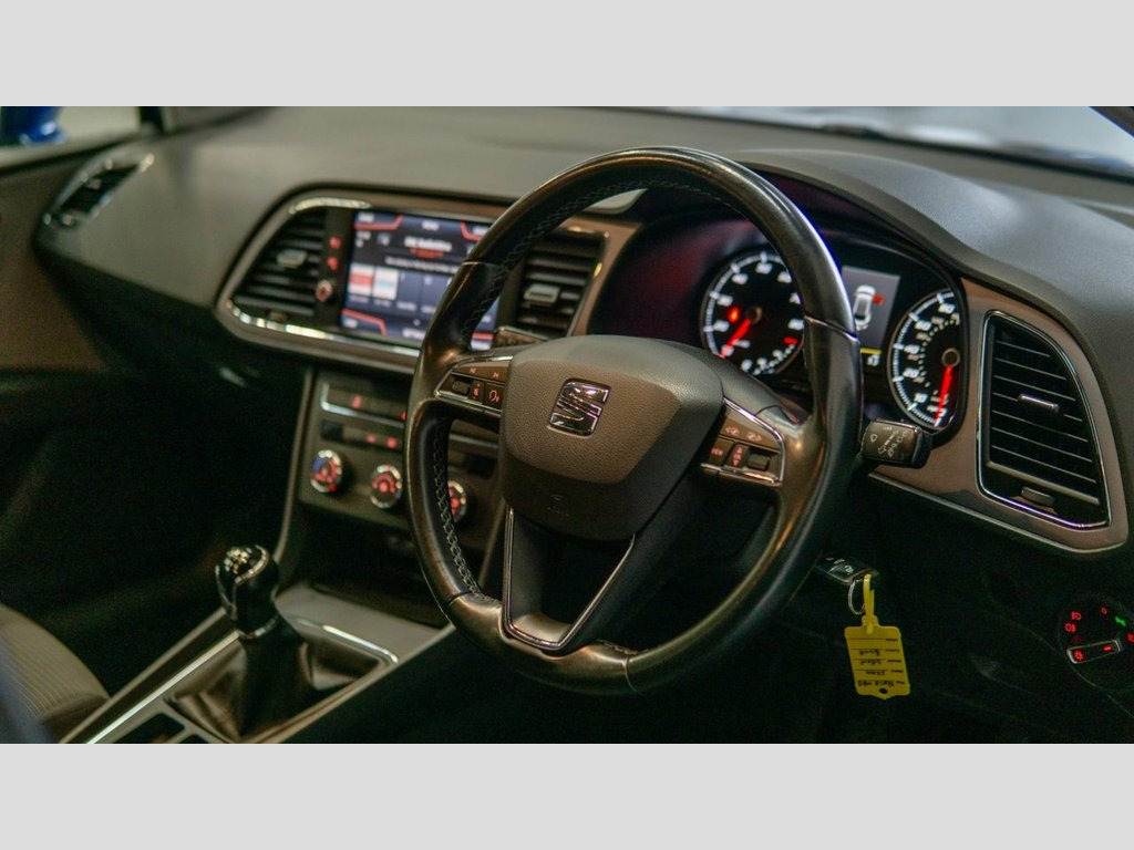 ** Vehicle Reg - HX18 WBJ ** TIMING BELT & WATER PUMP REPLACED @ 64K MILES! ** FULL SERVICE HISTORY ** This Blue SEAT Leon TSI SE Dynamic Technology boasts a full service history and an MOT valid until February 2027, offering excellent peace of mind. Powered by an efficient 1.2 litre Euro 6 compliant petrol engine, this model boasts the SE Dynamic Technology trim. It comes equipped with a user friendly Navigation System and Media System Plus, featuring Bluetooth connectivity for seamless audio streaming and handsfree calls. For added convenience, Automatic Head/ Driving Lights. The cabin is kept comfortable in all conditions thanks to its air conditioning system. This SEAT Leon stands out with its impressive fuel economy, achieving up to 57 miles per gallon, which indicates it is more economical than many similar vehicles. Furthermore, its low insurance group rating suggests that running costs will be lower compared to other cars in its class. The vehicle also benefits from low CO2 emissions, highlighting its environmentally conscious design and potentially lower tax implications. Contact us now to arrange your test drive viewing, or book your appointment directly on our website 24/7! SEAT Full Link Smartphone Integration - , Mediterranean Blue, 12V Power Supply in Centre Console, 17in Alloy Wheels - Dynamic 30-3, 2 Boot Storage Net - Left and Right, 7 Airbags, ABS - Anti-Lock Braking System - TCS - T, Active Front Head Restraints and 3 Rear , Air Conditioning, Body-Coloured Door Handles, Body-Coloured Door Mirrors with Integrat, Chrome Loading Sill, Comfort Suspension, Dark Tinted Rear Windows, Driver and Passenger Seat Height Adjustm, Driver and Passenger Sunvisor with Cover, Drivers Seat Lumbar Adjustment, ESC - Electronic Stability Control and T, Electric Parking Brake Including Autohol, Electrically Adjustable and Heated Door , Electro-Mechanical Power Steering, Elec