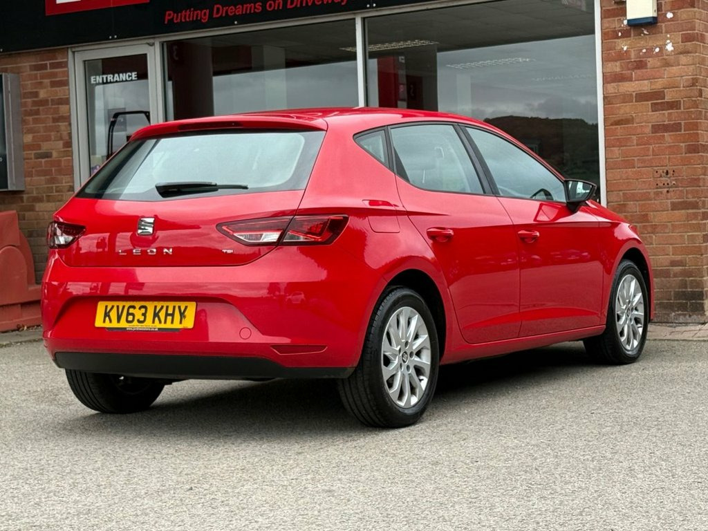 This SEAT Leon TSI SE from 2014 offers exceptional value with its low mileage of just 77,800 miles and boasts a full service history and a clear vehicle history check, having had only two owners. This well maintained 1.2 litre petrol model comes with a comprehensive SE trim, featuring a user friendly Navigation System, Bluetooth audio streaming for your music and an integrated Bluetooth handsfree system for safe calls on the go. You can also enjoy a comfortable driving experience thanks to the fitted Air Conditioning. This Leon stands out with its impressive fuel economy, achieving a remarkable 58 miles per gallon, which is better than many similar vehicles. Its low CO2 emissions also contribute to its cost effectiveness. For practicality, you'll appreciate the large boot space, perfect for shopping or luggage. Performance is also a strong point, with a brisk 0 to 62 miles per hour acceleration time of just 10.2 seconds, demonstrating a good balance of efficiency and responsiveness. Monstant Red, Navigation System, 12V Power Supply in Centre Console - Fro, 16in Alloy Wheels - Design, 3.5in Monochrome Drivers Display, AUX-In Port, Active Front Head Restraints, Air Conditioning, Airbags - Curtain, Airbags - Driver, Airbags - Front Passenger, Alarm - Perimeter Tow Away Protection, Ambient Spot Lighting and Footwell Illum, Anti-Lock Braking System - ABS, Armrest - Front with Storage Compartment, Automatic Post-Collision Braking System, Bluetooth Audio Streaming, Body-Coloured Door Handles, Child Locks on Rear Doors, Comfort Suspension, Cruise Control, Cupholders - Front x2, Daytime Running Lights - Halogen, Deadlocks, Door Mirrors - with Integrated LED Indic, Drivers Knee A