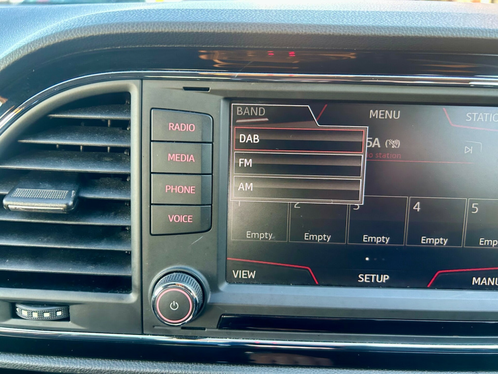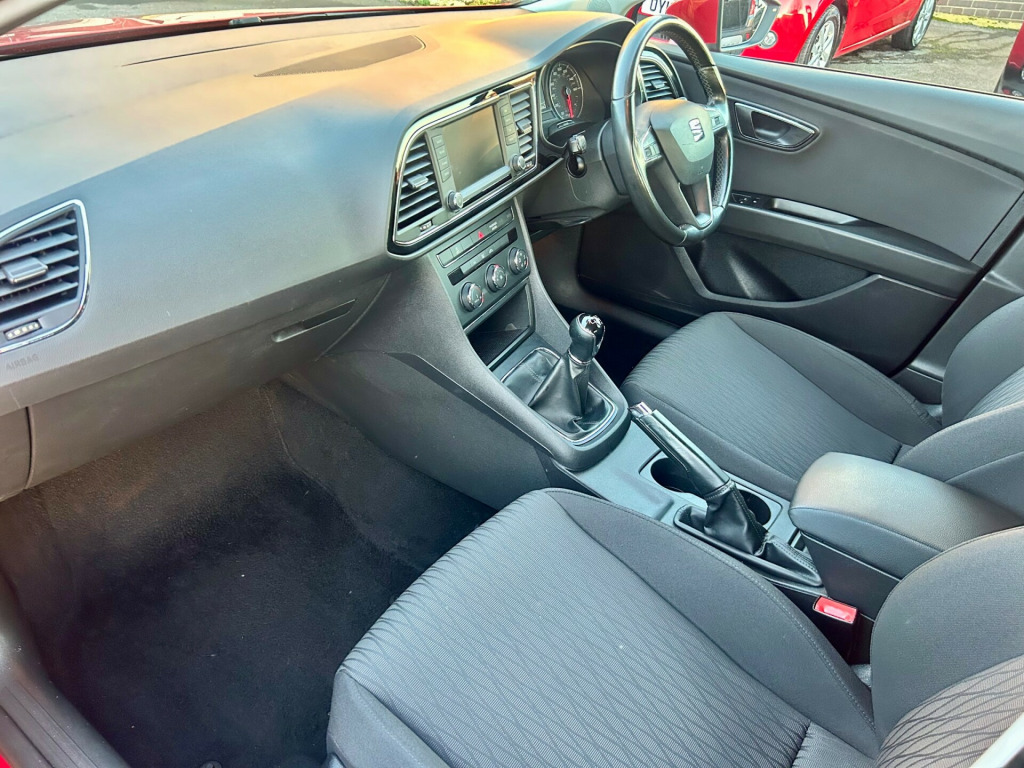 SAT NAV, DAB RADIO, BLUETOOTH, 2 KEYS.This 2015 SEAT Leon 1.2 TSI SE Hatchback has covered 109,000 miles and is powered by a petrol engine, making it ULEZ compliant, with MOT expiry in February 2026. This 5-door, 5-seater hatchback comes with features such as 12 Volt Power Supply in Centre Console, 3.5in Drivers Display, Anti-Theft Roof Antenna, Bluetooth Phone Connection, and Media System Colour, providing convenience and entertainment for all passengers. With its Euro 6 (s/s) (110 ps) manual transmission, this vehicle offers a smooth and efficient driving experience. Ideal for families or individuals seeking a reliable and spacious vehicle, this SEAT Leon ensures both practicality and comfort for all. volt power supply in centre console, 3.5in drivers display, anti-theft roof antenna, bluetooth phone connection, media system colour, six speakers, 16in alloy wheels - design, body-coloured door handles, body-coloured door mirrors with integrated led indicators, electric windows - front with one-touch and anti-squeeze, electric windows - rear with one touch and anti-squeeze, electrically adjustable and heated door mirrors, emergency tyre repair kit, front grille frame - chrome, gloss black pillars, locking wheel bolts, seat logo tailgate release, tinted windows, abs - anti-lock braking system and tcs traction control system with de-activation, alarm - perimeter and interior monitoring with back-up horn and tow-away protection, automatic warning lights, child locks on rear doors, driver and front passenger airbags, drivers knee airbag, esc - electronic stability control with eba - emergency brake assist, electronic engine immobiliser, front assist, front passenger airbag de-activation, front side airbags, hill hold control, isofix points in outer rear seats with top tether anchorage points, multi-collision braking system, rear wash - wipe, remote central locking with deadlocks, seatbelt reminder - front, three-point seat belts, two curtain airbags, two remote keys with window open-close and boot opening functionality, visible vin in windscreen, active front head restraints, additional heating-ventilation outlet in rear centre console, air conditioning, ambient spot lighting and footwell illumination, cargo rings in the boot, chrome interior dashboard detailing, chrome interior decorative mouldings, cupholders - front centre console x2, driver and passenger sunvisor with covered and illuminated mirrors, drivers seat lumbar adjustment, dust and pollen filter, front armrest - height and reach adjustable with storage compartment, front comfort seats, front courtesy light with front and rear reading lights, front seat back storage pockets, fuel filler flap linked to central locking, head restraints - height adjustable front, head restraints - height adjustable rear x3, height adjustable passenger seat, height and reach adjustable steering wheel, height-adjustable drivers seat, illuminated boot, instrument lighting with brightness control, leather handbrake, leather steering wheel and gear knob, rear courtesy light with rear reading lights, rear fog light, split folding rear seats - 60-40, comfort suspension, cruise control, electro-mechanical power steering - speed-sensitive, electronic differential lock system - xds, gearshift indicator, low fuel warning light, outside temperature gauge, rpm counter, trip computer, tyre pressure monitoring system, daytime running lights - halogen, front fog lights with cornering function, headlights - coming home function, lights left on warning buzzer, twin-bulb front halogen headlights with electrical adjustment