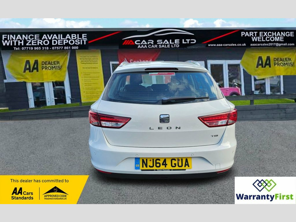 **AAA CAR SALES DARLINGTON LTD HAVE THE PLEASURE TO PRESENT THIS SEAT LEON 1.2 TSI SE Sport Tourer 5dr Petrol Manual Euro 5 (s/s) (105 ps) IN SPECIAL SOLID WHITE PAINTWORK..SERVICE HISTORY =9K, 18K, 28K, 37K, 44K, 54K, 62K, 66K, 71K, 78K, 85K, 91K AND A SERVICE BY OUR TEAM AT 97K....2 KEYS +12 MONTHS AA COVER, 2 KEYS, ALL OUR CARS GO THROUGH 72 POINT INSPECTION,ALL OF OUR CARS COME WITH 12 MONTHS AA BREAKDOWN COVER, FRESH MOT WITHOUT ADVISORIES,INTERIM SERVICE ** HPI CHECKED VIA EXPERIAN,3 MONTHS WARRANTY WITH THE OPTION TO UPGRADE **AUTOTRADER CUSTOMER SERVICE AWARD 2019,2020,2021, 2022, 2023 & 2024 YEAR ON YEAR***, WE ARE OPEN 7 DAYS A WEEK FOR YOUR CONVIENIENCE,CALL 01325 511665 OR EMAIL US AT [email protected] or visit our website www.aaa-carsales.co.uk,YOU CAN BUY WITH FULL CONFIDENCE FROM AAA CARS CHECK OUR AUTOTRADER REVIEWS FOR FULL PEACE OF MIND, White, 12V Power Supply in Centre Console - Fro, 12V Power Supply in Luggage Compartment, 16in Alloy Wheels - Design, 3.5in Monochrome Drivers Display, AUX-In Port, Active Front Head Restraints, Air Conditioning, Airbags - Curtain, Airbags - Driver, Airbags - Front Passenger, Alarm - Perimeter Tow Away Protection, Ambient Spot Lighting and Footwell Illum, Anti-Lock Braking System - ABS, Armrest - Front with Storage Compartment, Armrest - Rear, Automatic Post-Collision Braking System, Bluetooth Audio Streaming, Body-Coloured Door Handles, Child Locks on Rear Doors, Chrome Loading Sill, Comfort Suspension, Cruise Control, Cupholders - Front x2, Daytime Running Lights - Halogen, Deadlocks, Door