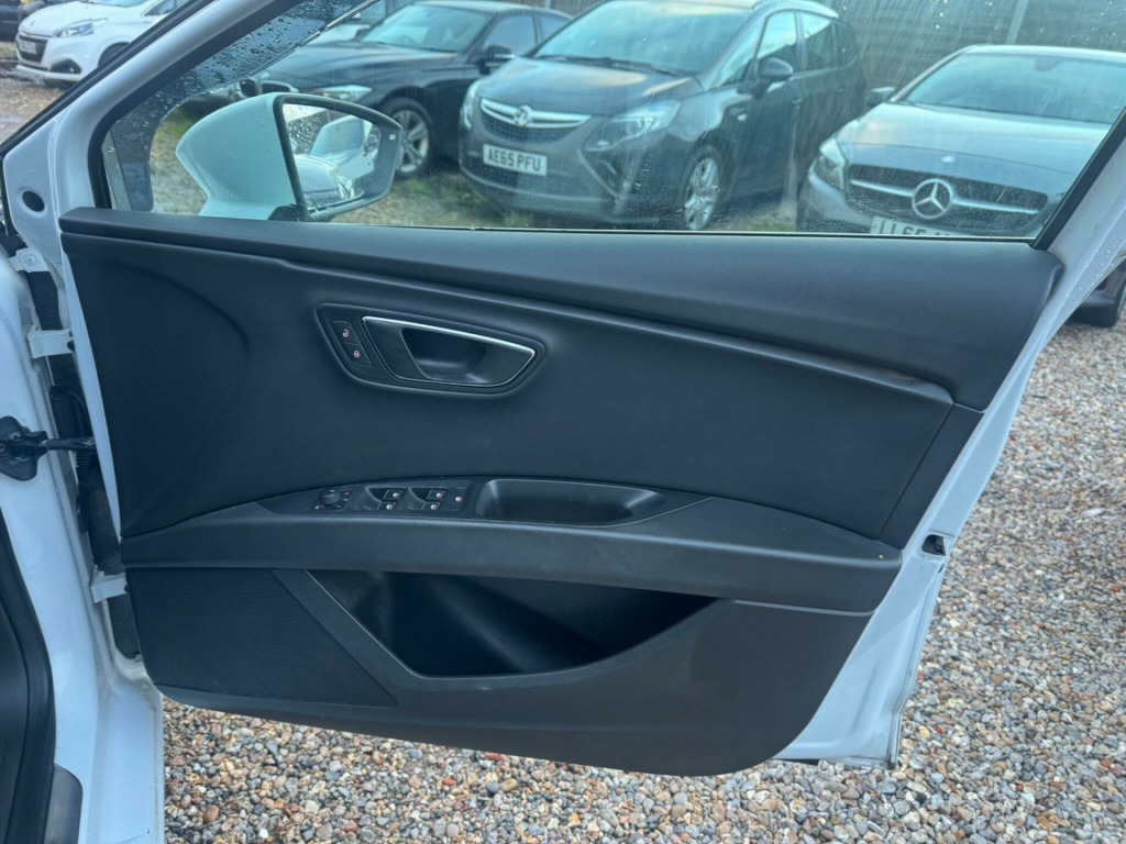 The SEAT Leon is a 2016 model, boasting a 1.4L Petrol Engine and a Euro 6 emission class. This vehicle has a clear vehicle history check, giving you peace of mind when purchasing. The FR trim level adds a sporty touch to the Leon, while the EcoTSI variant ensures a more efficient drive. With a low mileage of 65,860 miles for its age, this car has been well looked after. The FR trim comes with a range of desirable features, including steering wheel-mounted gearshift paddles, rear parking sensors with parking assistance, dual zone climate control, a colour media system with Bluetooth connectivity, and Bluetooth phone connection.The SEAT Leon is a great choice for those seeking a fun and efficient drive. Its 1.4L Petrol Engine accelerates from 0-62mph in just 8.0 seconds, making it a great option for those who enjoy a spirited drive. The Leon also boasts a large boot space, perfect for families or those who need to transport bulky items. One of the standout features of this car is its impressive fuel economy, reaching up to 58mpg. This indicates that the SEAT Leon is a more economical choice compared to similar vehicles on the market. Whether you're looking for a reliable daily driver or a fun weekend car, the SEAT Leon is definitely worth considering. volt power supply in centre console, 17in alloy wheels - dynamic, 3.5in drivers display, abs - anti-lock braking system and tcs traction control system with de-activation, active front head restraints, additional heating-ventilation outlet in rear centre console, alarm - perimeter and interior monitoring with back-up horn and tow-away protection, aluminium front door sill trims with fr logo, ambient spot lighting and footwell illumination, anti-theft roof antenna, automatic warning lights, bluetooth phone connection, body-coloured door handles, body-coloured door mirrors with integrated led indicators, bumpers - exclusive fr front and rear, cargo rings in the boot, child locks on rear doors, chrome interior dashboard detailing, chrome interior decorative mouldings, cruise control, cupholders - front centre console x2, dark tinted rear windows, daytime running lights - halogen, driver and front passenger airbags, driver and passenger sunvisor with covered and illuminated mirrors, drivers knee airbag, drivers seat lumbar adjustment, dual zone climate control, dust and pollen filter, esc - electronic stability control with eba - emergency brake assist, electric windows - front with one-touch and anti-squeeze, electric windows - rear with one touch and anti-squeeze, electrically folding door mirrors, electro-mechanical power steering - speed-sensitive, electronic differential lock system - xds, electronic engine immobiliser, emergency tyre repair kit, exhaust pipe - twin, front armrest - height and reach adjustable with storage compartment, front assist, front courtesy light with front and rear reading lights, front fog lights with cornering function, front grille frame - chrome, front passenger airbag de-activation, front seat back storage pockets, front side airbags, fuel filler flap linked to central locking, gearshift indicator, gloss black pillars, head restraints - height adjustable front, head restraints - height adjustable rear x3, headlights - coming home function, height adjustable passenger seat, height and reach adjustable steering wheel, height-adjustable drivers seat, hill hold control, isofix points in outer rear seats with top tether anchorage points, illuminated boot, instrument lighting with brightness control, interior ambient lighting - door panel, led taillights, leather gear knob, leather handbrake, lights left on warning buzzer, locking wheel bolts, low fuel warning light, media system colour, multi-collision braking system, outside temperature gauge, passenger door mirror with kerb function when reversing, rpm counter, rear courtesy light with rear reading lights, rear fog light, rear parking sensors, rear wash - wipe, remote central locking with deadlocks, remote door mirror folding function, seat drive profile with four different modes - eco-normal-sport-individual, seat logo tailgate release, seatbelt reminder - front, seats - passenger lumbar adjustment, seats - sports, speakers x8, split folding rear seats - 60-40, sports suspension, steering wheel - flat-bottomed perforated leather with red stitching and fr logo, steering wheel-mounted gearshift paddles, three-point seat belts, tinted windows, trip computer, twin-bulb front halogen headlights with electrical adjustment, two curtain airbags, two remote keys with window open-close - door mirror folding and boot opening functionality, tyre pressure monitoring system, visible vin in windscreen