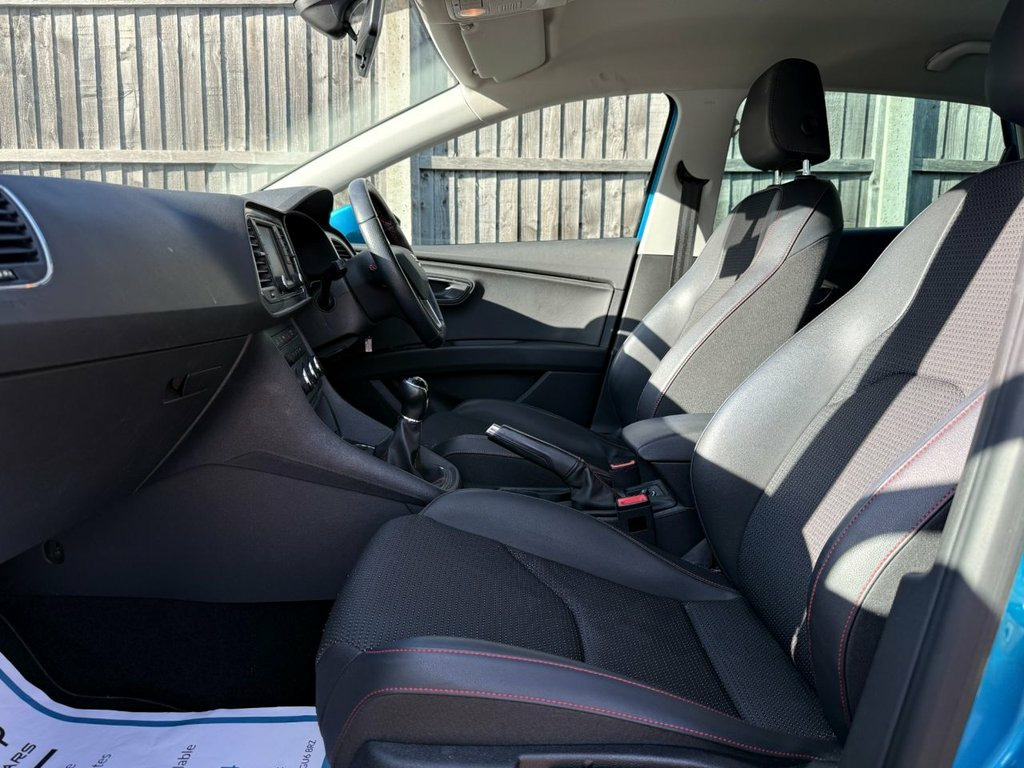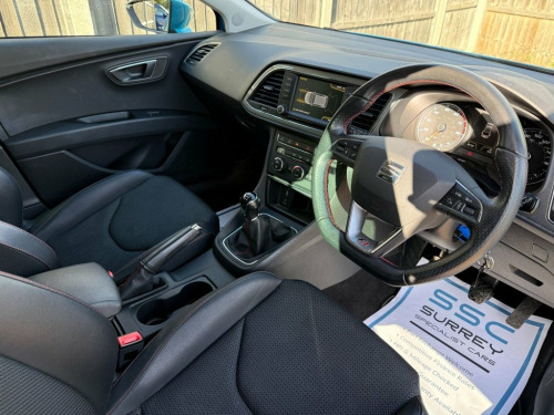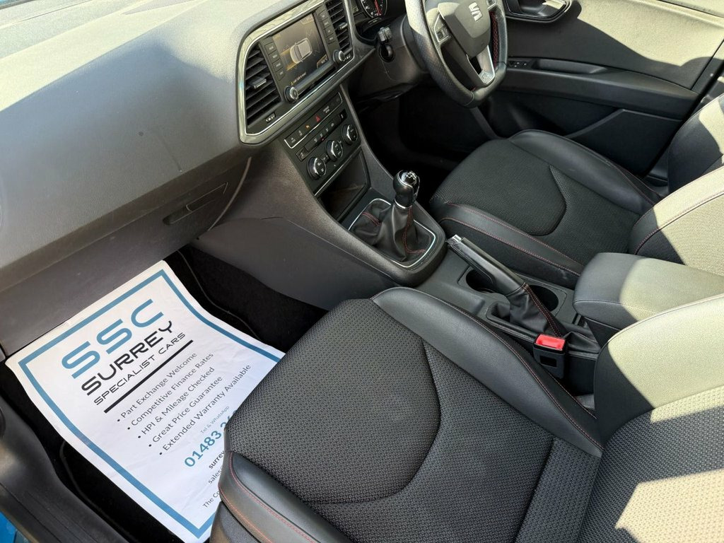 Surrey Specialist Cars are proud to present our lovely Seat Leon FR Technology Ecotsi. This amazing car comes with Full Service History from the Main Dealer, finished in stunning metallic blue with grey contrast interior. The car will come with Long MOT so it will be ready to go. The 1.4L Petrol engine offers superb economy at over 55 MPG on combined cycle. Features Include Multifunction Steering Wheel, Trip Computer, Satellite Navigation, Parking Sensors, Cruise Control, Stereo Control, Touch Screen, FM/DAB Radio, CD Player, SD Card, USB Input, AUX Input, Bluetooth Audio, Start/Stop System, Drive Mode, Dual Zone Climate Control, two Cup Holders, Electronic Hand Brake, Fog Lights, 12V Charging Socket, 6 Speed Manual Gearbox, 17 Inch Alloy Wheels and two Remote Control Keys to name a few. 12 Volt Power Supply in Centre Console, 17in Alloy Wheels - Dynamic, 3.5in Drivers Display, ABS - Anti-Lock Braking System and TCS T, Active Front Head Restraints, Additional Heating-Ventilation Outlet in, Alarm - Perimeter and Interior Monitorin, Aluminium Front Door Sill Trims with FR , Ambient Spot Lighting and Footwell Illum, Anti-Theft Roof Antenna, Automatic Warning Lights, Bluetooth Phone Connection, Body-Coloured Door Handles, Body-Coloured Door Mirrors with Integrat, Bumpers - Exclusive FR Front and Rear, Cargo Rings in the Boot, Child Locks on Rear Doors, Chrome Interior Dashboard Detailing, Chrome Interior Decorative Mouldings, Cruise Control, Cupholders - Front Centre Console x2,