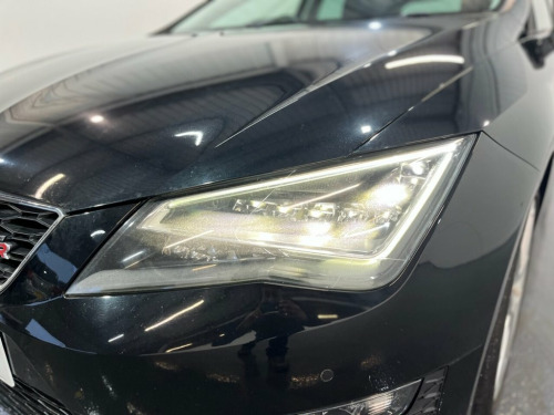 The SEAT Leon 1.4 EcoTSI FR Hatchback is a sporty and practical five-door, supplied with two keys and finished with FR styling that gives it a sharp, dynamic look. Powered by a responsive 1.4 EcoTSI petrol engine producing 150 PS and paired with a smooth manual gearbox, it offers an excellent balance of performance and efficiency while meeting Euro 6 standards. This vehicle comes with a strong level of specification, including alloy wheels, front and rear parking sensors, folding heated door mirrors and automatic headlights. Inside, the half-leather interior creates a premium feel, complemented by satellite navigation, DAB radio, Bluetooth connectivity, climate control and cruise control, making it comfortable and easy to live with every day. A great choice for anyone looking for a well-equipped hatchback that combines sporty design, modern technology and everyday usability. 12 Volt Power Supply in Centre Console, 17in Alloy Wheels - Dynamic, 3.5in Drivers Display, ABS - Anti-Lock Braking System and TCS T, Active Front Head Restraints, Additional Heating-Ventilation Outlet in, Alarm - Perimeter and Interior Monitorin, Aluminium Front Door Sill Trims with FR , Ambient Spot Lighting and Footwell Illum, Anti-Theft Roof Antenna, Automatic Warning Lights, Bluetooth Phone Connection, Body-Coloured Door Handles, Body-Coloured Door Mirrors with Integrat, Bumpers - Exclusive FR Front and Rear, Cargo Rings in the Boot, Child Locks on Rear Doors, Chrome Interior Dashboard Detailing, Chrome Interior Decorative Mouldings, Cruise Control, Cupholders - Front Centre Console x2,
