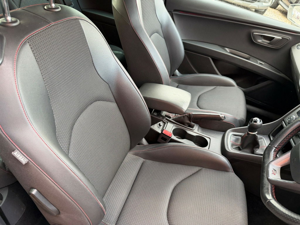 This 2015 SEAT Leon 1.4 EcoTSI FR Sport Coupe is a stylish hatchback with a petrol engine and a manual transmission. It has a mileage of 125000 miles and comes with 5 seats, 3 doors, and is ULEZ compliant, making it suitable for driving in ultra-low emission zones. The MOT is valid until 03/08/2026, providing peace of mind for the future. This car is equipped with features such as a 12 Volt Power Supply in Centre Console, 3.5in Drivers Display, Anti-Theft Roof Antenna, Bluetooth Phone Connection, and Media System Colour, ensuring a comfortable and connected driving experience. With its Euro 6 (s/s) engine producing 150 ps, this SEAT Leon offers both performance and efficiency, making it an attractive option for anyone in the market for a reliable and practical vehicle , RAC warranty , px and car , van , delivery available, give us a call today to see how we can help get you into your new car volt power supply in centre console, 3.5in drivers display, anti-theft roof antenna, bluetooth phone connection, media system colour, speakers x8, 17in alloy wheels - dynamic, body-coloured door handles, body-coloured door mirrors with integrated led indicators, bumpers - exclusive fr front and rear, dark tinted rear windows, electric windows - front with one-touch and anti-squeeze, electrically folding door mirrors, emergency tyre repair kit, exhaust pipe - twin, front grille frame - chrome, gloss black pillars, locking wheel bolts, passenger door mirror with kerb function when reversing, seat logo tailgate release, tinted windows, abs - anti-lock braking system and tcs traction control system with de-activation, alarm - perimeter and interior monitoring with back-up horn and tow-away protection, automatic warning lights, driver and front passenger airbags, drivers knee airbag, esc - electronic stability control with eba - emergency brake assist, electronic engine immobiliser, front assist, front passenger airbag de-activation, front side airbags, hill hold control, isofix points in outer rear seats with top tether anchorage points, multi-collision braking system, rear wash - wipe, remote central locking with deadlocks, seatbelt reminder - front, three-point seat belts, two curtain airbags, two remote keys with window open-close - door mirror folding and boot opening functionality, visible vin in windscreen, active front head restraints, additional heating-ventilation outlet in rear centre console, aluminium front door sill trims with fr logo, ambient spot lighting and footwell illumination, cargo rings in the boot, chrome interior dashboard detailing, chrome interior decorative mouldings, cupholders - front centre console x2, driver and passenger sunvisor with covered and illuminated mirrors, drivers seat lumbar adjustment, dual zone climate control, dust and pollen filter, easy entry front seats, front armrest - height and reach adjustable with storage compartment, front courtesy light with front and rear reading lights, front seat back storage pockets, fuel filler flap linked to central locking, head restraints - height adjustable front, head restraints - height adjustable rear x3, height adjustable passenger seat, height and reach adjustable steering wheel, height-adjustable drivers seat, illuminated boot, instrument lighting with brightness control, interior ambient lighting - door panel, leather gear knob, leather handbrake, rear courtesy light with rear reading lights, rear fog light, remote door mirror folding function, seats - passenger lumbar adjustment, seats - sports, split folding rear seats - 60-40, steering wheel - flat-bottomed perforated leather with red stitching and fr logo, cruise control, electro-mechanical power steering - speed-sensitive, electronic differential lock system - xds, gearshift indicator, low fuel warning light, outside temperature gauge, rpm counter, rear parking sensors, seat drive profile with four different modes - eco-normal-sport-individual, sports suspension, trip computer, tyre pressure monitoring system, daytime running lights - halogen, front fog lights with cornering function, headlights - coming home function, led taillights, lights left on warning buzzer, twin-bulb front halogen headlights with electrical adjustment