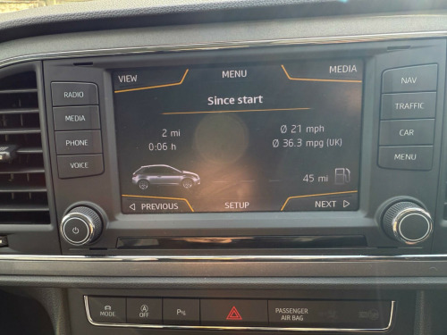 This 2016 SEAT Leon EcoTSI FR is a superb example, having been owned by only two previous keepers. It boasts a responsive 1.4 litre petrol engine and meets Euro 6 emissions standards. Inside, you'll find the FR trim offering a Media System Colour with Bluetooth connectivity, allowing for seamless music streaming and handsfree calls. Comfort is assured with Dual Zone Climate Control, and parking is made easier thanks to the Rear Parking Sensors.This Leon EcoTSI FR offers impressive performance, accelerating from 0 to 62mph in just 7.9 seconds, which is quicker than many similar vehicles. Its fuel economy is a standout feature, achieving an excellent 58 miles per gallon, demonstrating its efficiency. Furthermore, this model benefits from low CO2 emissions, making it an environmentally conscious choice. You'll also appreciate the generous boot space, providing ample room for luggage or shopping. This vehicle has some great feature including half leather heated seats, rear parking sensors, and more! This vehicle is with 2 keys, service history original hand books and HPI clear. Warranty options available, Bespoke Finance Packages can be arranged , Debit Cards and Bank Transfers accepted, Part Exchange Welcome. Call our office today for more information. We are located in Chalfont St Peter, approximately 5 minutes from junction 17 on the M25 and around 10 minutes from junction 1 on the M40. Collection from local train stations can be arranged. volt power supply in centre console, 17in alloy wheels - dynamic, 3.5in drivers display, abs - anti-lock braking system and tcs traction control system with de-activation, active front head restraints, additional heating-ventilation outlet in rear centre console, alarm - perimeter and interior monitoring with back-up horn and tow-away protection, aluminium front door sill trims with fr logo, ambient spot lighting and footwell illumination, anti-theft roof antenna, automatic warning lights, bluetooth phone connection, body-coloured door handles, body-coloured door mirrors with integrated led indicators, bumpers - exclusive fr front and rear, cargo rings in the boot, chrome interior dashboard detailing, chrome interior decorative mouldings, cruise control, cupholders - front centre console x2, dark tinted rear windows, daytime running lights - halogen, driver and front passenger airbags, driver and passenger sunvisor with covered and illuminated mirrors, drivers knee airbag, drivers seat lumbar adjustment, dual zone climate control, dust and pollen filter, esc - electronic stability control with eba - emergency brake assist, easy entry front seats, electric windows - front with one-touch and anti-squeeze, electrically folding door mirrors, electro-mechanical power steering - speed-sensitive, electronic differential lock system - xds, electronic engine immobiliser, emergency tyre repair kit, exhaust pipe - twin, front armrest - height and reach adjustable with storage compartment, front assist, front courtesy light with front and rear reading lights, front fog lights with cornering function, front grille frame - chrome, front passenger airbag de-activation, front seat back storage pockets, front side airbags, fuel filler flap linked to central locking, gearshift indicator, gloss black pillars, head restraints - height adjustable front, head restraints - height adjustable rear x3, headlights - coming home function, height adjustable passenger seat, height and reach adjustable steering wheel, height-adjustable drivers seat, hill hold control, isofix points in outer rear seats with top tether anchorage points, illuminated boot, instrument lighting with brightness control, interior ambient lighting - door panel, led taillights, leather gear knob, leather handbrake, lights left on warning buzzer, locking wheel bolts, low fuel warning light, media system colour, multi-collision braking system, outside temperature gauge, passenger door mirror with kerb function when reversing, rpm counter, rear courtesy light with rear reading lights, rear fog light, rear parking sensors, rear wash - wipe, remote central locking with deadlocks, remote door mirror folding function, seat drive profile with four different modes - eco-normal-sport-individual, seat logo tailgate release, seatbelt reminder - front, seats - passenger lumbar adjustment, seats - sports, speakers x8, split folding rear seats - 60-40, sports suspension, steering wheel - flat-bottomed perforated leather with red stitching and fr logo, three-point seat belts, tinted windows, trip computer, twin-bulb front halogen headlights with electrical adjustment, two curtain airbags, two remote keys with window open-close - door mirror folding and boot opening functionality, tyre pressure monitoring system, visible vin in windscreen