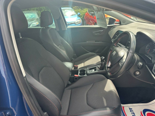 ABOVE AVERAGE MILES BUT FANTASTIC CONDITION and DRIVES PERFECT With only two previous owners, this 2017 SEAT Leon 1.4L EcoTSI FR Technology is a great choice. As part of the FR Technology trim, this petrol-powered vehicle is equipped with a range of features designed to enhance your driving experience. Enjoy the ease of parking with rear parking sensors, including parking assistance, and stay connected on the go with Full Link, which includes Android Auto and Apple CarPlay. The Media System Plus, complete with Bluetooth connectivity, ensures you're always in touch, while dual-zone climate control keeps you and your passengers comfortable. The integrated navigation system, also with Bluetooth, helps you find your way with ease.The SEAT Leon boasts a large boot space, making it more practical than similar vehicles in its class. In terms of fuel economy, this vehicle achieves around 58 mpg, which means fewer trips to the petrol station compared to other cars. Furthermore, acceleration from 0-62mph takes just 8.0 seconds, demonstrating that this vehicle offers a nippy and responsive driving experience.. 12V Power Supply in Centre Console, 17in Alloy Wheels - Dynamic, 3.5in Drivers Display, 7 Airbags, ABS - Anti-Lock Braking System - TCS - Traction Control System, Active Front Head Restraints and 3 Rear Head Restraints, Alarm - Perimeter and Interior Monitoring with Back-up Horn and Tow-Away Protection, Aluminium Front Door Sill Trims with FR Logo, Body-Coloured Door Handles, Body-Coloured Door Mirrors with Integrated LED Indicators, Boot Storage Net, Bumpers - Exclusive FR Front and Rear, Cargo Rings in the Boot, Cruise Control, Dark Tinted Rear Windows, Driver and Passenger Seat Height Adjustment, Driver and Passenger Sunvisor with Covered and Illuminated Mirrors, Drivers Seat Lumbar Adjustment, Dual Zone Climate Control, ESC - Electronic Stability Control and Tyre Pressure Warning Light Indicator, Electric Parking Brake Including Autohold Function, Electrically Folding Door Mirrors, Electro-Mechanical Power Steering, Electronic Differential Lock System - XDS, Emergency Tyre Repair Kit, Exhaust Pipe - Twin, Front Assist with Pedestrian Protection, Front Seat Back Storage Pockets, Front Sports Seats, Front and Rear Electric Windows, Fuel Filler Flap linked to Central Locking, Full LED Headlights, Full Link, Gearshift Indicator, Head Restraints - Height Adjustable Front, High Centre Console, High Gloss Black B and C Pillars, Hill Hold Control, ISOFIX Points in Outer Rear Seats with Top Tether Anchorage Points, Illuminated Glovebox, Instrument Lighting with Brightness Control, Interior Chrome Detailing, Leather Gear Knob, Lights Left On Warning Buzzer, Low Fuel Warning Light, Lower Suspension - 15mm, Media System Plus, Multi Coloured Ambient Lighting, Multi-Collision Braking System, Navigation System, Outside Temperature Gauge, RPM Counter, Radiator Grille Frame in Chrome, Radiator Grille in Black, Reading Lights Front and Rear with Ambient Spots - Boot Lights and Illuminated Foot Area, Rear Parking Sensors, Remote Central Locking with Deadlocks, SEAT Drive Profile, Seatbelt Reminder - Front, Seats - Passenger Lumbar Adjustment, Split Folding Rear Seats - 60-40, Sports Suspension, Steering Wheel - Flat-Bottomed Perforated Leather with Red Stitching and FR Logo, Storage Box Under Driver and Front Passenger Seat, Trip Computer, Two Remote Keys with Window Open-Close - Door Mirror Folding and Boot Opening Functionality.