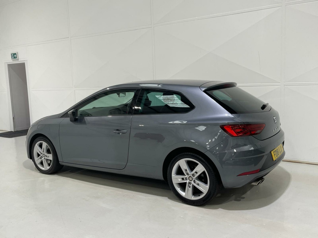 FINANCE & PART EXCHANGE AVAILABLE* - Only 2 registered keepers & 44,792 miles from new, SERVICE HISTORY, 2 KEYS - this SUPERB RARE SPORTY SEAT LEON FR-TECHNOLOGY SPORT AUTOMATIC COUPE is finished in stunning sports grey metallic & is complimented with contrasting 1/2 black leather sports trim and extends itself to the following additional features - SEAT FR Sports styling, on board satellite navigation system, dual zone climate control / automatic air conditioning, trip computer, cruise control, leather trimmed multi function steering wheel with paddle shift, rear park distance control, Bluetooth telephone prep, DAB digital radio, media input, Apple CarPlay / Android Auto / Mirror Link, voice command, start / stop, front assist with city emergency braking, privacy glass, lumbar support, electric folding & heated exterior mirrors, sports suspension, LED auto headlights, rain sensor, power assisted steering, abs, airbags, electric mirrors, electric windows, remote central locking, head restraints, SEAT 17'' sports alloy wheels, SEAT anti theft system. ***FINANCE AVAILABLE - subject to status. T&C's apply.***PART EXCHANGE AVAILABLE***ALL VEHICLES ARE HPI & NATIONAL MILEAGE REGISTER CHECKED***THE AA WARRANTY IS SUBJECT TO TERMS & CONDITIONS AND DOES NOT COVER VEHICLES THAT ARE BEING USED FOR TAXI, PRIVATE HIRE, CHAUFFEURING PURPOSES OR FOR REWARD.***Please note, that the specifications/components/features etc. are generic to that vehicle of the type advertised but may not be included in the specific vehicle that is for sale. It is for the intended purchaser to satisfy themselves of the presence or absence of any specifications/components/features before sale. Please ask if you are uncertain of anything and we will see if we can assist.. 12V Power Supply in Centre Console, 17in Alloy Wheels - Dynamic 30-2, 7 Airbags, ABS - Anti-Lock Braking System - TCS - Traction Control System, Active Front Head Restraints and 3 Rear Head Restraints, Aluminium Front Door Sill Trims with FR Logo, Body-Coloured Door Handles, Body-Coloured Door Mirrors with Integrated LED Indicators, Boot Storage Net, Bumpers - Exclusive FR Front and Rear, Cargo Rings in the Boot, Cruise Control, Dark Tinted Rear Windows, Driver and Passenger Seat Height Adjustment, Driver and Passenger Sunvisor with Covered and Illuminated Mirrors, Drivers Seat Lumbar Adjustment, Dual Zone Climate Control, ESC - Electronic Stability Control and Tyre Pressure Warning Light Indicator, Easy Entry Front Seats, Electric Front Windows, Electric Parking Brake Including Autohold Function, Electrically Folding Door Mirrors, Electro-Mechanical Power Steering, Electronic Differential Lock System - XDS, Emergency Tyre Repair Kit, Front Assist with City Emergency Braking, Front Seat Back Storage Pockets, Front Sports Seats, Fuel Filler Flap linked to Central Locking, Full LED Headlights, Gearshift Indicator, Head Restraints - Height Adjustable Front, High Centre Console, High Gloss Black B and C Pillars, Hill Hold Control, ISOFIX Points in Outer Rear Seats with Top Tether Anchorage Points, Illuminated Glovebox, Instrument Lighting with Brightness Control, Interior Chrome Detailing, Leather Gear Knob, Lights Left On Warning Buzzer, Low Fuel Warning Light, Lower Suspension - 15mm, Media System Plus, Multi Coloured Ambient Lighting, Multi-Collision Braking System, Navigation System, Outside Temperature Gauge, RPM Counter, Radiator Grille Frame in Chrome, Radiator Grille in Black, Reading Lights Front and Rear with Ambient Spots - Boot Lights and Illuminated Foot Area, Rear Parking Sensors, Remote Central Locking with Deadlocks, SEAT Drive Profile, SEAT Full Link Smartphone Integration - Mirror Link - Apple CarPlay - Google Android Auto, Seatbelt Reminder - Front, Seats - Passenger Lumbar Adjustment, Split Folding Rear Seats - 60-40, Sports Suspension, Steering Wheel - Flat-Bottomed Perforated Leather with Red Stitching and FR Logo, Steering Wheel-Mounted Gearshift Paddles, Storage Box Under Drivers Seat, Trip Computer, Two Remote Keys with Window Open-Close - Door Mirror Folding and Boot Opening Functionality, Visual Twin Exhaust Pipes.