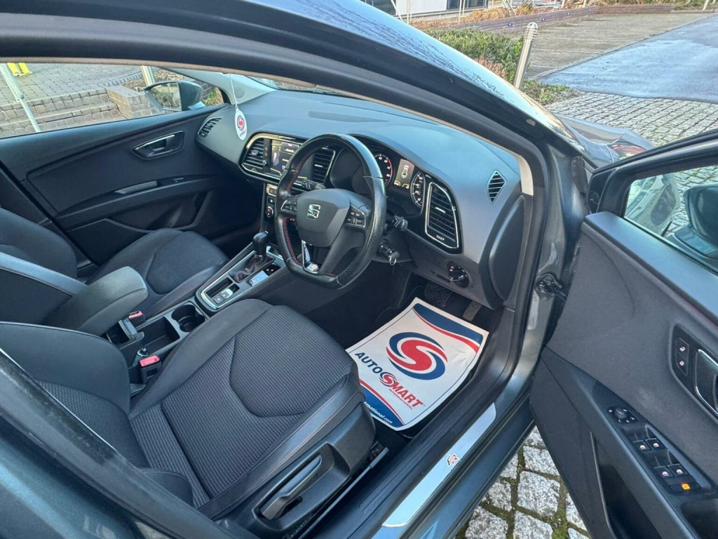 This 2018 SEAT Leon 1.4 EcoTSI FR Technology ST DSG Euro 6 (s/s) 5dr Estate is currently available for £10,295 in Swindon Wiltshire with Petrol engine and Auto Clutch Manual gearbox. For more information or to arrange a viewing, click here to send us an email using form below.
