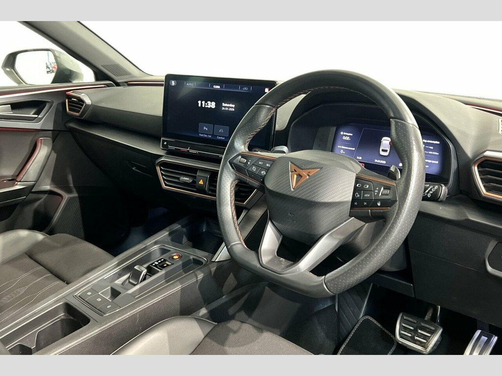' 12V Power Supply in Centre Console, 19in Alloy Wheels - Machined - Black and, ABS - Anti-Lock Braking System, Adaptive Cruise Control with Follow-to-S, Anti-Theft Alarm System - Interior Monit, Auto Dimming Rear View Mirror, Brake Control System - ESC and Brake Boo, Breakdown Kit, CUPRA Black Brake Calipers, CUPRA Connect - Safety - Service - Remot, CUPRA Drive Profile, CUPRA Dynamic and Comfort Pack, CUPRA Leather Flat Bottomed - Heated - P, CUPRA Sports Bumpers, Charging Cable - Mode 2 - 10amp, Charging Cable - Mode 3 - 16amp, Chrome and Copper Detailing, Cupra Sport Pedals, Dark Tinted Rear Windows, Digital Cockpit, Door Mirrors Electrically Adjustable - F, Driver and Front Passenger Airb