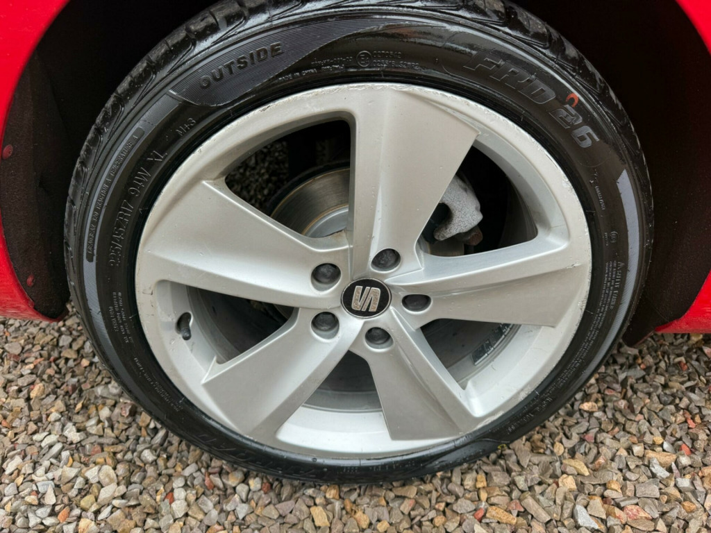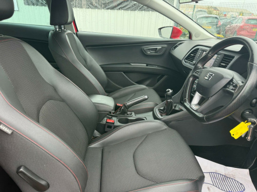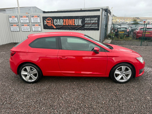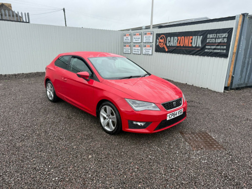 SEAT Leon 1.4 TSI ACT FR Sport Coupe Euro 6 (s/s) 3dr – CP64VSG2015 (64) | 84,515 miles | Petrol | Manual | Red | 4 Owners | ULEZ Compliant4 new tyresNew rear brake disks and pads A stylish and sporty hatchback, this SEAT Leon FR Coupe offers sharp looks, agile handling, and low running costs thanks to its 1.4 TSI ACT petrol engine with cylinder-on-demand technology. Finished in vibrant red, it delivers hot-hatch style with everyday practicality.✅ Vehicle Highlights:1.4 TSI ACT Petrol – 150PS with cylinder deactivation for efficiency6-speed manual gearboxEuro 6 – ULEZ CompliantFR styling – sport bumpers, suspension & trimRed metallic paint3-door Sport Coupe body style84,515 miles4 Owners???? FR Specification:SEAT Media System – Sat Nav, Bluetooth, DAB, USBDual-zone climate controlFlat-bottom FR steering wheelSports seats with red stitchingLED headlights & DRLsFront & rear parking sensors17” FR alloy wheelsCruise control???? Peace of Mind:Fresh MOT – no advisoriesOil & filter service just completed3 Month / 3,000 Mile Nationwide Warranty IncludedHPI Clear???? Why Buy From Us?Nationwide Delivery AvailableFlexible Finance PackagesPart Exchange Welcome???? Carzone UK – Newport, NP20 2JR???? 01633 212398 | ???? 07375 840676 (WhatsApp available for walkarounds)???? www.carzoneuk.co.uk⚡ Sporty Coupe Style | Efficient 1.4 TSI ACT | FR Trim | ULEZ Friendly. 12V Power Supply in Centre Console - Front, 17in Alloy Wheels - Dynamic, 3.5in Monochrome Drivers Display, AUX-In Port, Active Front Head Restraints, Airbags - Curtain, Airbags - Driver, Airbags - Front Passenger, Alarm - Perimeter Tow Away Protection, Ambient Spot Lighting and Footwell Illumination, Anti-Lock Braking System - ABS, Armrest - Front with Storage Compartment, Automatic Post-Collision Braking System, Bluetooth Audio Streaming, Body-Coloured Door Handles, Bumpers - Exclusive FR Front and Rear, Child Locks on Rear Doors, Chrome Interior Decorative Mouldings, Cruise Control, Cupholders - Front x2, Dark Tinted Rear Windows, Daytime Running Lights - Halogen, Deadlocks, Door Mirrors - Electrically Folding with Reverse Activated Kerb-View Function, Door Mirrors - with Integrated LED Indicators, Door Sill Trim - Aluminium, Drivers Knee Airbag, Dual Zone Climate Control, Dust and Pollen Filter, EBA - Electronic Brake Assist, Easy Connect System, Easy Entry Front Seats, Electric Windows - Front with One-Touch and Anti-Squeeze, Electro-Mechanical Power Steering - Speed-Sensitive, Electronic Differential Lock System - XDS, Electronic Stability Control - ESC, Emergency Tyre Repair Kit, Exhaust Pipe - Twin, Exterior Temperature Indicator, FM-AM Radio, Front Fog Lights with Cornering Function, Front Parking Sensors, Front Passenger Airbag De-Activation, Front Side Airbags, Gearshift Indicator, Gloss Black Pillars, Head Restraints - Height Adjustable Front, Head Restraints - Height Adjustable Rear x3, Headlights - Electric Range Adjustment, Headlights - Twin Halogen, Height Adjustable Passenger Seat, Height and Reach Adjustable Steering Wheel, Height-Adjustable Drivers Seat, Hill Hold Control, ISOFIX Points with Top Tether on Rear Seats, Illuminated Boot, Illuminated Glovebox, Inserts - Dash - Chrome Detailing, Instrument Lighting with Brightness Control, Integrated Bluetooth Handsfree System, LED Taillights, Leather Gear Knob, Leather Handbrake, Leatherette Bolsters, Lights Left On Warning Buzzer, Locking Wheel Bolts, Luggage Compartment - Rings, MP3 Compatible CD Player, Parking Sensors - Front and Rear with Optical Parking System, Passenger Door Mirror with Kerb Function when Reversing, Radiator Grille - Chrome Centre Surround, Reading Light - Front and Rear, Rear Parking Sensors, Rear Wiper, Remote Central Locking, Remote Key - Folding x2 with Remote Window Functionality, SEAT Drive Profile - Sport-Comfort-Eco-Individual, SEAT Logo Tailgate Release, Seatbelt Reminder - Front, Seats - Front Lumbar Adjustment, Seats - Pockets on Front Backrest, Seats - Split Folding Rear, Seats - Sports, Speakers x8, Sports Suspension, Steering Wheel - Flat-Bottomed Perforated Leather with Red Stitching and FR Logo, Steering Wheel Mounted Audio and Phone Controls, Sunvisors with Illuminated Vanity Mirrors, Sunvisors with Vanity Mirrors, TCS - Traction Control System, Touch Screen - Colour 5in, Trip Computer, Tyre Pressure Monitoring System, USB Port, Voice Control - In Car Entertaintment, Navigation System, Techny Cloth - Black. Part service history
