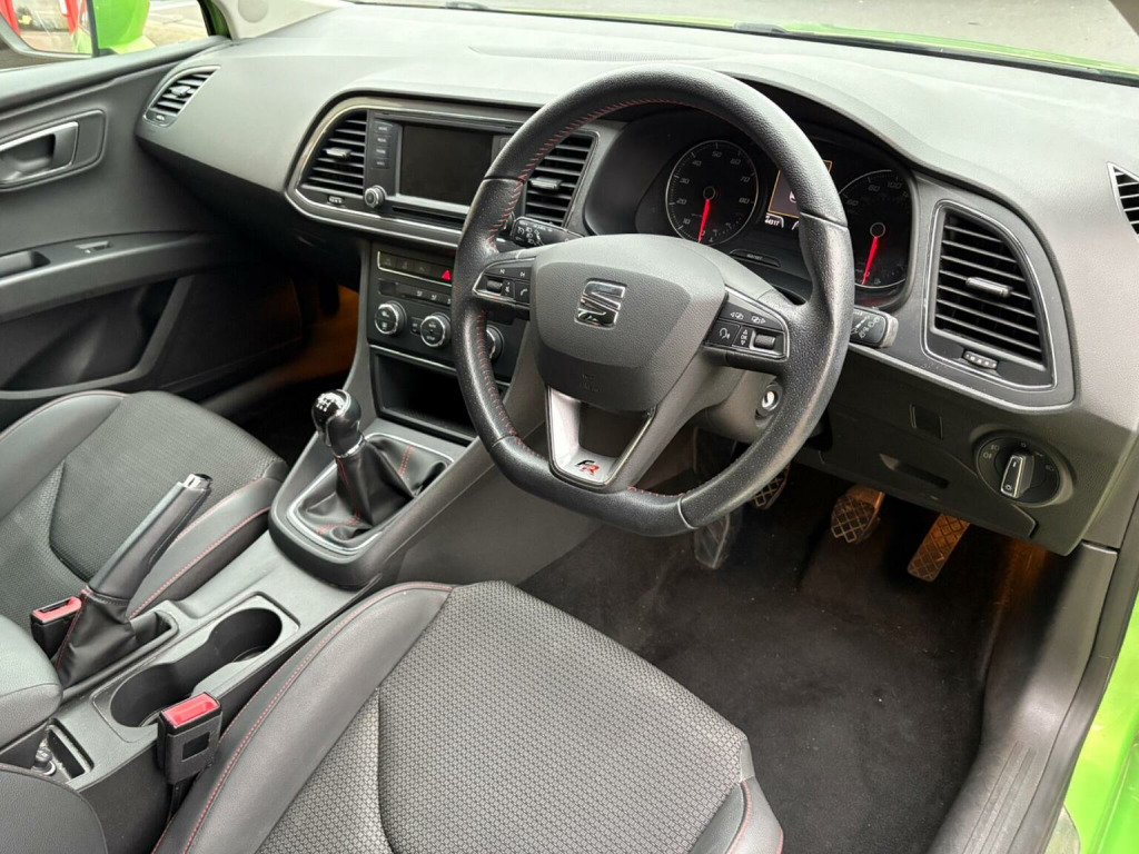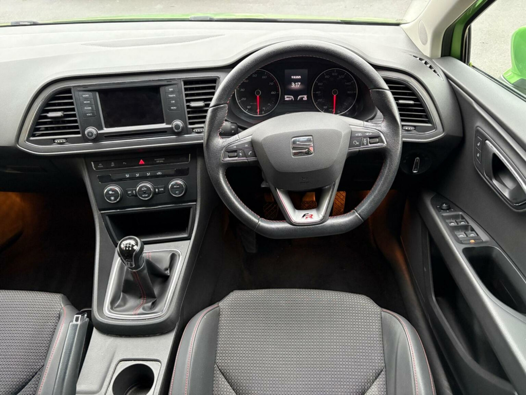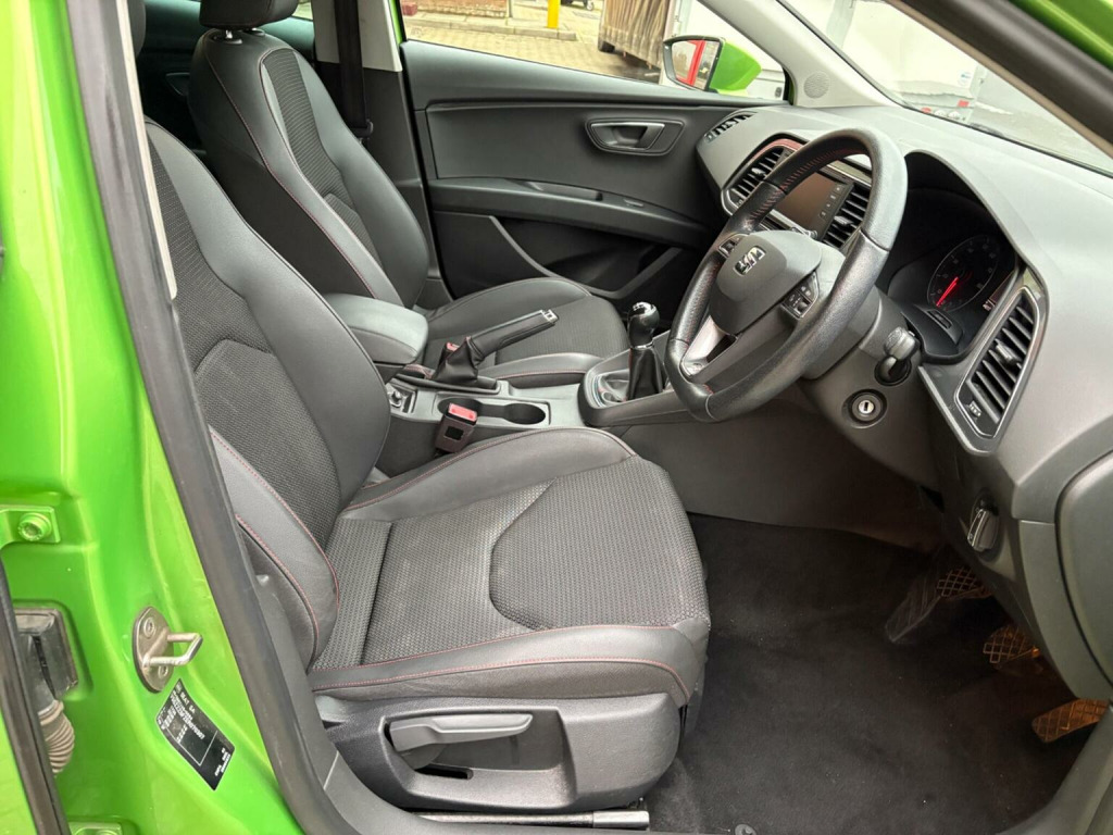 WOW! what a stunning low milage example of a well loved and highly sought after SEAT Leon 1.4 TSI FR Euro 5 (s/s) 5dr in the lovely Lima green metallic!, Owned by a very local Lady to us since December 2015! with a full service history including Cambelt & Water Pump replaced 34001 miles on the 14/3/22. Generous and highly attractive specification includes Alloy wheel upgrade, 1/2 leather interior, colour touch screen navigation, factory Privacy glass, cruise control, Full LED headlamps, sport comfort seats, front and rear park assist, climate control, DAB Media infotainment centre with bluetooth plus and lots more, leather Muti function steering wheel, hillstart assist plus a wealth of safety systems. A super engine with enjoyable performance yet retaining modest eco credential motoring in terms of MPG and insurance/tax costs etc. Would we spend a few thousand more to buy the equivalent Golf? No chance! these are such great vehicles its remarkable. Legendary build quality and safety from the VAG group ensures that this mid sized family hatch will provide sound, reliable and enjoyable motoring for its new owner. Please enquire at your earliest convenience to reserve or book to view. Be Quick -these sell really quickly and this one is lovely. ✅ Direct WhatsApp Contact Button on website, ✅ Comprehensive 6 month RAC warranty on all cars with 12 month Breakdown assistance - Upgrades Available from 12 to 24 Months, , ✅ Autotrader HIGHLY RATED Dealer & previous RETAILER OF THE YEAR Winner, ✅ Established since 1991 - Multi award finalists & winners, ✅ Fully FCA approved - Competitive finance packages available - (Subject to status), ✅ Multi platform - 5 Star reviewed Business, ✅ Part exchange welcome, Extensive & honest Videos Via our dedicated WhatsApp Business account can be presented identifying condition and areas that may need to be brought to attention, We truly understand a busy lifestyle! For ease & peace of mind we offer remote reservations prior to viewing & answer ALL questions re Condition, History, MOT, Warranty & Finance.