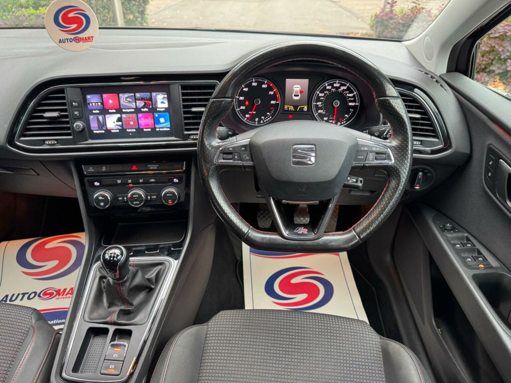 Harvey One Motors have the pleasure to offer this very well presented SEAT Leon 1.4 TSI FR Technology Euro 6 (s/s) 5dr  ONE FORMER  KEEPER FROM NEW, SERVICE HITORY WITH 6 VISITS UPTO 48K +WILL BENEFIT FROM FRESH SERVICE AT POINT OF SALE. A great spec including: NAVIGATION SYSTEM, DAB RADIO, BLUETOOTH HANDSFREE, R/SENSORS,AUX,MEDIA IN PLAYER,AIR CONDITIONING, XENON HEADLIGHTS, AMBIENT LIGHTING, ALLOY WHEELS, ARM REST, HALF LEATHER SEATS, REAR PRIVACY GLASS,Remote Locking With 2 Keys,Power Steering, Immobiliser, Electric Windows, Drives superbly, A Very Well Cared for example with some age related marks. We are also an approved dealer For CLOSE MOTOR FINANCE & FIRST RESPONSE IF YOU WOULD LIKE TO VIEW PLEASE CALL TO BOOK AN APPOINTMENT AND WE WILL HOLD THE CAR FOR YOUR JOURNEY. BUY WITH CONFIDENCE.FINANCE & WARRANTY AVAILABLE