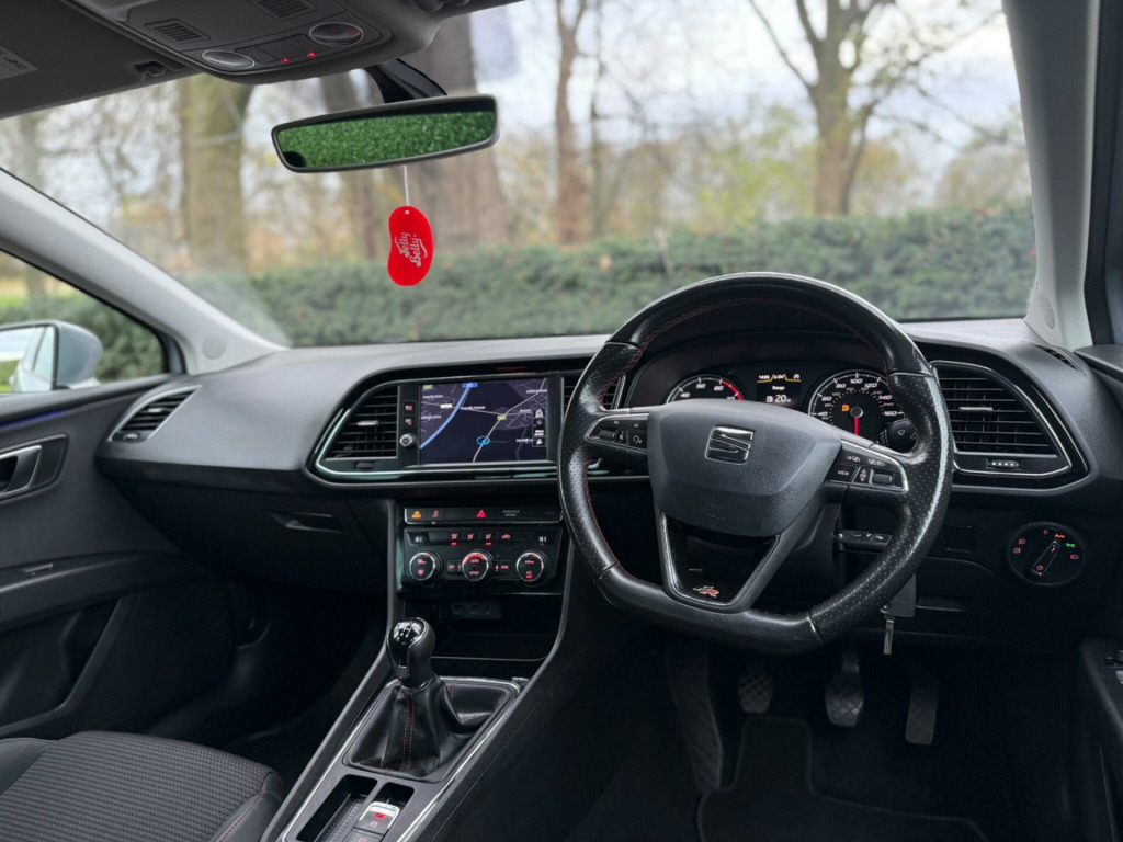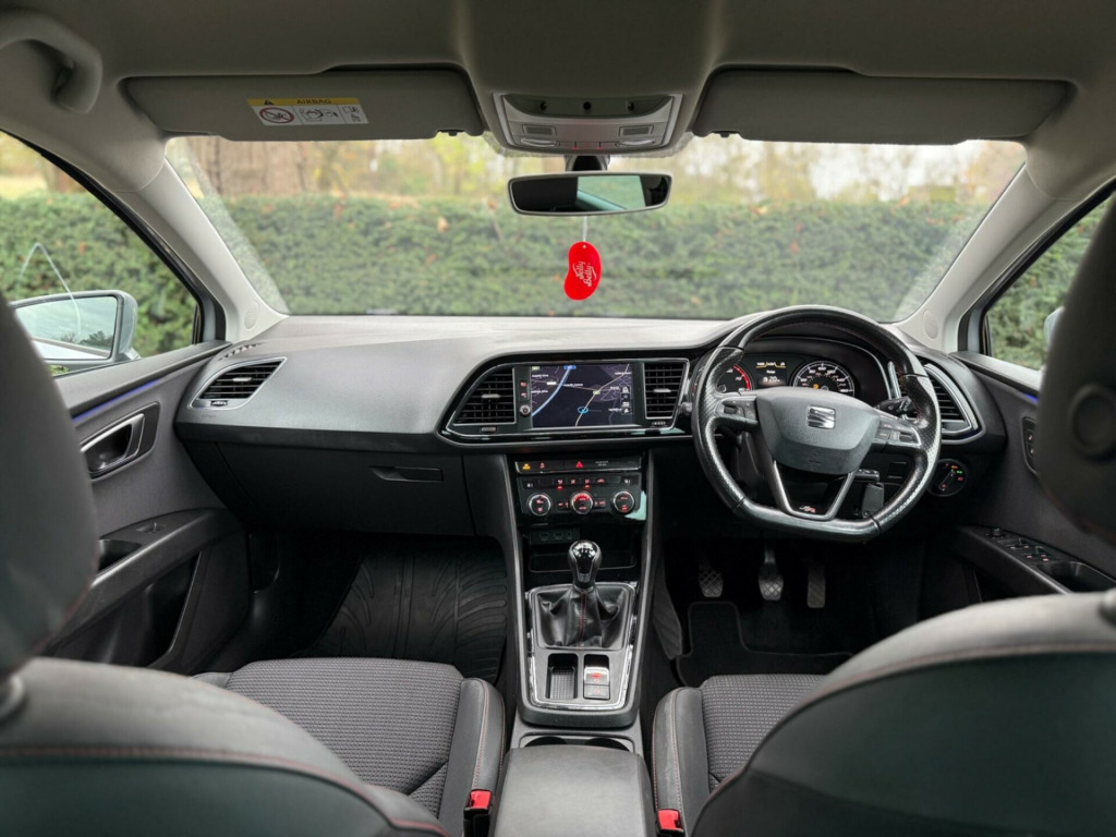 With a full service history and MOT valid until June 2026, this 2018 SEAT Leon TSI FR Technology offers excellent peace of mind. This Euro 6 compliant 1.4 litre petrol model comes with a clear vehicle history check and benefits from a 6 month warranty. The FR Technology trim level includes a Navigation System High, Dual Zone Climate Control, and Rear Parking Sensors for added convenience. The Safety Pack and Adaptive Cruise Control further enhance your driving experience.This SEAT Leon is designed to impress, achieving 0-62mph in just 9.1 seconds, demonstrating its responsive performance which is better than many similar vehicles. Its impressive fuel economy of 54 mpg means fewer trips to the petrol station, making it an economical choice. You'll also appreciate the large boot space, perfect for shopping trips or weekend getaways, all supported by a last service completed on 2025-05-05 at 61788 miles.The Car Has Been Well Maintained 2 KeysWe Accept All Debit And Credit Cards Finance Available Open 7 Days A Week Viewing By Appointment Only Free Pick Up From Leeds Train And Coach Station Free Delivery Within 50 Miles Radius And Over 50 Miles Delivery Is Available At Extra Cost v power supply in centre console, 17in alloy wheels - dynamic 30-2, 7 airbags, abs - anti-lock braking system - tcs - traction control system, active front head restraints and 3 rear head restraints, aluminium front door sill trims with fr logo, body-coloured door handles, body-coloured door mirrors with integrated led indicators, boot storage net, bumpers - exclusive fr front and rear, cargo rings in the boot, cruise control, dark tinted rear windows, driver and passenger seat height adjustment, driver and passenger sunvisor with covered and illuminated mirrors, drivers seat lumbar adjustment, dual zone climate control, esc - electronic stability control and tyre pressure warning light indicator, electric parking brake including autohold function, electrically folding door mirrors, electro-mechanical power steering, electronic differential lock system - xds, emergency tyre repair kit, front assist with city emergency braking, front seat back storage pockets, front sports seats, front and rear electric windows, fuel filler flap linked to central locking, full led headlights, gearshift indicator, head restraints - height adjustable front, high centre console, high gloss black b and c pillars, hill hold control, isofix points in outer rear seats with top tether anchorage points, illuminated door sill plates, illuminated glovebox, instrument lighting with brightness control, interior chrome detailing, lights left on warning buzzer, low fuel warning light, lower suspension - 15mm, media system plus, multi coloured ambient lighting, multi-collision braking system, navigation system, outside temperature gauge, rpm counter, radiator grille frame in chrome, radiator grille in black, reading lights front and rear with ambient spots - boot lights and illuminated foot area, rear parking sensors, remote central locking with deadlocks, seat drive profile, seat full link smartphone integration - mirror link - apple carplay - google android auto, seatbelt reminder - front, seats - passenger lumbar adjustment, split folding rear seats - 60-40, sports suspension, steering wheel - flat-bottomed perforated leather with red stitching and fr logo, storage box under drivers seat, trip computer, two remote keys with window open-close - door mirror folding and boot opening functionality, visual twin exhaust pipes, navigation system high, adaptive cruise control - acc, safety pack