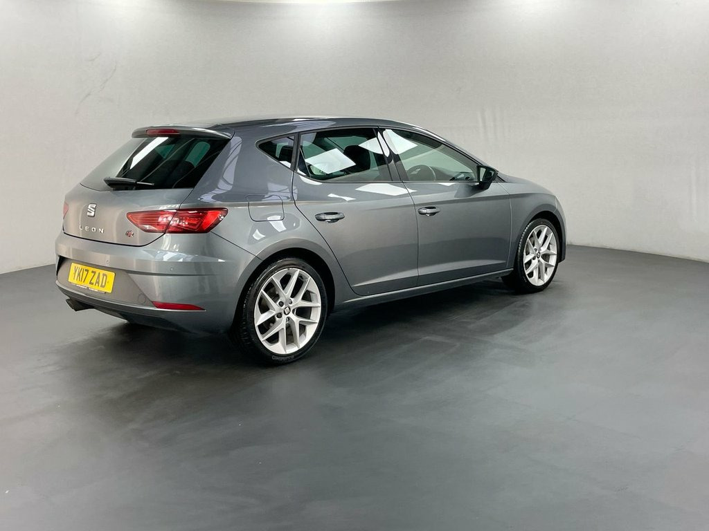 Apple CarPlay, Rear Parking Sensors, Dark Tinted Rear Windows, Electrically Folding Door Mirrors. Last serviced on the 08.08.2025 at 70081 miles. This 2017 SEAT Leon TSI FR Technology boasts an MOT valid until August 2026, offering excellent peace of mind. This stylish hatchback is equipped with a 1.4 litre Euro 6 compliant petrol engine, ensuring efficient performance. The FR Technology trim level comes with a comprehensive suite of features, including a built in Navigation System with Bluetooth connectivity, and SEAT Full Link Smartphone Integration which supports Mirror Link, Apple CarPlay, and Google Android Auto. For enhanced visibility and a modern look, it features Full LED Headlights, and parking is made easier with Rear Parking Sensors. Inside, you can enjoy the comfort of Dual Zone Climate Control, ensuring a pleasant environment for all occupants. The SEAT Leon TSI FR Technology offers a compelling driving experience, with a brisk 0-60mph acceleration time of just 9.1 seconds. This performance, combined with its generous boot space, makes it a practical choice for everyday use and longer journeys. The inclusion of advanced technology like the integrated navigation and smartphone mirroring systems, alongside the full LED lighting and parking assistance, clearly sets this vehicle apart from others in its class, providing a superior level of convenience and sophistication. 12V Power Supply in Centre Console, 17in Alloy Wheels - Dynamic 30-2, 7 Airbags, ABS - Anti-Lock Braking System - TCS - T, Active Front Head Restraints and 3 Rear , Aluminium Front Door Sill Trims with FR , Body-Coloured Door Handles, Body-Coloured Door Mirrors with Integrat, Boot Storage Net, Bumpers - Exclusive FR Front and Rear, Cargo Rings in the Boot, Cruise Control, Dark Tinted Rear Windows, Driver and Passenger Seat Height Adjustm, Driver and Passenger Sunvisor with Cover, Drivers Seat Lumbar Adjustment, Dual Zone Climate Control, Electric Parking Brake Including Autohol, Electrically Folding Door Mirrors, Electro-Mechanical Power Steering, Electronic Differential Lock System - XD, Em