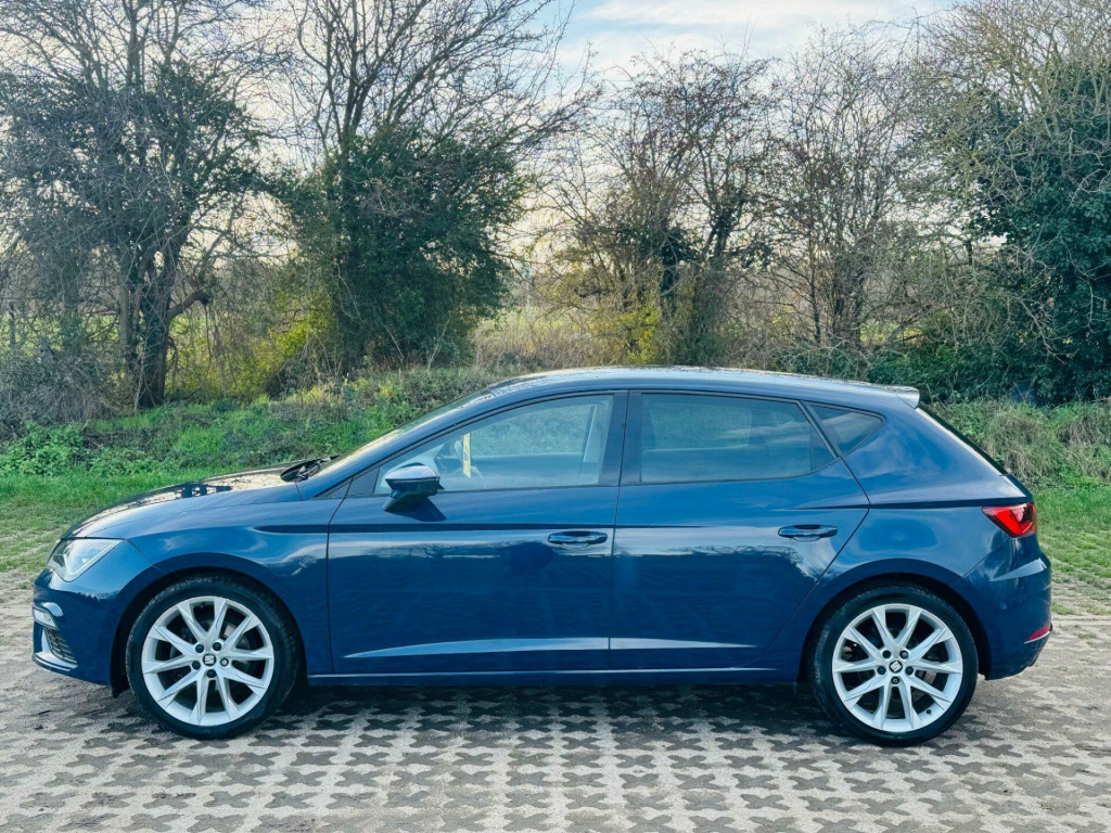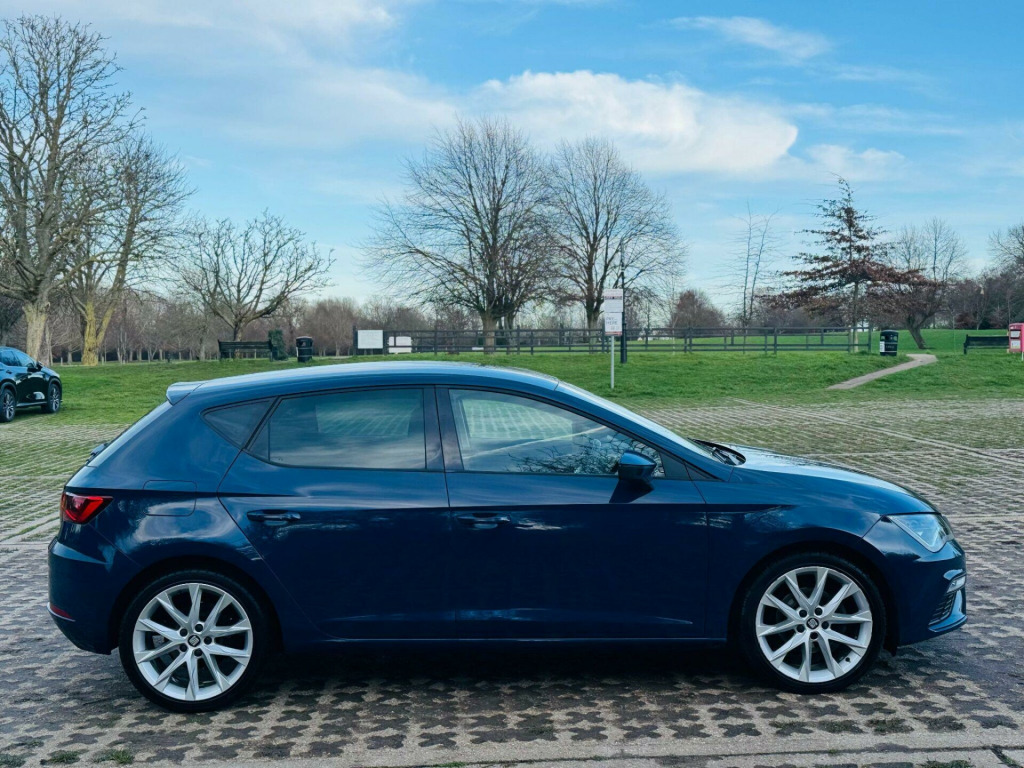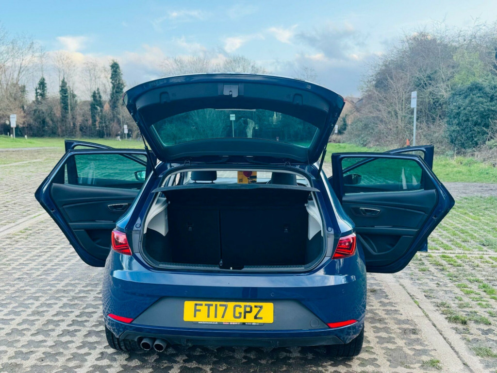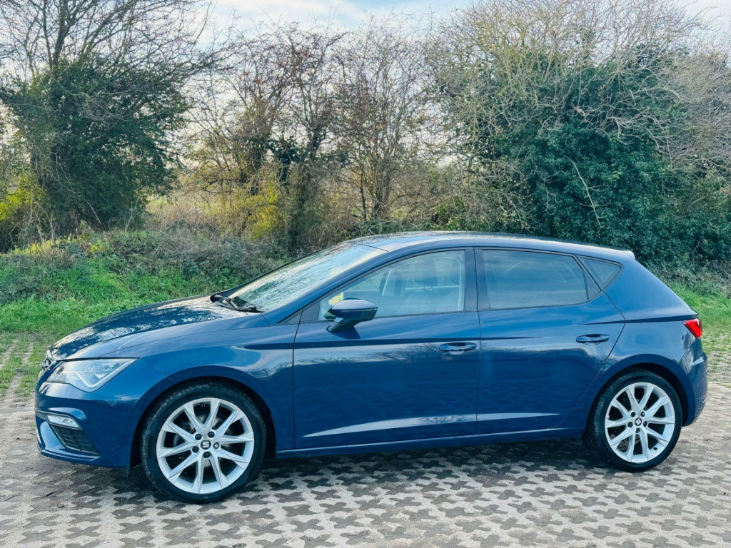 SEAT Leon 1.4 TSI FR Technology Hatchback 5dr Vehicle DetailsFuel Type: PetrolTransmission: ManualColour: Blue 1 OwnerBody Type: HatchbackHPI Status: ClearULEZ Compliant / ULEZ FreeKey Features & SpecificationFR Technology SpecificationSatellite NavigationAlloy WheelsAir ConditioningTurbocharged TSI Petrol EngineStop/Start TechnologyLow Insurance GroupVery Economical to RunCondition & DriveThis one-owner SEAT Leon FR Technology has been very well maintained and looks and drives brilliantly.The 1.4 TSI engine is responsive and efficient, the gearbox and suspension are very smooth, and the car offers a sporty yet comfortable driving experience. Clean interior and tidy exterior. Mechanically perfect - just buy and drive.Peace of MindHPI Clear3 Months WarrantyMechanically Sound ThroughoutFULL SERVICE HISTORY, FRESH SERVICE, FRESH MOT, FREE BREAKDOWN COVER, NATIONWIDE DELIVERY AVAILABLEPart Exchange WelcomeView by Appointment OnlySummaryA stylish, economical, and well-equipped Euro 6 SEAT Leon FR Technology, ULEZ compliant and ready to drive away.First to see will buy. v power supply in centre console, 17in alloy wheels - dynamic, 3.5in drivers display, 7 airbags, abs - anti-lock braking system - tcs - traction control system, active front head restraints and 3 rear head restraints, alarm - perimeter and interior monitoring with back-up horn and tow-away protection, aluminium front door sill trims with fr logo, body-coloured door handles, body-coloured door mirrors with integrated led indicators, boot storage net, bumpers - exclusive fr front and rear, cargo rings in the boot, cruise control, dark tinted rear windows, driver and passenger seat height adjustment, driver and passenger sunvisor with covered and illuminated mirrors, drivers seat lumbar adjustment, dual zone climate control, esc - electronic stability control and tyre pressure warning light indicator, electric parking brake including autohold function, electrically folding door mirrors, electro-mechanical power steering, electronic differential lock system - xds, emergency tyre repair kit, exhaust pipe - twin, front assist with pedestrian protection, front seat back storage pockets, front sports seats, front and rear electric windows, fuel filler flap linked to central locking, full led headlights, full link, gearshift indicator, head restraints - height adjustable front, high centre console, high gloss black b and c pillars, hill hold control, isofix points in outer rear seats with top tether anchorage points, illuminated glovebox, instrument lighting with brightness control, interior chrome detailing, leather gear knob, lights left on warning buzzer, low fuel warning light, lower suspension - 15mm, media system plus, multi coloured ambient lighting, multi-collision braking system, navigation system, outside temperature gauge, rpm counter, radiator grille frame in chrome, radiator grille in black, reading lights front and rear with ambient spots - boot lights and illuminated foot area, rear parking sensors, remote central locking with deadlocks, seat drive profile, seatbelt reminder - front, seats - passenger lumbar adjustment, split folding rear seats - 60-40, sports suspension, steering wheel - flat-bottomed perforated leather with red stitching and fr logo, storage box under driver and front passenger seat, trip computer, two remote keys with window open-close - door mirror folding and boot opening functionality