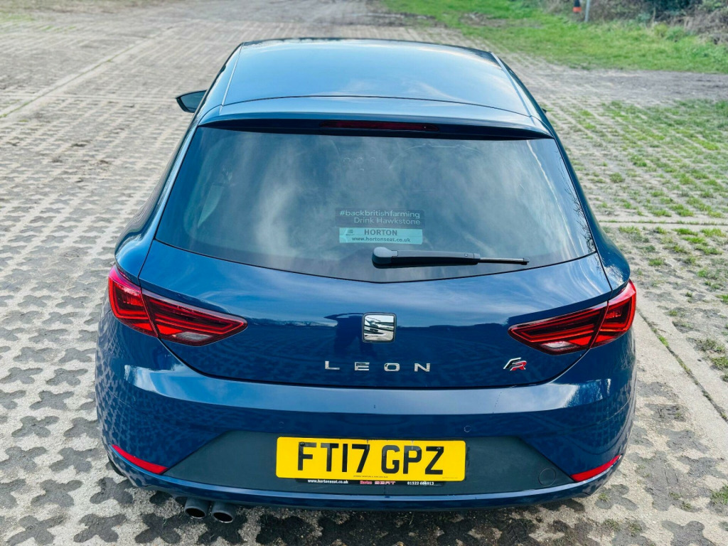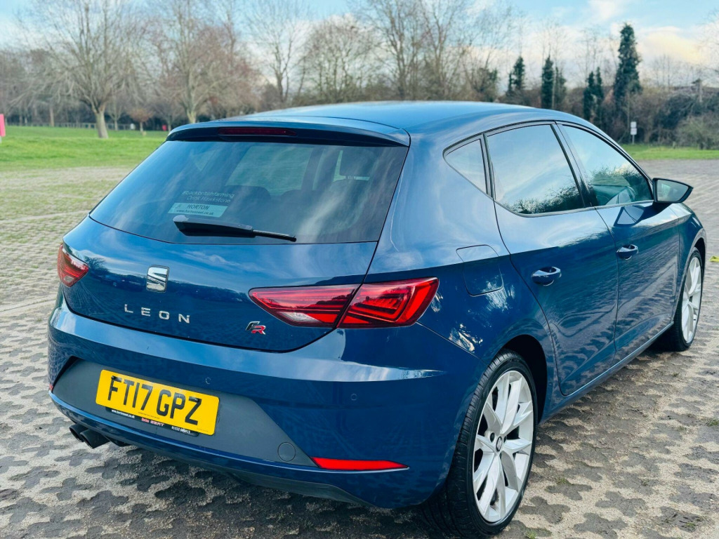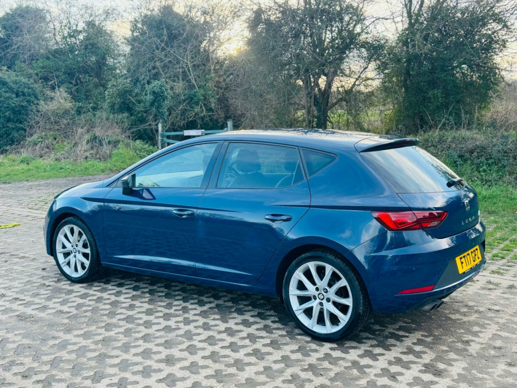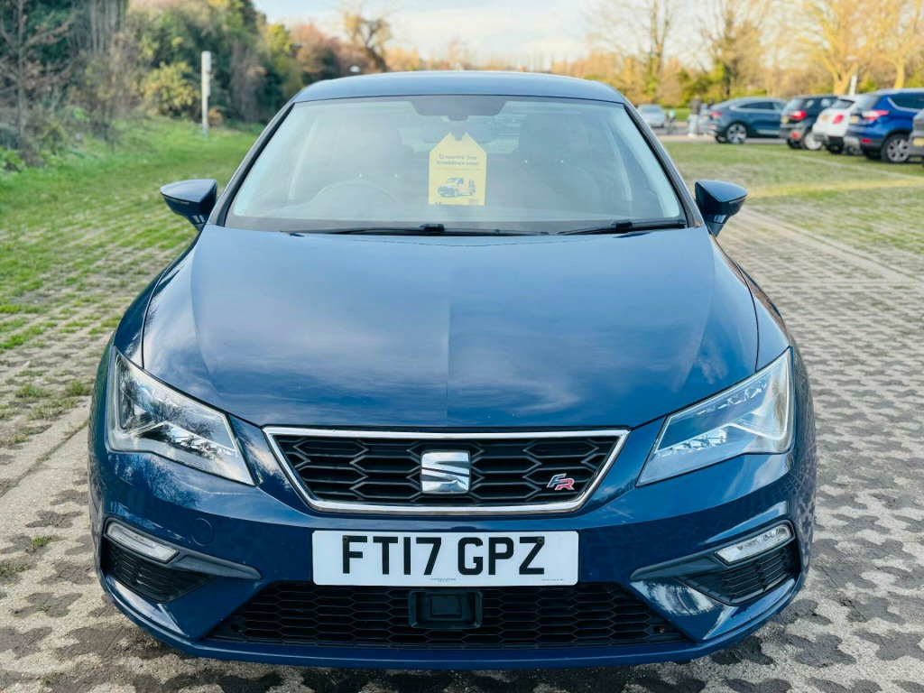 SEAT Leon 1.4 TSI FR Technology Hatchback 5dr Vehicle DetailsFuel Type: PetrolTransmission: ManualColour: Blue 1 OwnerBody Type: HatchbackHPI Status: ClearULEZ Compliant / ULEZ FreeKey Features & SpecificationFR Technology SpecificationSatellite NavigationAlloy WheelsAir ConditioningTurbocharged TSI Petrol EngineStop/Start TechnologyLow Insurance GroupVery Economical to RunCondition & DriveThis one-owner SEAT Leon FR Technology has been very well maintained and looks and drives brilliantly.The 1.4 TSI engine is responsive and efficient, the gearbox and suspension are very smooth, and the car offers a sporty yet comfortable driving experience. Clean interior and tidy exterior. Mechanically perfect - just buy and drive.Peace of MindHPI Clear3 Months WarrantyMechanically Sound ThroughoutFULL SERVICE HISTORY, FRESH SERVICE, FRESH MOT, FREE BREAKDOWN COVER, NATIONWIDE DELIVERY AVAILABLEPart Exchange WelcomeView by Appointment OnlySummaryA stylish, economical, and well-equipped Euro 6 SEAT Leon FR Technology, ULEZ compliant and ready to drive away.First to see will buy. v power supply in centre console, 17in alloy wheels - dynamic, 3.5in drivers display, 7 airbags, abs - anti-lock braking system - tcs - traction control system, active front head restraints and 3 rear head restraints, alarm - perimeter and interior monitoring with back-up horn and tow-away protection, aluminium front door sill trims with fr logo, body-coloured door handles, body-coloured door mirrors with integrated led indicators, boot storage net, bumpers - exclusive fr front and rear, cargo rings in the boot, cruise control, dark tinted rear windows, driver and passenger seat height adjustment, driver and passenger sunvisor with covered and illuminated mirrors, drivers seat lumbar adjustment, dual zone climate control, esc - electronic stability control and tyre pressure warning light indicator, electric parking brake including autohold function, electrically folding door mirrors, electro-mechanical power steering, electronic differential lock system - xds, emergency tyre repair kit, exhaust pipe - twin, front assist with pedestrian protection, front seat back storage pockets, front sports seats, front and rear electric windows, fuel filler flap linked to central locking, full led headlights, full link, gearshift indicator, head restraints - height adjustable front, high centre console, high gloss black b and c pillars, hill hold control, isofix points in outer rear seats with top tether anchorage points, illuminated glovebox, instrument lighting with brightness control, interior chrome detailing, leather gear knob, lights left on warning buzzer, low fuel warning light, lower suspension - 15mm, media system plus, multi coloured ambient lighting, multi-collision braking system, navigation system, outside temperature gauge, rpm counter, radiator grille frame in chrome, radiator grille in black, reading lights front and rear with ambient spots - boot lights and illuminated foot area, rear parking sensors, remote central locking with deadlocks, seat drive profile, seatbelt reminder - front, seats - passenger lumbar adjustment, split folding rear seats - 60-40, sports suspension, steering wheel - flat-bottomed perforated leather with red stitching and fr logo, storage box under driver and front passenger seat, trip computer, two remote keys with window open-close - door mirror folding and boot opening functionality