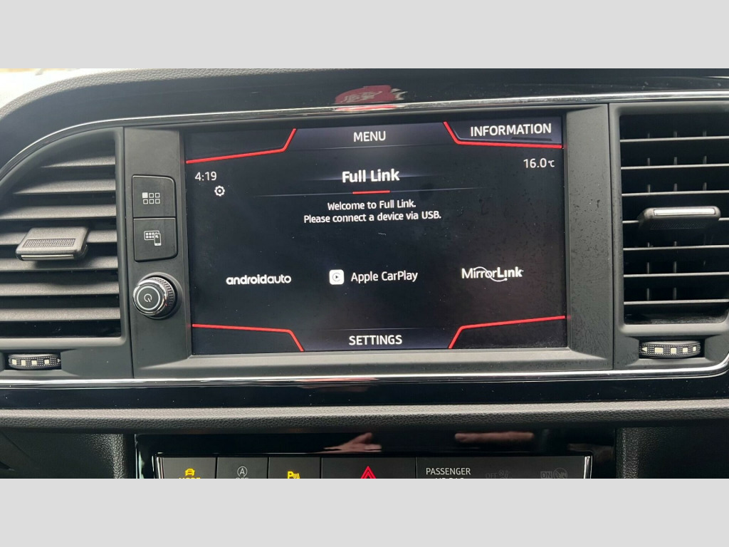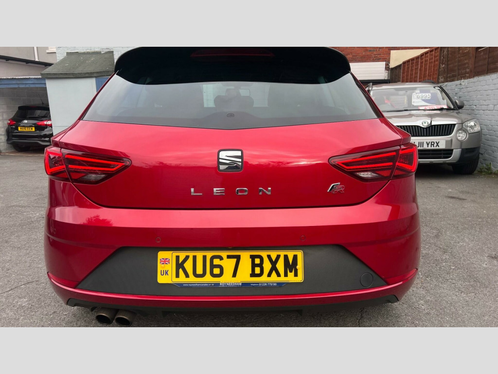 This 2017 SEAT Leon TSI FR Technology boasts a full service history and a clear vehicle history check, offering peace of mind for its next owner. This Euro 6 compliant model features a 1.4 litre petrol engine and comes with a 3 month warranty. The FR Technology trim includes desirable features such as 18 inch Performance alloy wheels, a navigation system, and the Park Assistance Pack which incorporates front sensors and a rear camera. For enhanced driving convenience, it is also equipped with Adaptive Cruise Control and a Connectivity Hub complete with wireless phone charging.Experience impressive performance with this Leon, accelerating from 0 to 62mph in just 8.9 seconds, a figure that demonstrates its capability compared to other vehicles in its class. This model also excels in practicality, offering generous boot space for all your needs. Furthermore, its fuel economy is a notable highlight, achieving an impressive 54 miles per gallon, making it an economical choice for everyday driving. The last service was completed at 85,000 miles., v power supply in centre console, 17in alloy wheels - dynamic, 3.5in drivers display, 7 airbags, abs - anti-lock braking system - tcs - traction control system, active front head restraints and 3 rear head restraints, alarm - perimeter and interior monitoring with back-up horn and tow-away protection, aluminium front door sill trims with fr logo, body-coloured door handles, body-coloured door mirrors with integrated led indicators, boot storage net, bumpers - exclusive fr front and rear, cargo rings in the boot, cruise control, dark tinted rear windows, driver and passenger seat height adjustment, driver and passenger sunvisor with covered and illuminated mirrors, drivers seat lumbar adjustment, dual zone climate control, esc - electronic stability control and tyre pressure warning light indicator, easy entry front seats, electric parking brake including autohold function, electrically folding door mirrors, electro-mechanical power steering, electronic differential lock system - xds, emergency tyre repair kit, exhaust pipe - twin, front assist with pedestrian protection, front seat back storage pockets, front sports seats, front and rear electric windows, fuel filler flap linked to central locking, full led headlights, full link, head restraints - height adjustable front, high centre console, high gloss black b and c pillars, hill hold control, isofix points in outer rear seats with top tether anchorage points, illuminated glovebox, instrument lighting with brightness control, interior chrome detailing, leather gear knob, lights left on warning buzzer, low fuel warning light, lower suspension - 15mm, media system plus, multi coloured ambient lighting, multi-collision braking system, navigation system, outside temperature gauge, rpm counter, radiator grille frame in chrome, radiator grille in black, reading lights front and rear with ambient spots - boot lights and illuminated foot area, rear parking sensors, remote central locking with deadlocks, seat drive profile, seatbelt reminder - front, seats - passenger lumbar adjustment, split folding rear seats - 60-40, sports suspension, steering wheel - flat-bottomed perforated leather with red stitching and fr logo, storage box under driver and front passenger seat, trip computer, two remote keys with window open-close - door mirror folding and boot opening functionality, adaptive cruise control - acc, navigation system high, seat sound system, connectivity hub, park assistance pack, 18in alloy wheels - performance