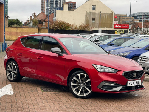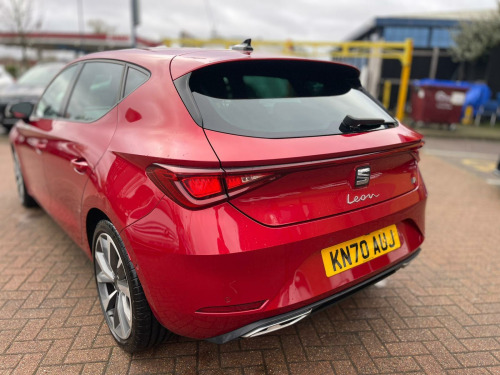 This 2020 SEAT Leon eTSI FR First Edition offers a 12 month MOT for your peace of mind. It features a 1.5 litre petrol hybrid engine, meeting Euro 6 emissions standards. This FR First Edition model comes equipped with KESSY Advanced for keyless entry and start, alongside a wireless device charger for your convenience. Enjoy seamless smartphone integration with Full Link, supporting both wireless Apple CarPlay and wired Android Auto. The Safety and Driving Pack includes adaptive cruise control and blind spot assistance, while LED headlights with dynamic turn signals and high beam assist ensure excellent visibility.Experience impressive performance with this SEAT Leon, capable of accelerating from 0 to 62mph in just 8.5 seconds. This quick acceleration demonstrates its capability compared to other vehicles in its class. Furthermore, you will appreciate the generous boot space, offering ample room for your luggage and shopping. v power supply in centre console, 18in alloy wheels - performance machined, abs and traction control system - tcs - electronic stability control - esc - and electronic differential lock system - xds, anti-theft alarm system - interior monitoring - backup horn and towing protection, auto dimming rear view mirror, black interior roof, brake control system - esc and brake booster, chrome interior detailing, dark tinted rear windows, digital cockpit, driver and front passenger airbags with front passenger airbag de-activation - front side - curtain airbag, driver and passenger seat manual height adjustment, driver and passenger seat with lumbar adjustment, dynamic and comfort pack, electric parking brake with autohold, electrically adjustable folding and heated door mirrors, electro-mechanical power steering - speed-sensitive, electronic differential lock system - xds - dynamic traction support, folding boot cover, front assist, front centre armrest, front led fog lights with cornering function, front seat back storage pockets, front and rear electric windows, front and rear reading lights - four, full link smartphone integration - mirror link - wireless apple carplay - wired google android auto, height-adjustable front and rear headrests - with third headrest in rear, isofix points in outer rear seats with top tether anchorage points, illuminated front door sill, interior lighting, interior wraparound lighting, kessy advanced - keyless start - keyless entry with safelock, led headlights with dynamic turn signals and high beam assist, lane keeping system, leather flat bottomed - perforated steering wheel with red stitching and fr logo, lockable tailgate, media system plus with navigation, park assist including front and rear parking sensors, rain sensing wipers, rear bench seats with 60-40 split and armrest, rear fog light, rear view camera, seat connect app, safety and driving pack - medium, seatbelt reminder - front and rear, separate daytime running light with automatic headlight control and automatic coming home feature, space-saving spare wheel, sports suspension, sunvisors with illuminated mirrors, three-zone climate control, tiredness recognition system, tyre pressure monitoring system, wireless device charger, wraparound lighting