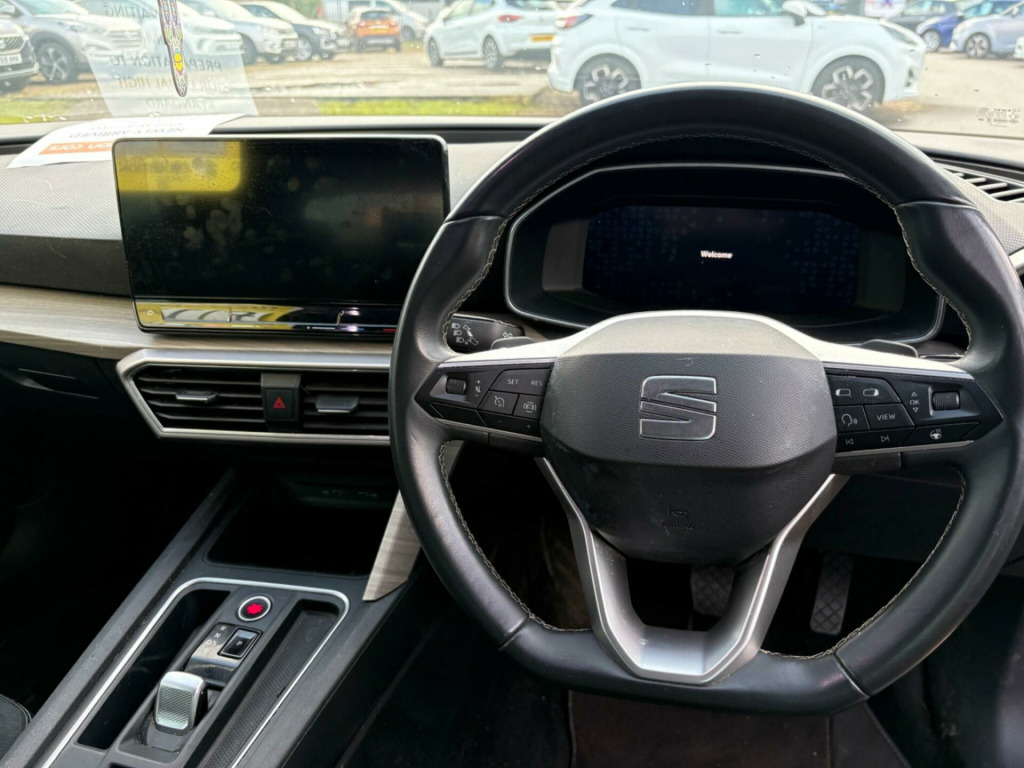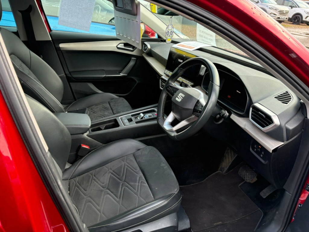 This 2022 SEAT Leon eTSI XCELLENCE offers the reassurance of a single owner and a full service history, ensuring excellent provenance. This Euro 6 compliant 1.5 litre petrol hybrid model comes with a 6 month warranty for your peace of mind. It features KESSY Advanced keyless entry and start with SAFELOCK, along with Park Assist and front and rear parking sensors, making manoeuvring effortless. You'll also appreciate the convenience of a wireless device charger and the comfort of three zone climate control, all illuminated by striking LED headlights with dynamic turn signals.The SEAT Leon eTSI XCELLENCE stands out with its impressive acceleration, reaching 0-62mph in just 8.8 seconds, demonstrating its responsive performance. This variant also boasts a generously sized boot, offering practical space for all your needs, which is a notable advantage over many other vehicles in its class.. 12V Power Supply in Centre Console, 12v Socket in Loadspace, 17in Alloy Wheels, Ambient Lighting, Anti-Lock Brakes - ABS, Anti-Theft Alarm System - Interior Monitoring - Backup Horn and Towing Protection, Auto Dimming Rear View Mirror, Brake Control System - ESC and Brake Booster, Chrome Interior Detailing, Cruise Control with Speed Limiter, Dark Tinted Rear Windows, Digital Cockpit, Driver and Front Passenger Airbags with Front Passenger Airbag De-Activation - Front Side - Curtain Airbag, Electric Parking Brake, Electrically Adjustable Folding and Heated Door Mirrors with Memory, Electro-Mechanical Power Steering - Speed-Sensitive, Emergency Tyre Repair Kit, Extended Safety System, Four USB Type C Ports, Front Assist, Front Centre Armrest, Front LED Fog Lights with Cornering Function, Front Seat Back Storage Pockets, Front and Rear Electric Windows, Front and Rear Reading Lights - Four, Full Link Smartphone Integration - Mirror Link - Wireless Apple CarPlay - Wired Google Android Auto, Heated Front Seats, Heated Leather Flat Bottomed - Perforated Steering Wheel, ISOFIX Points in Outer Rear Seats with Top Tether Anchorage Points, Illuminated Front Door Sill, Interior Lighting, KESSY Advanced - Keyless Start - Keyless Entry with SAFELOCK, LED Headlights with Dynamic Turn Signals, Lane Keeping System, Lockable Tailgate, Media System Plus with Navigation, Park Assist including Front and Rear Parking Sensors, Rain Sensing Wipers, Rear Bench Seats with 60-40 Split and Armrest, Rear Fog Light, Rear View Camera, Roof Rails - Chrome, SEAT Connect App, Seatbelt Reminder - Front and Rear, Separate Daytime Running Light with Automatic Headlight Control and Automatic Coming Home Feature, Seven Speakers, Sliding Boot Cover, Sunvisors with Illuminated Mirrors, Three-Zone Climate Control, Tiredness Recognition System, Tool Kit, Tyre Pressure Monitoring System, Wireless Device Charger. Full service history