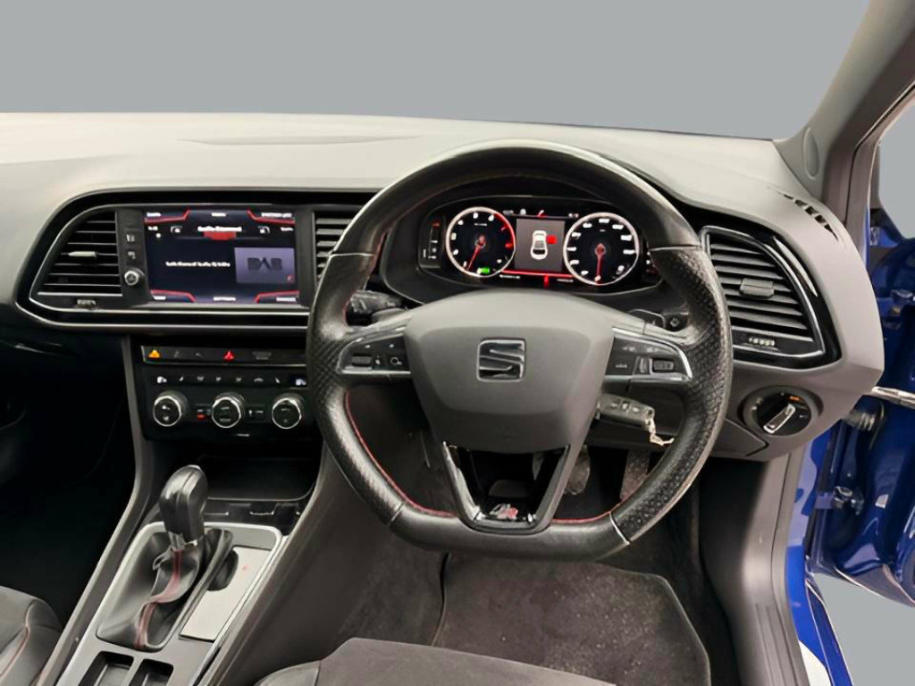 re pressure monitoring system, winter pack, visual twin exhaust pipes, two height-adjustable front and rear headrests, trip computer, storage box under driver and front passenger seat, steering wheel-mounted gearshift paddles, steering wheel - flat-bottomed perforated leather with red stitching and fr logo, sports suspension, split folding rear seats 60-40 with armrest, seats - passenger lumbar adjustment, seatbelt reminder - front, seat full link smartphone integration - mirror link - apple carplay - google android auto, seat drive profile, digital clock, front assist with pedestrian protection, emergency tyre repair kit, electro-mechanical progressive power steering, electrically adjustable folding and heated door mirrors, electric parking brake including autohold function, dual zone climate control, drivers seat lumbar adjustment, driver and passenger sunvisor with covered and illuminated mirrors, driver and passenger seat height adjustment, digital cockpit, front seat back storage pockets, dark tinted rear windows, cruise control, convenience pack plus, bumpers - exclusive fr front and rear, black interior roof lining, armrest - front with storage compartment, alarm - volumetric, abs and traction control system - tcs - electronic stability control - esc - and electronic differential lock system - xds, 7 airbags, 18in alloy wheels - performance matte 30-2, lights left on warning buzzer, radiator grille in black, radiator grille frame in matte black, rpm counter, outside temperature gauge, navigation system, multi-collision braking system, multi coloured ambient lighting, media system plus, matte black door mirrors with integrated led indicators, low fuel warning light, 12v power supply in centre console, leather gear knob, led interior illumination pack, instrument lighting with brightness control, illuminated aluminium front door sill with trim logo, isofix points in outer rear seats with top tether anchorage points, gearshift indicator, full led headlights, front and rear parking sensors, front and rear electric windows, front sports seats