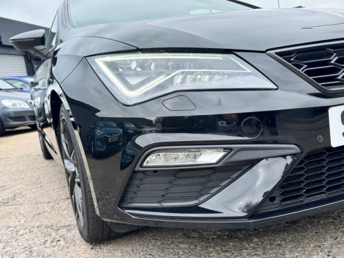 This 2019 SEAT Leon TSI EVO FR Black Edition boasts a full service history and a clear vehicle history check, offering you complete peace of mind. This stylish hatchback features a 1.5 litre petrol engine, meeting Euro 6 emissions standards, and comes with 12 months MOT provided on purchase. The FR Black Edition trim includes a Driving Assistance Pack with adaptive cruise control, SEAT Full Link smartphone integration for Mirror Link, Apple CarPlay, and Google Android Auto, and a Media System Plus with Bluetooth connectivity. You'll also appreciate the convenience of dual zone climate control and the clarity of full LED headlights. The SEAT Leon TSI EVO FR Black Edition offers an engaging driving experience, reaching 0-60mph in just 9.4 seconds. Its low CO2 emissions highlight its efficiency, making it a more environmentally conscious choice compared to many other vehicles in its class. This combination of performance, advanced technology, and strong provenance information makes this Leon a compelling option for those seeking a well maintained and feature rich hatchback. Driving Assistance Pack, Microsuede Sports Seats - Black with Red, Midnight Black, 12V Power Supply in Centre Console, 18in Alloy Wheels - Performance Matte 30, 7 Airbags, ABS and Traction Control System - TCS - , Alarm - Volumetric, Armrest - Front with Storage Compartment, Black Interior Roof Lining, Bumpers - Exclusive FR Front and Rear, Convenience Pack Plus, Cruise Control, Dark Tinted Rear Windows, Digital Clock, Digital Cockpit, Driver and Passenger Seat Height Adjustm, Driver and Passenger Sunvisor with Cover, Drivers Seat Lumbar Adjustment, Dual Zone Climate Control, Electric Parking Brake Including Autohol, Electrically Adjustable Folding and Heat, Electro-Mechanical Progressive Po